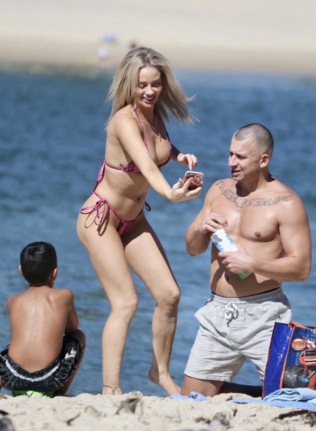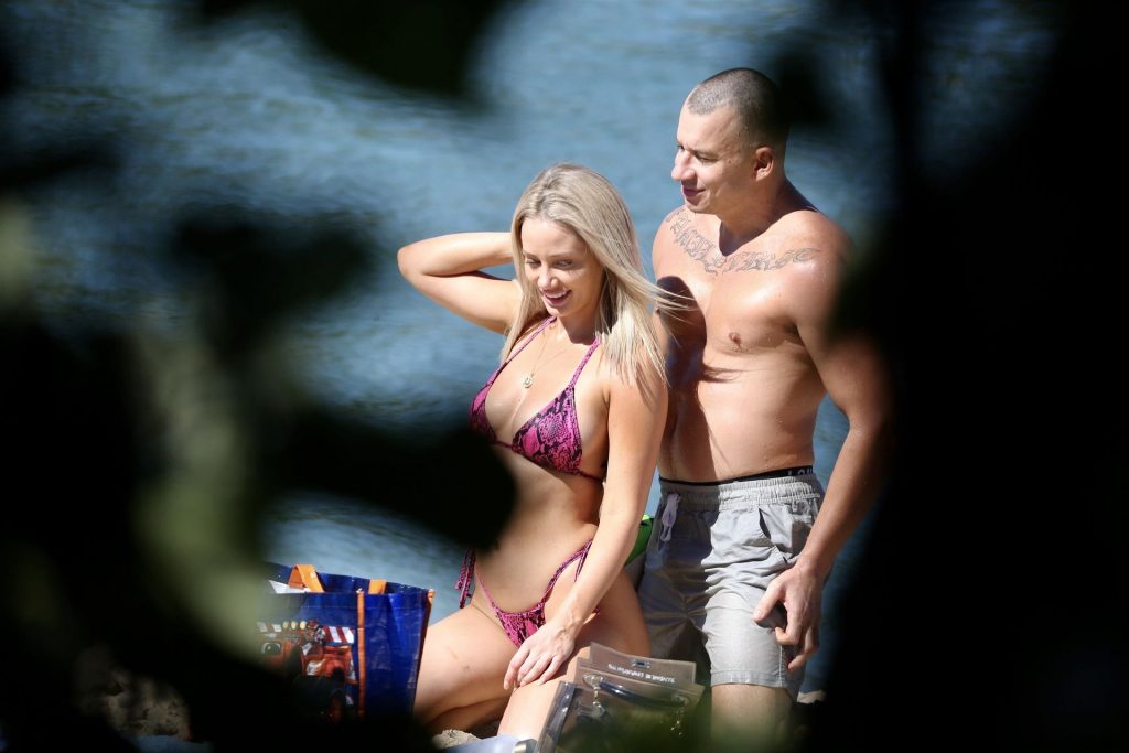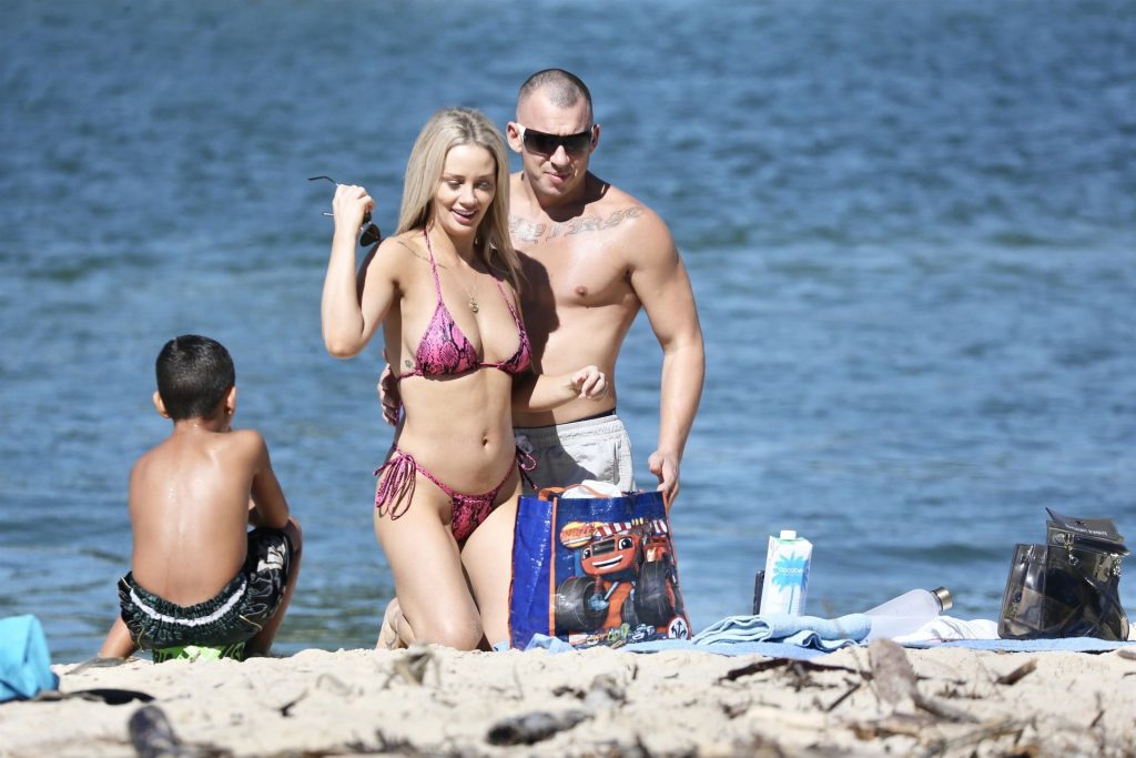 Jessika Power muestra su cuerpo en bikini con su novio y su hijo en el arroyo Tallebudgera en la Costa Dorada, 22/04/2020.