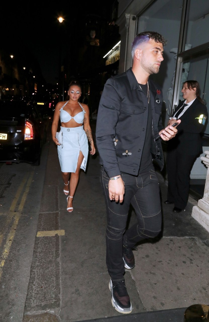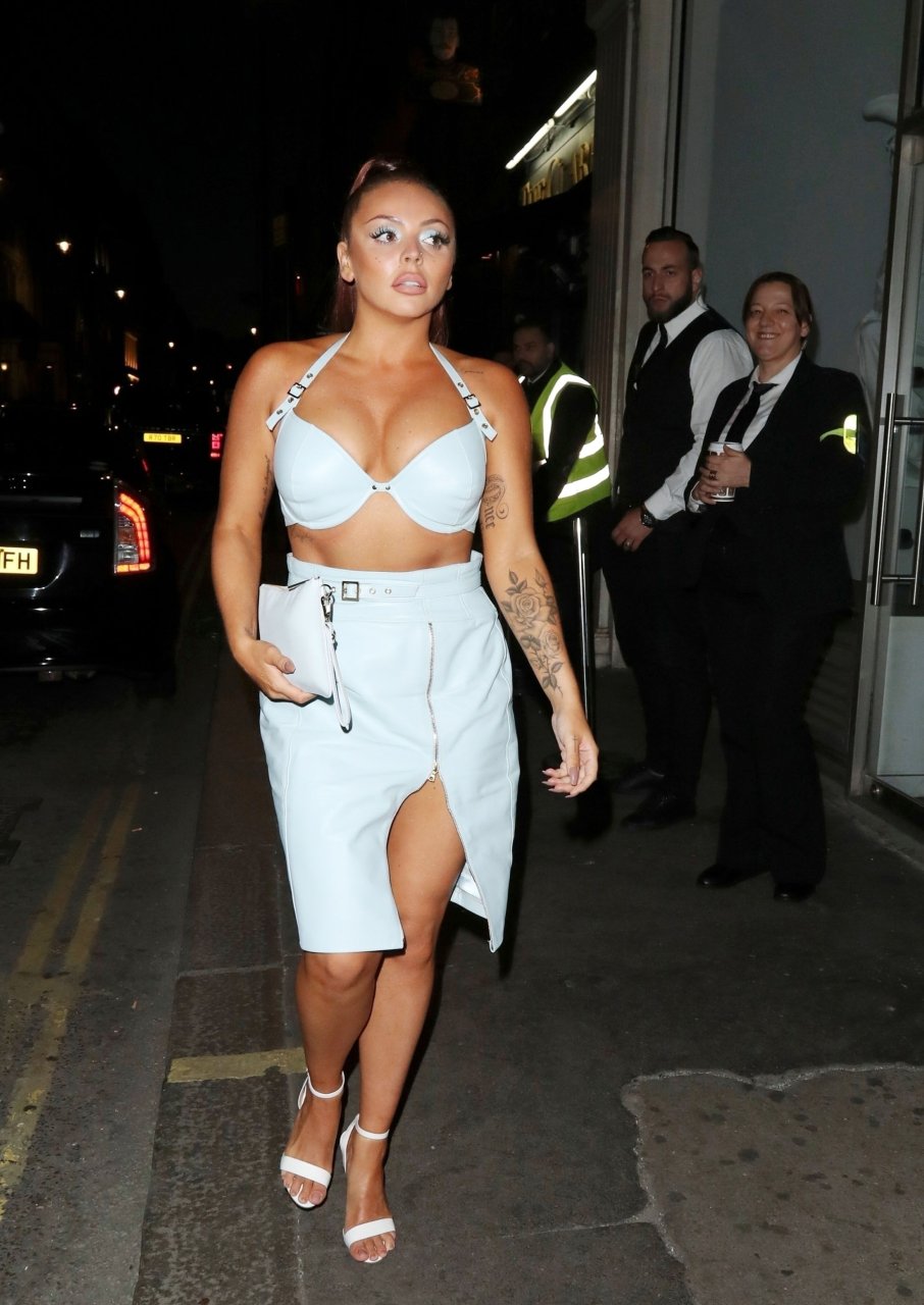 Cantante Jesy Nelson fotografiada mostrando sus fabulosos abdominales con un revelador atuendo de cumpleaños mientras llega con su novio a su fiesta sorpresa de cumpleaños celebrada en el club nocturno Mahiki en Londres, 21/06/2018.