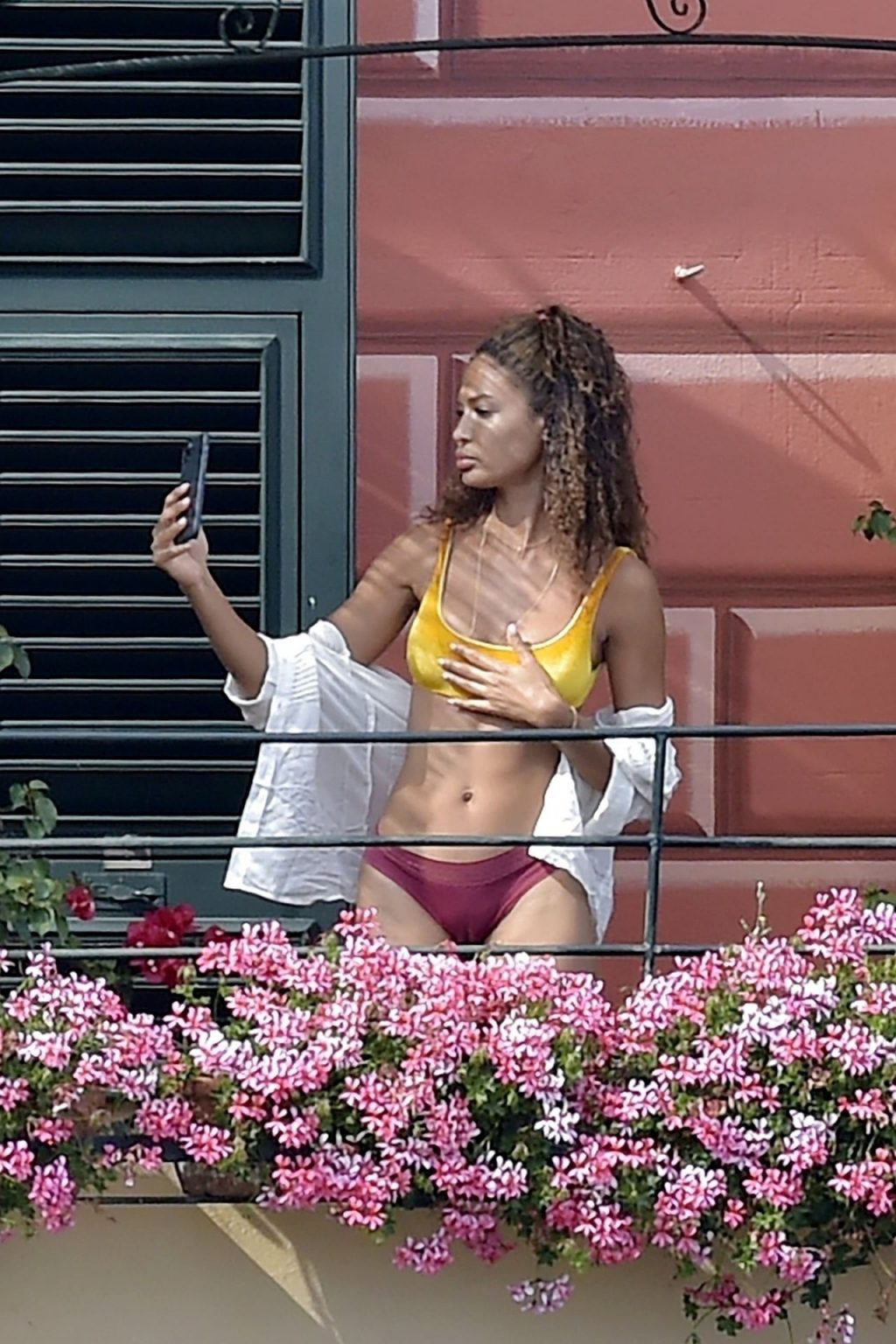 Joan lució una serie de atuendos escasos bajo el calor del sol italiano, tomando algunas selfies y subiendo la temperatura con su esbelta y sexy figura.