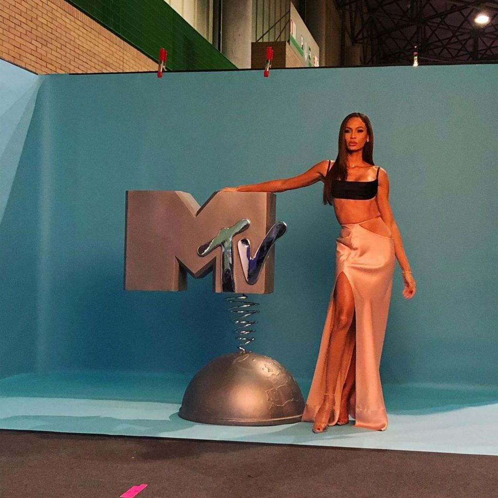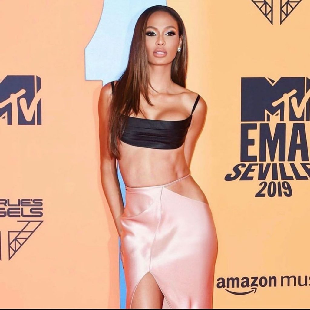 Famosa modelo Joan Smalls fue vista en la alfombra roja de los MTV European Music Awards 2019 (MTV EMAs) en el Centro de Conferencias y Exposiciones FIBES en Sevilla, Andalucía, España, 11/03/2019.
