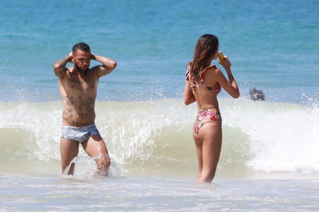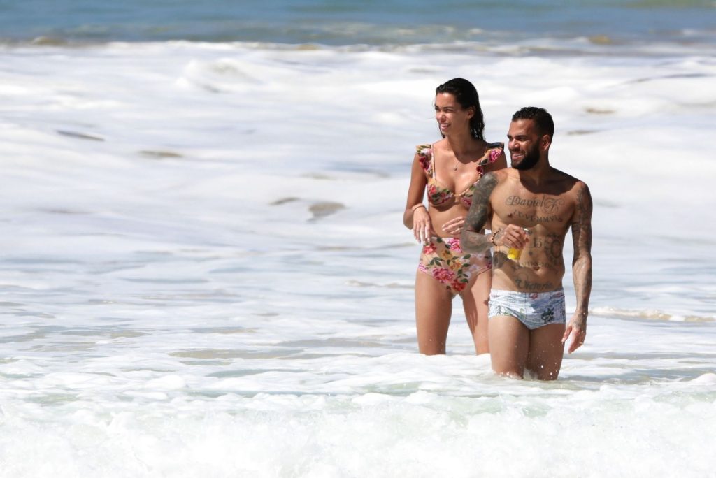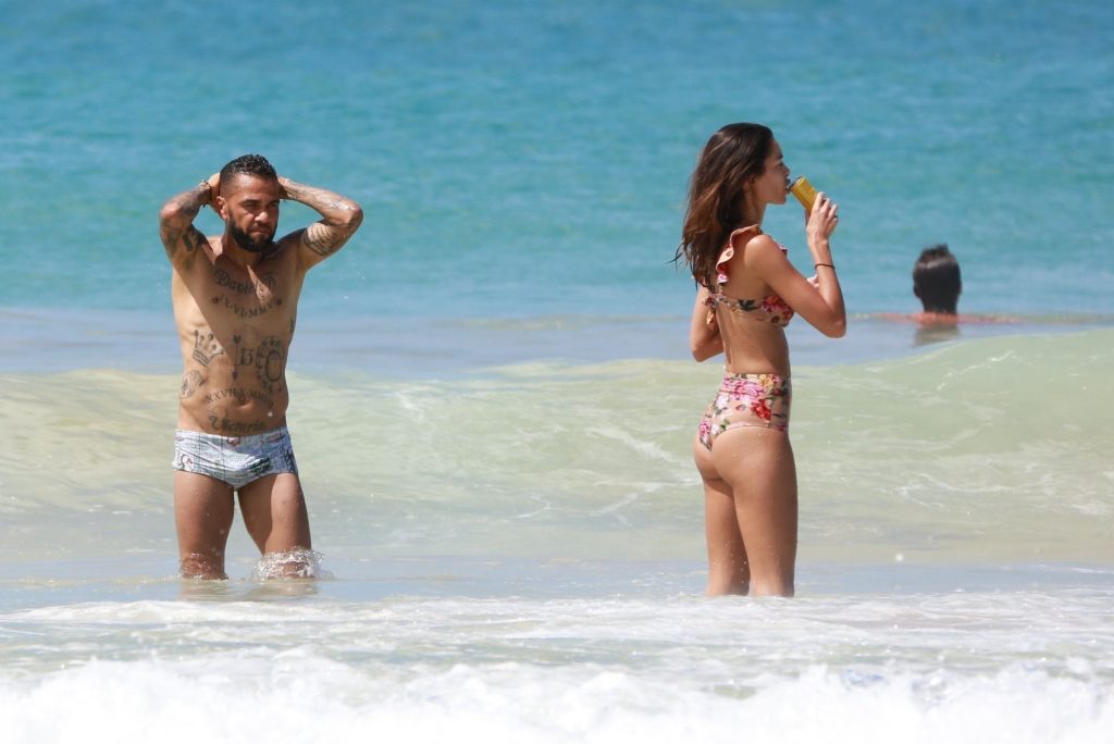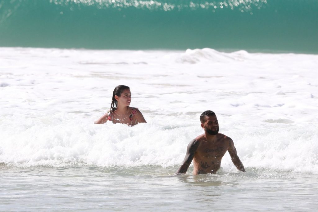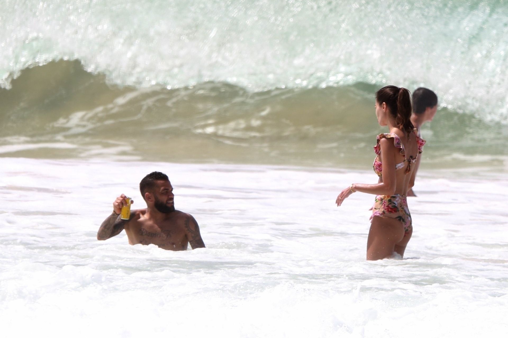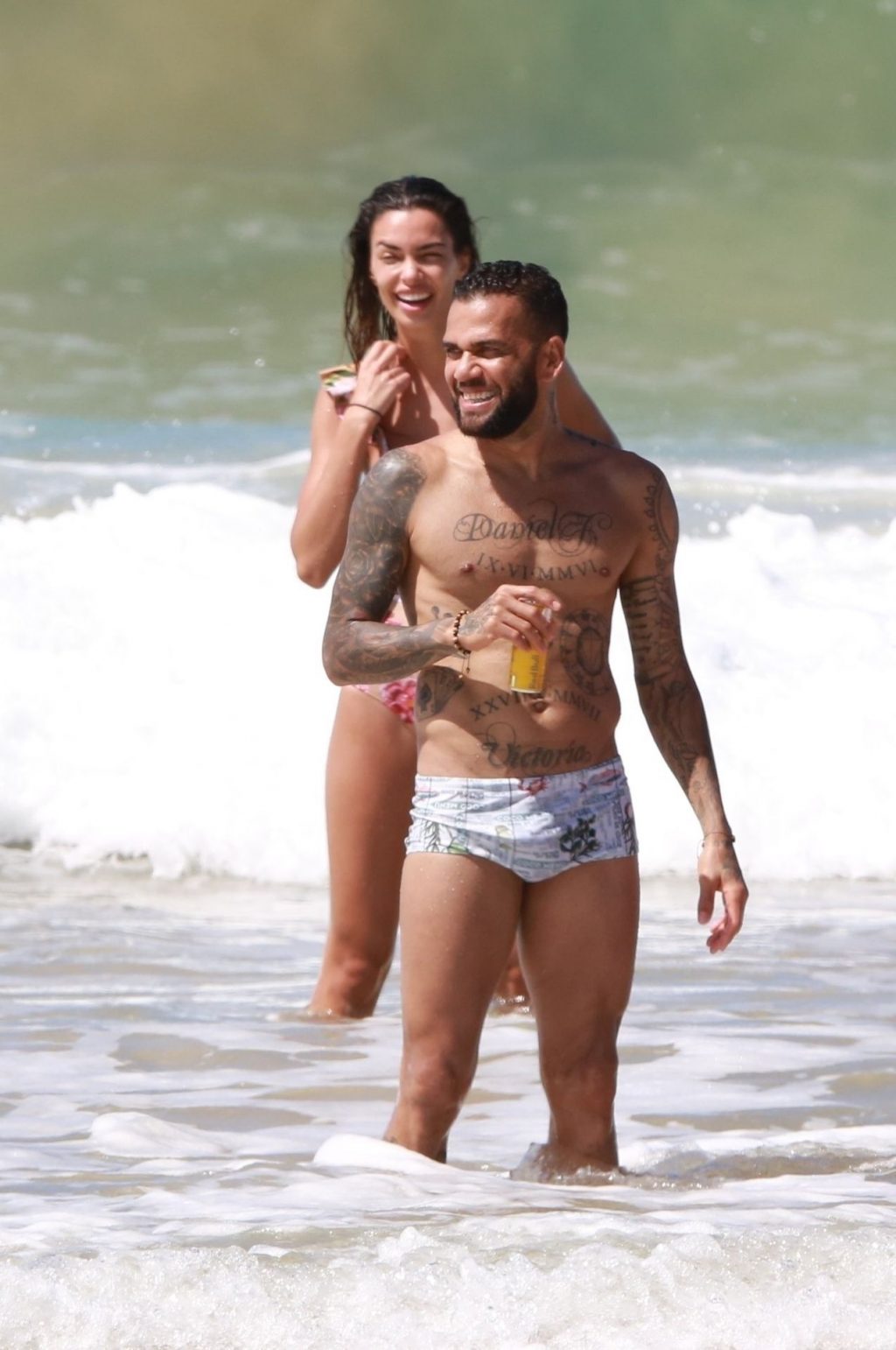 El futbolista brasileño Daniel Alves y su esposa, la modelo española Joana Sanz, fueron vistos en la playa Conceicao en Fernando de Noronha, Brasil, el 29/12/2019.