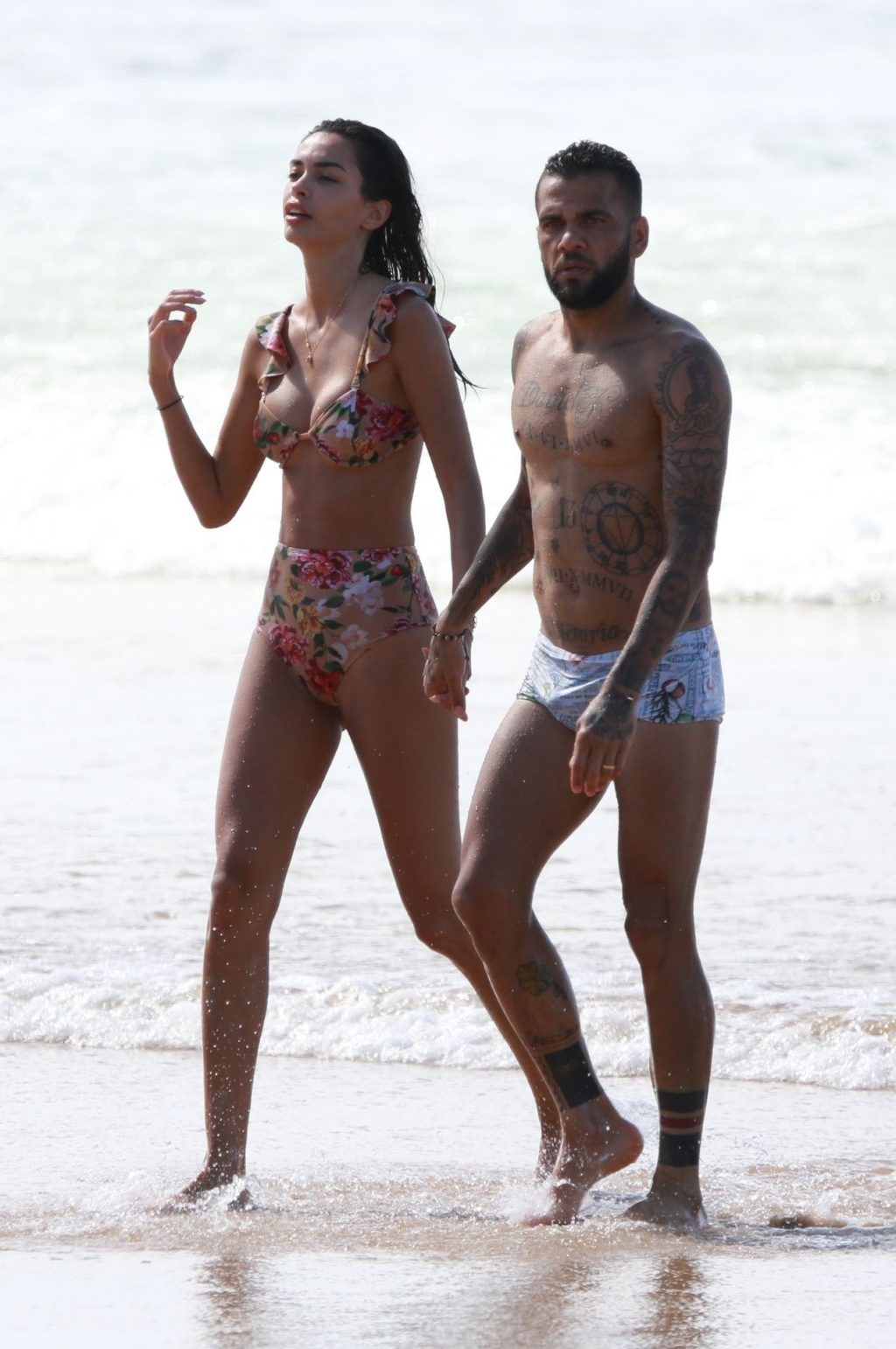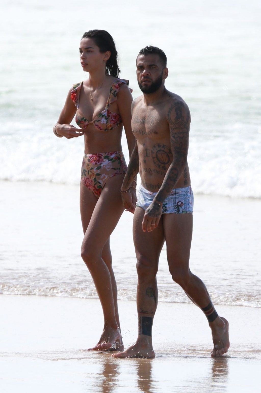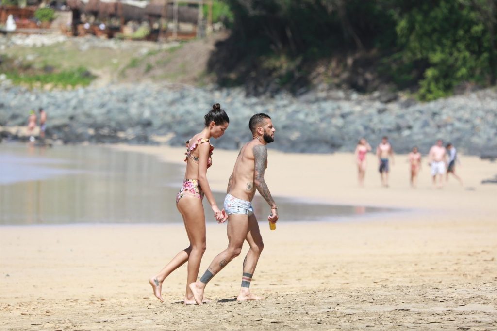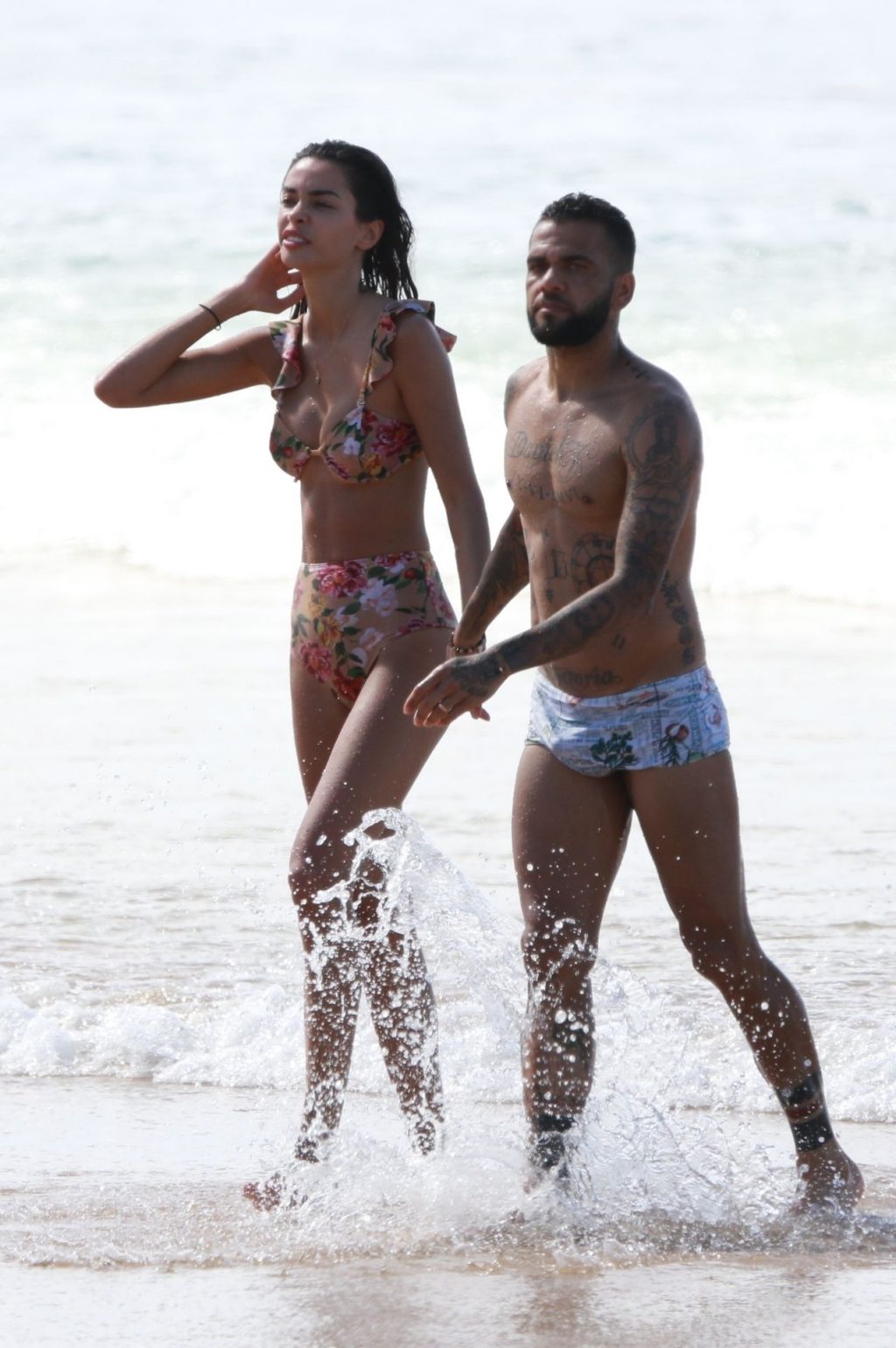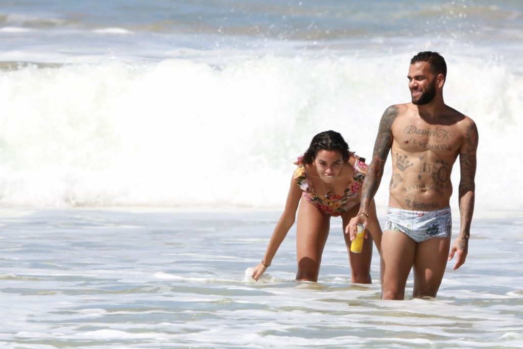 El futbolista brasileño Daniel Alves y su esposa, la modelo española Joana Sanz, fueron vistos en la playa Conceicao en Fernando de Noronha, Brasil, el 29/12/2019.