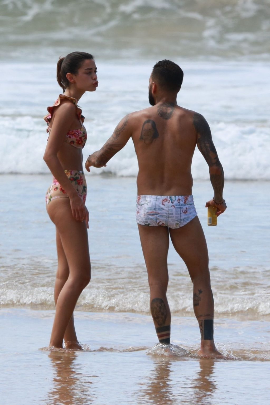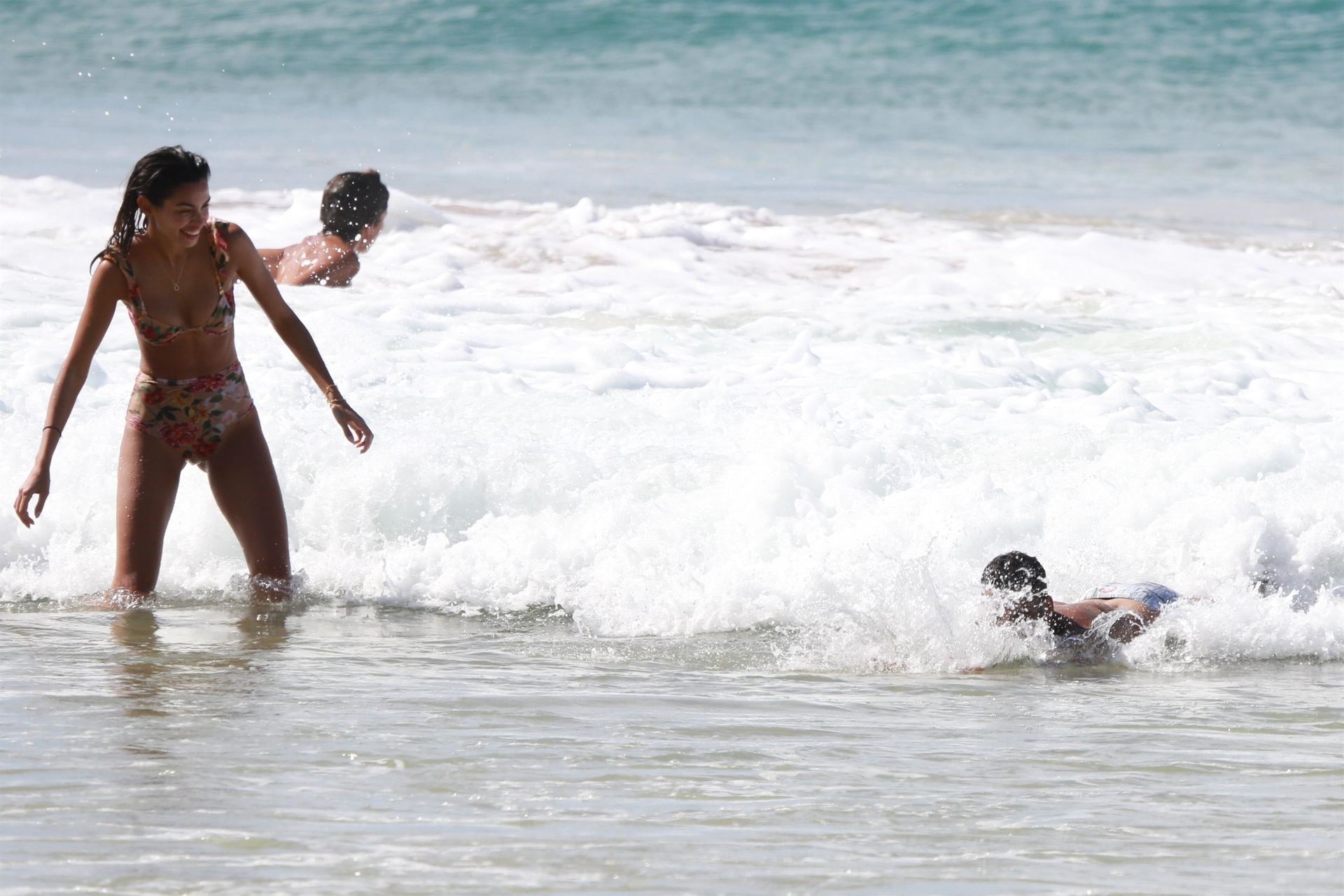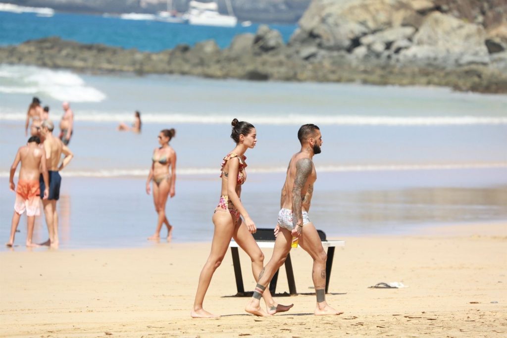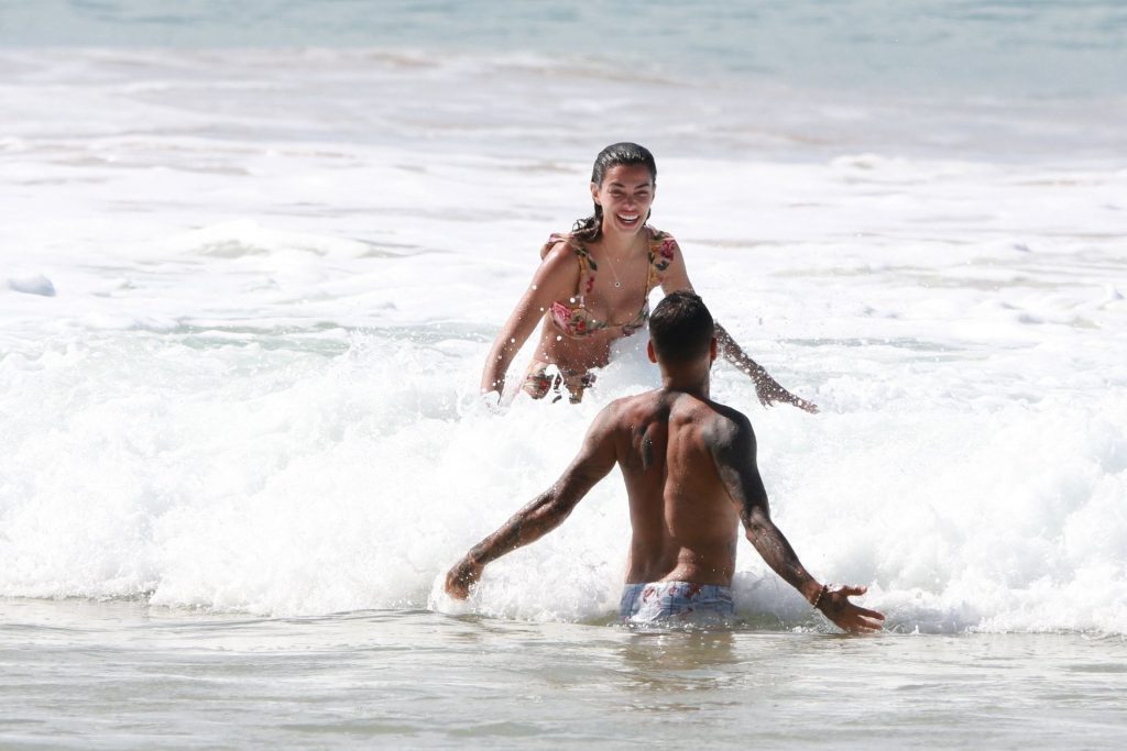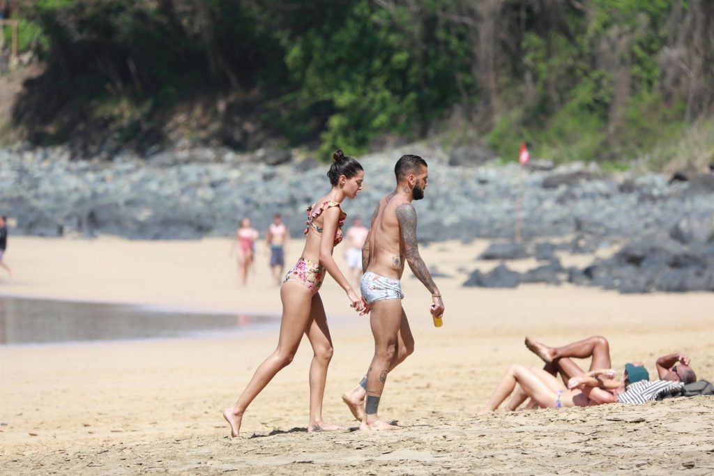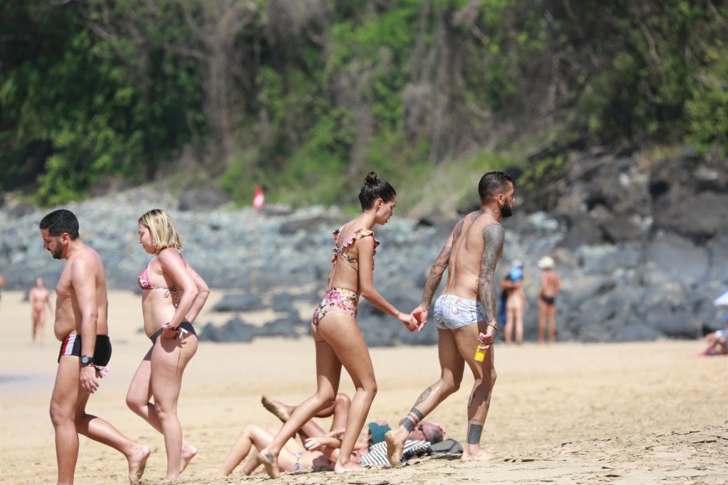 El futbolista brasileño Daniel Alves y su esposa, la modelo española Joana Sanz, fueron vistos en la playa Conceicao en Fernando de Noronha, Brasil, el 29/12/2019.