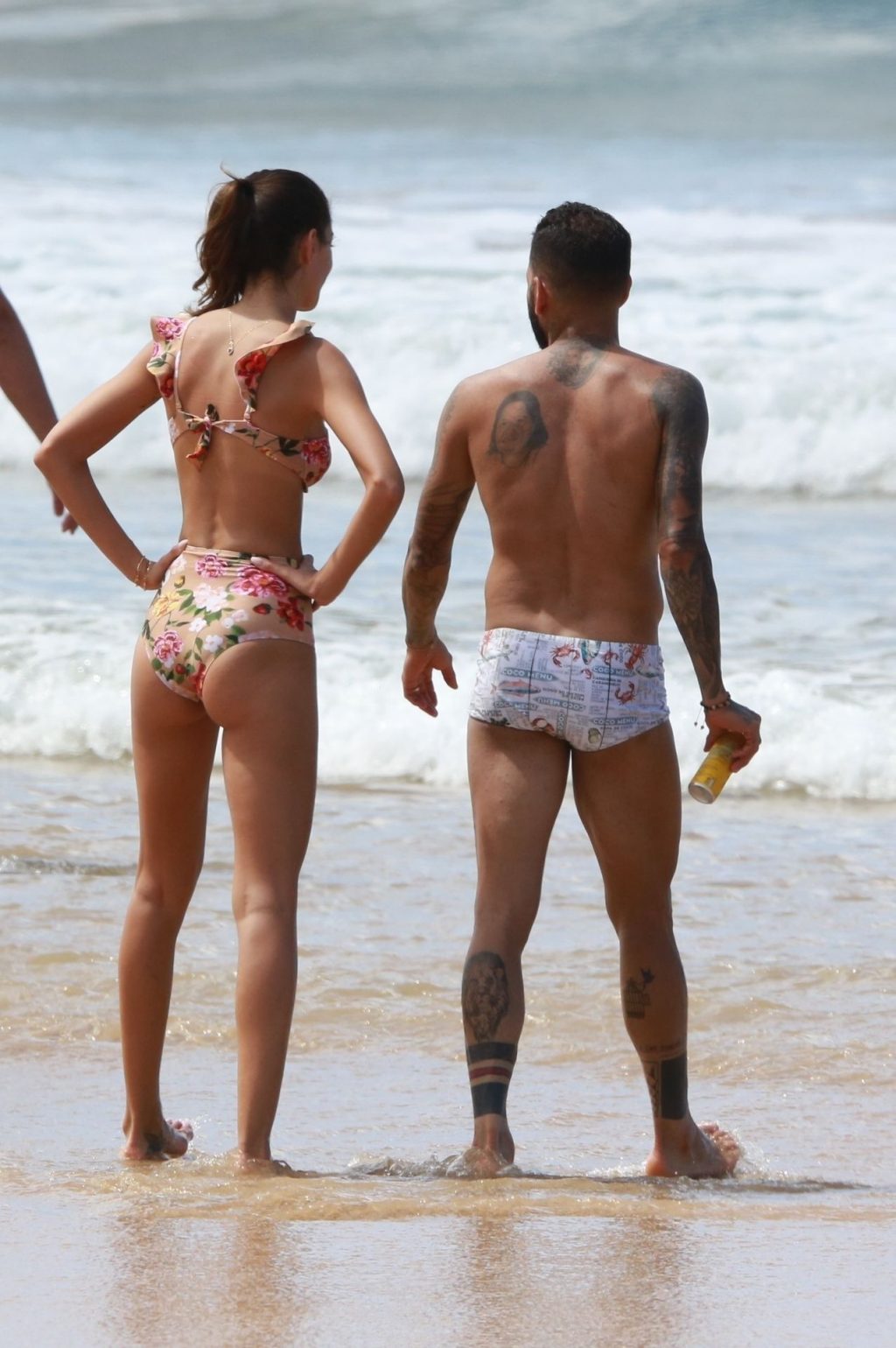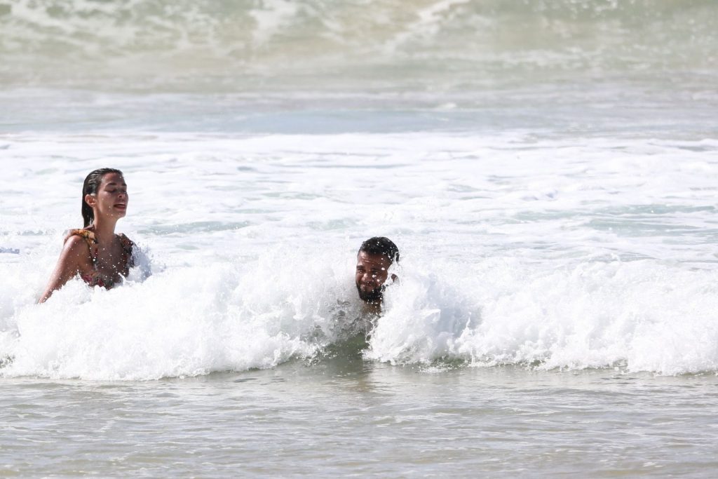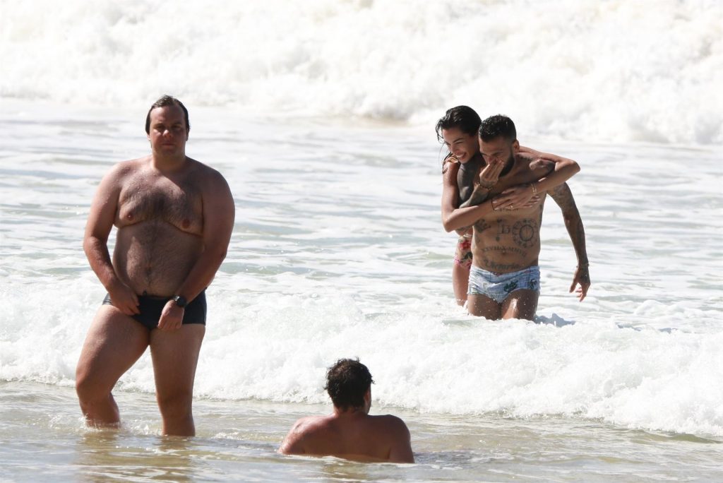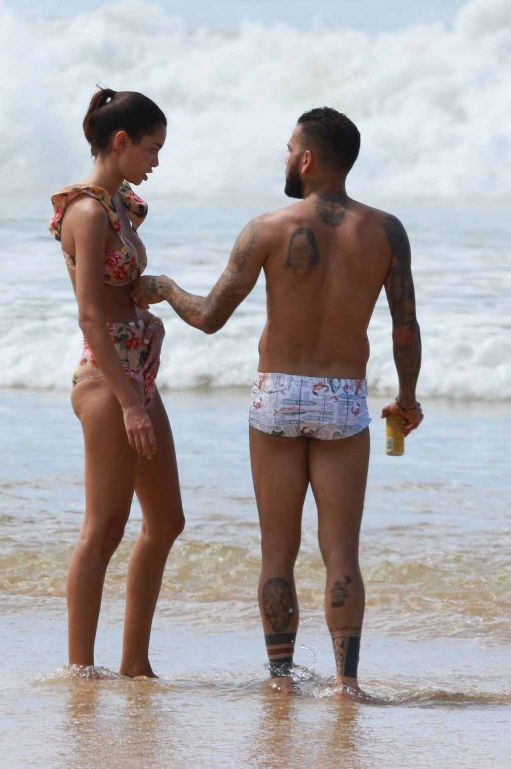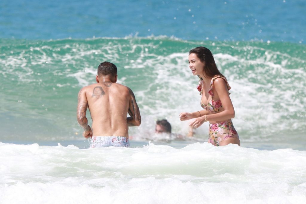 El futbolista brasileño Daniel Alves y su esposa, la modelo española Joana Sanz, fueron vistos en la playa Conceicao en Fernando de Noronha, Brasil, el 29/12/2019.