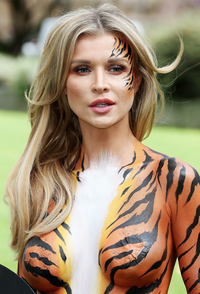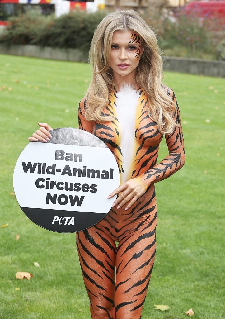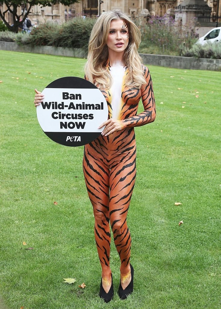 Pintada como un tigre, la supermodelo Joanna Krupa, 38, se une a PETA fuera de Westminster, Londres, 11/09/2017.