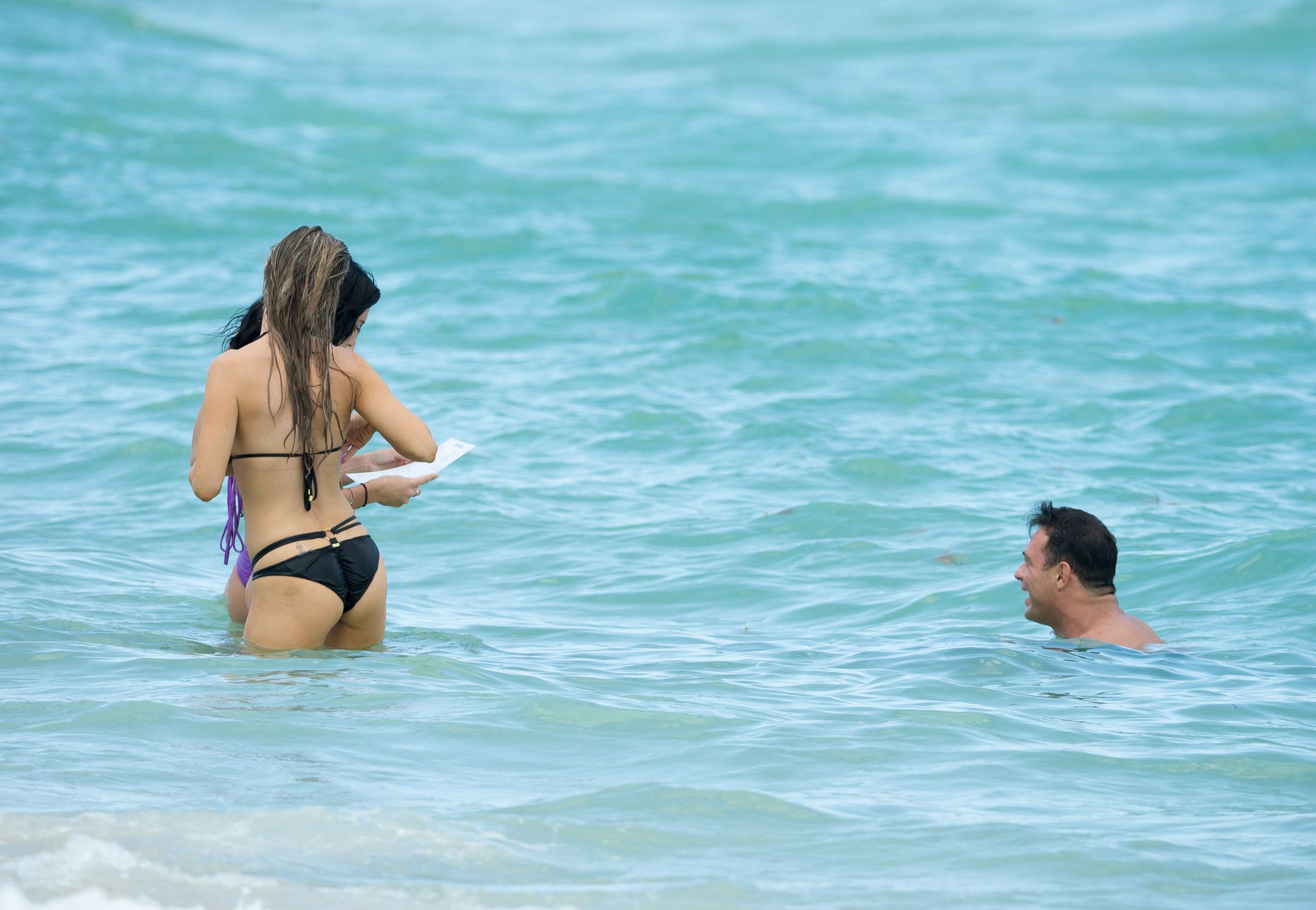 Joanna Krupa y su esposo Romain Zago vistos juntos en la playa en Miami, 11/07/2017. Joanna Krupa es modelo, actriz (Max Havoc: Curse of the Dragon – 2004), activista por los derechos de los animales, estrella de televisión. Edad – 38.