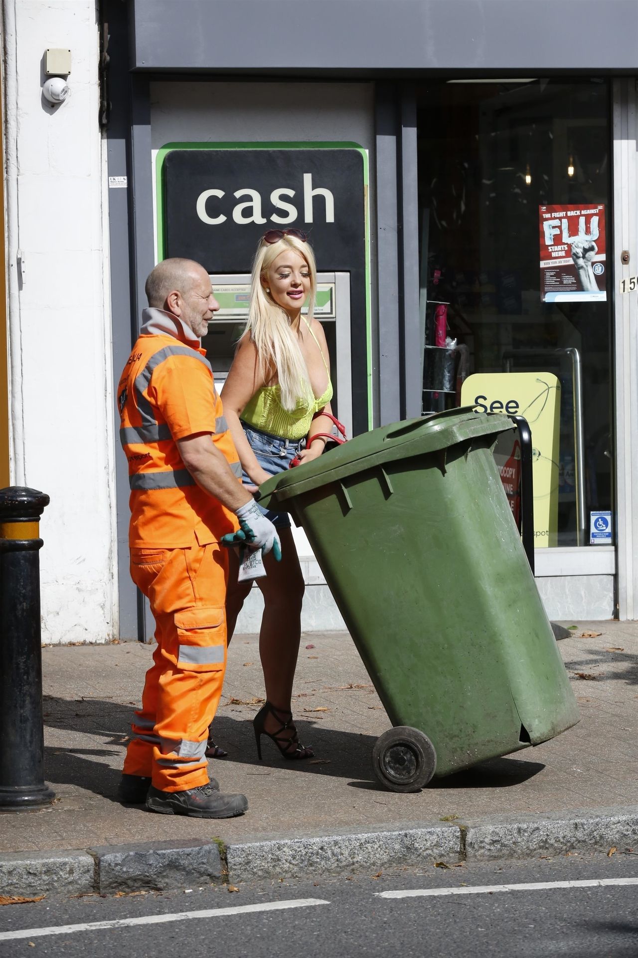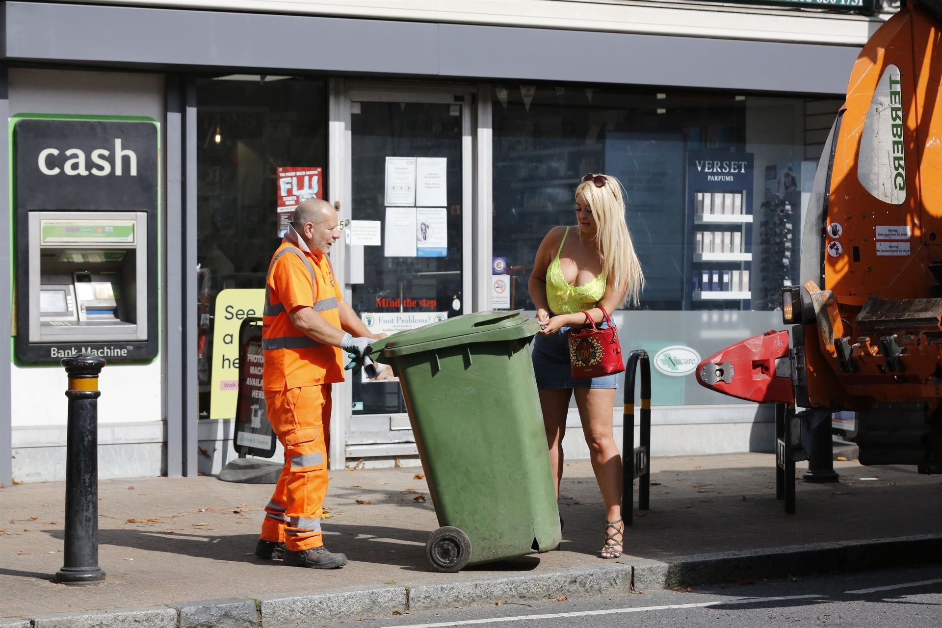 Después de ayudar a sacar la basura, tiene un desastre con las escaleras para limpiar ventanas que caen en medio de la carretera, deteniendo todo el tráfico.