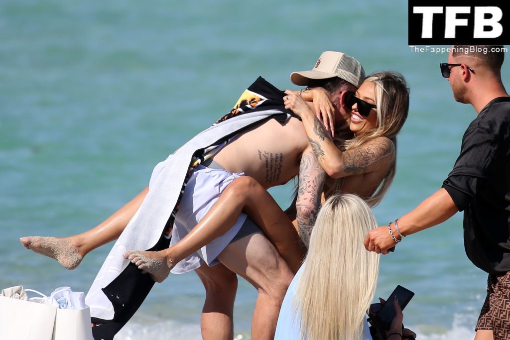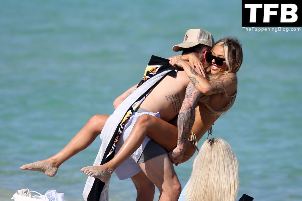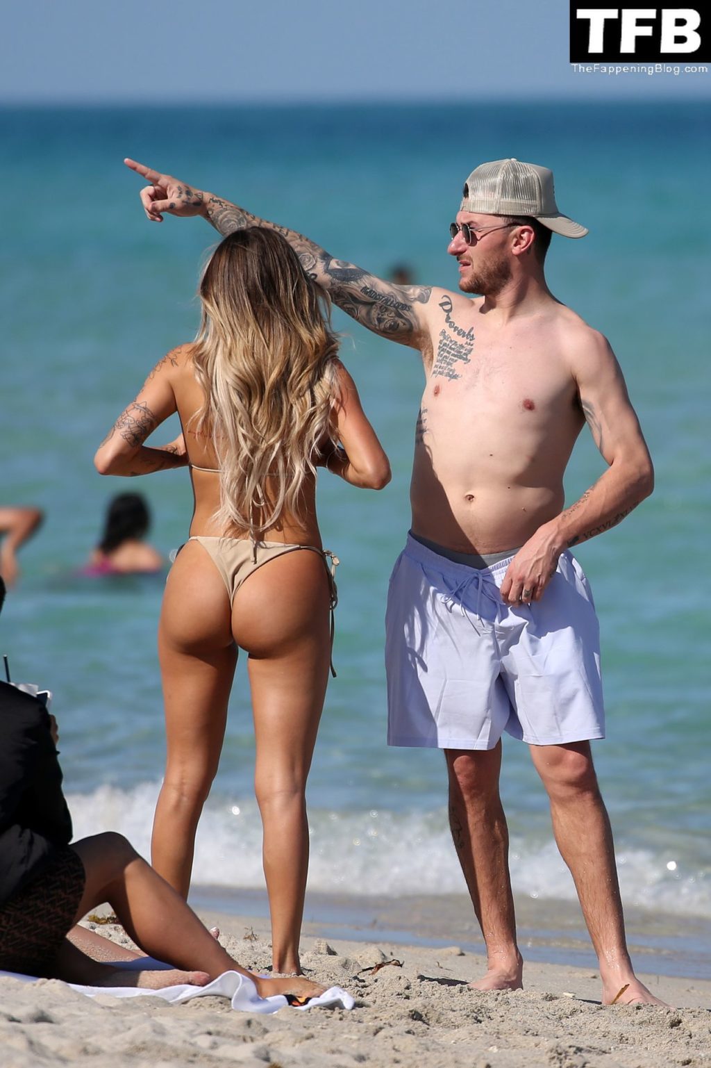 Johnny Manziel disfruta de la playa con una mujer rubia en bikini en Miami (24 fotos)