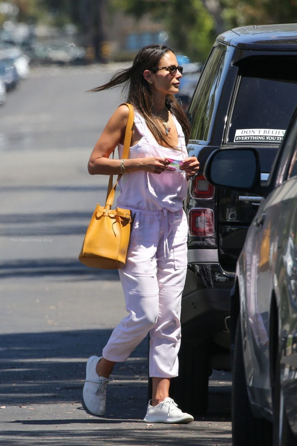 Actriz Jordana Brewster luce un mono rosa transparente mientras pasea por Brentwood, 14/06/2021.
