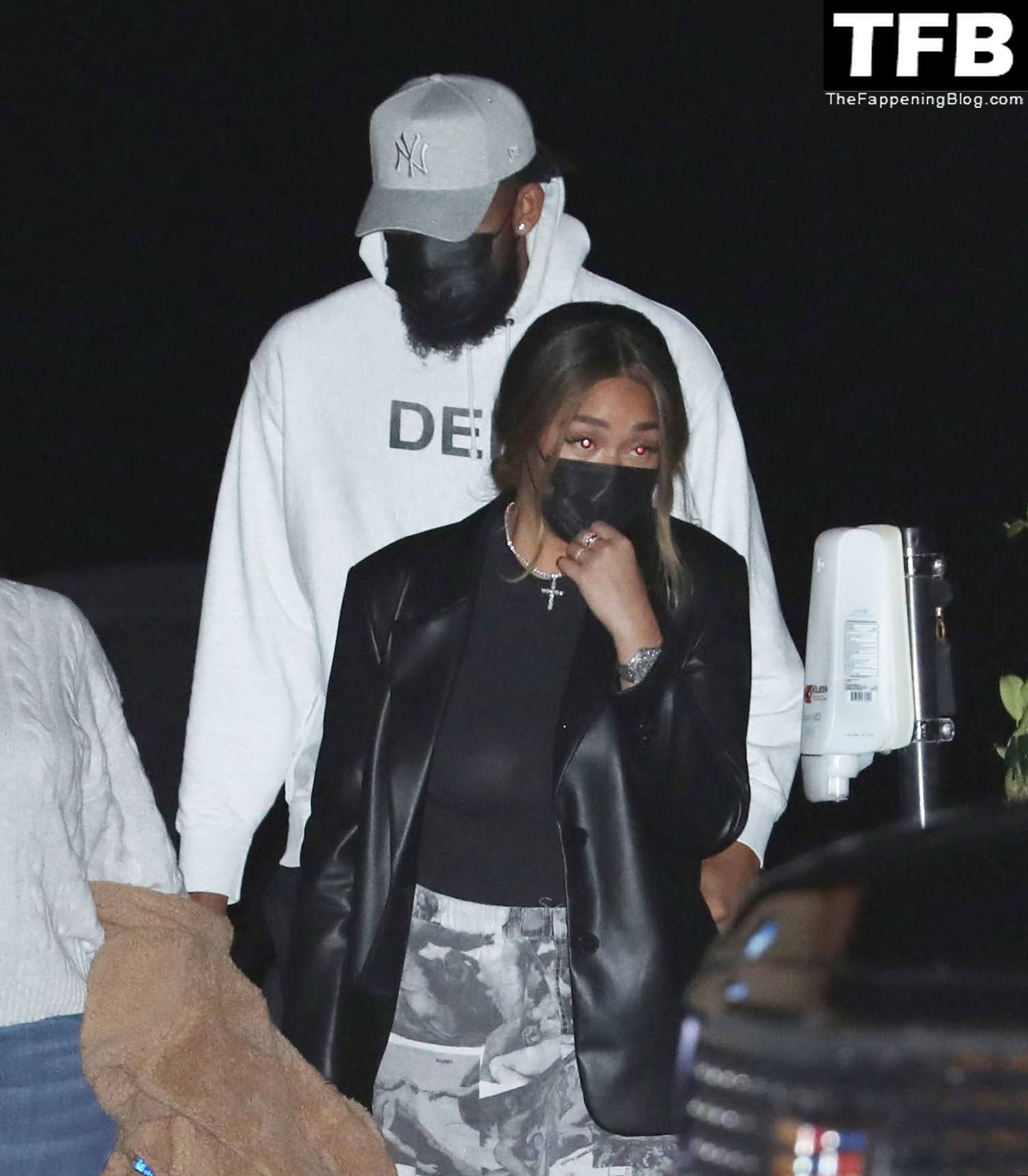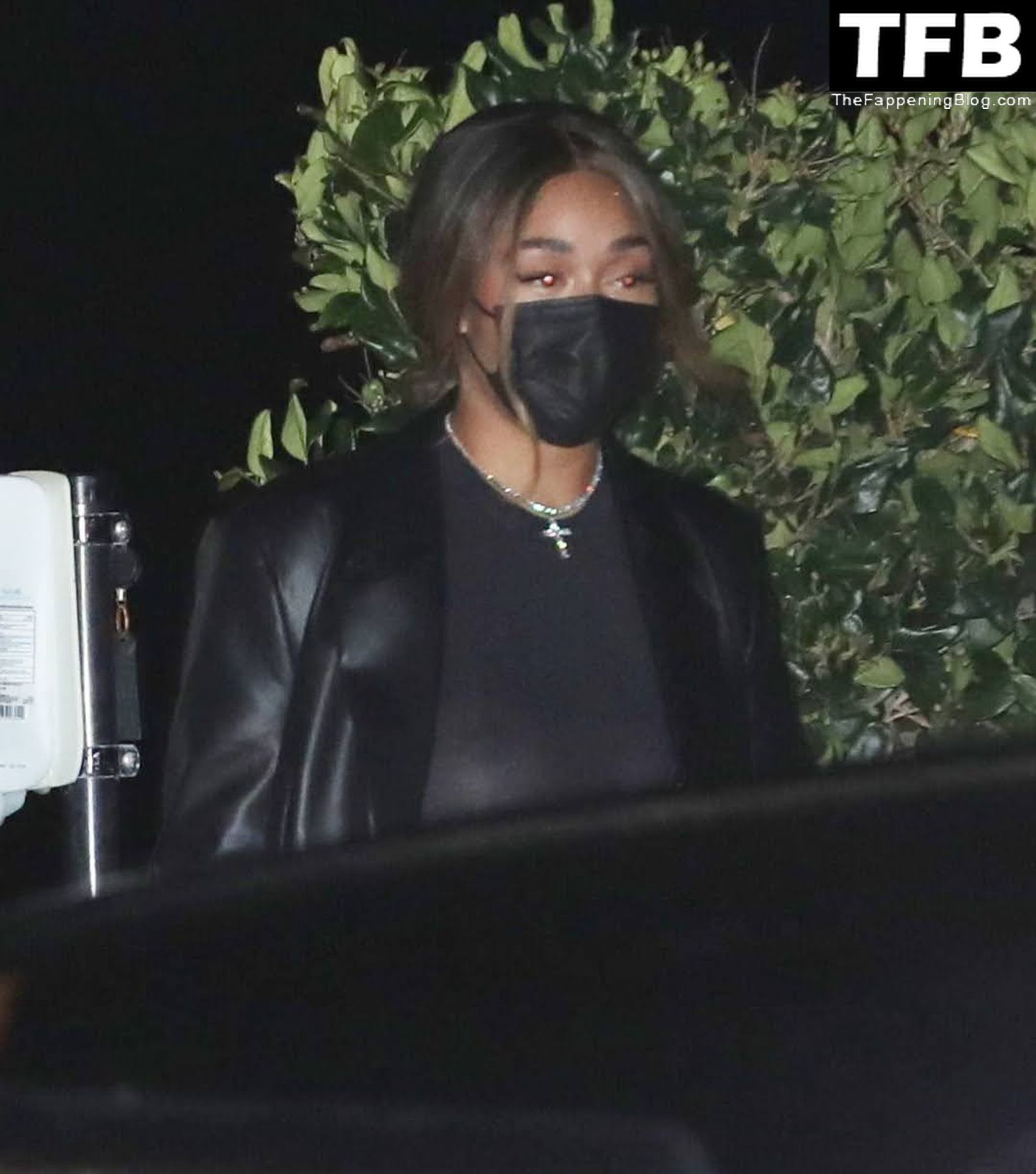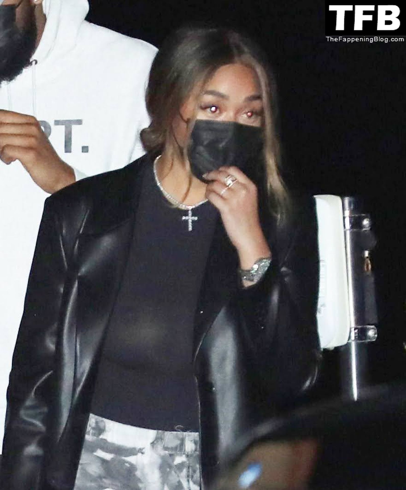 Jordyn Woods se siente sexy mientras va sin sostén con su top negro transparente en Nobu, 11/11/2021.