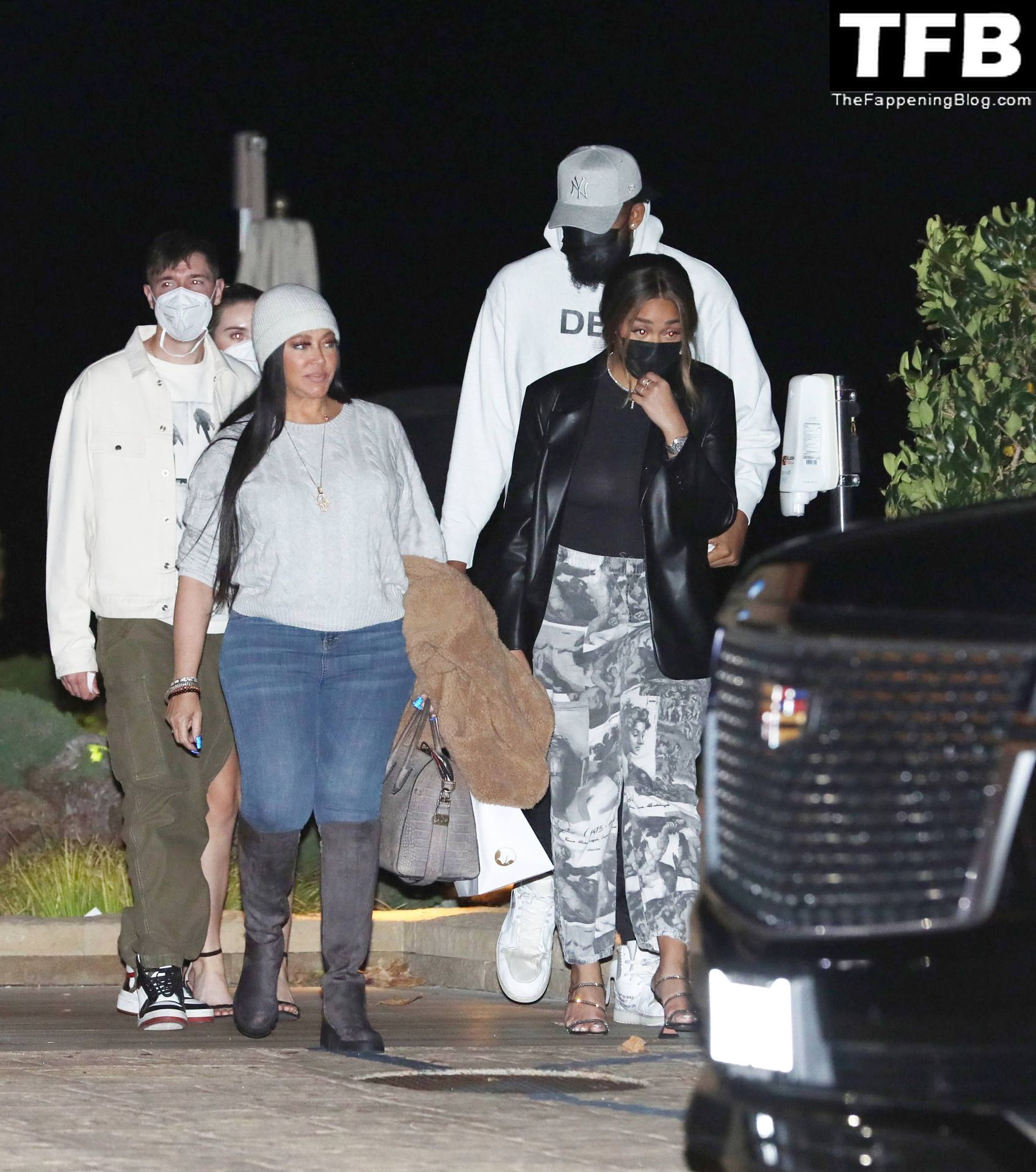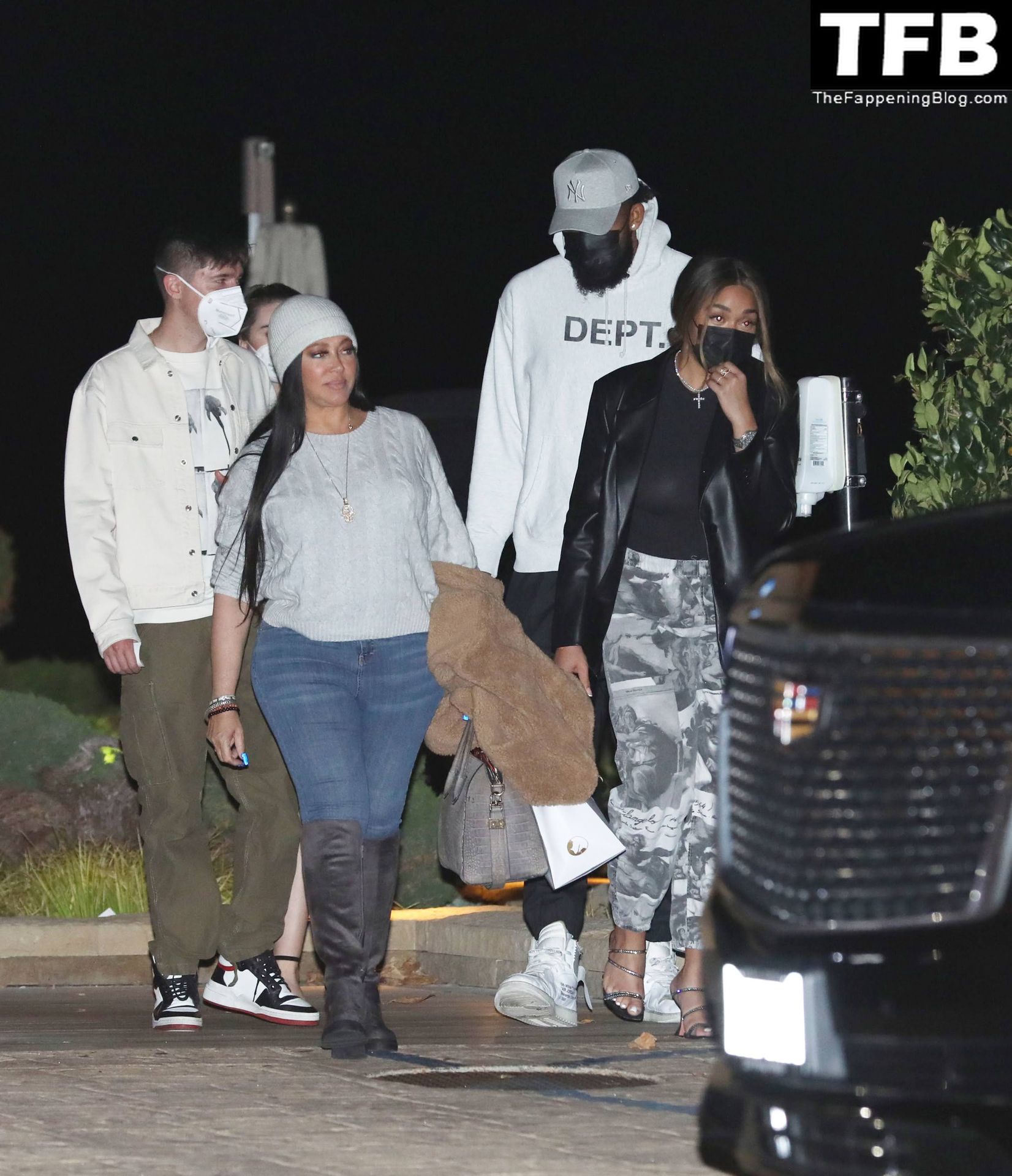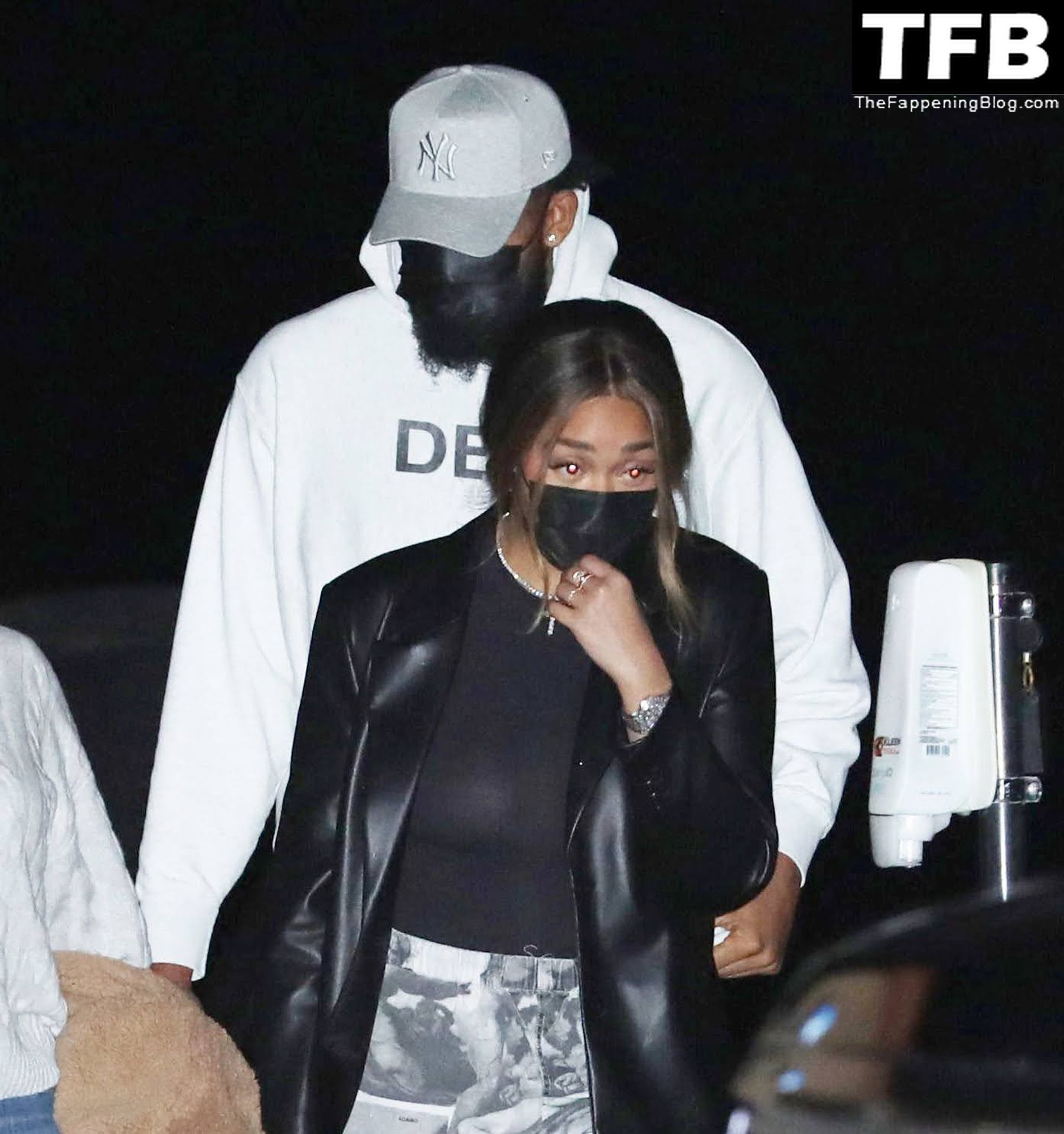 Jordyn Woods se siente sexy mientras va sin sostén con su top negro transparente en Nobu, 11/11/2021.