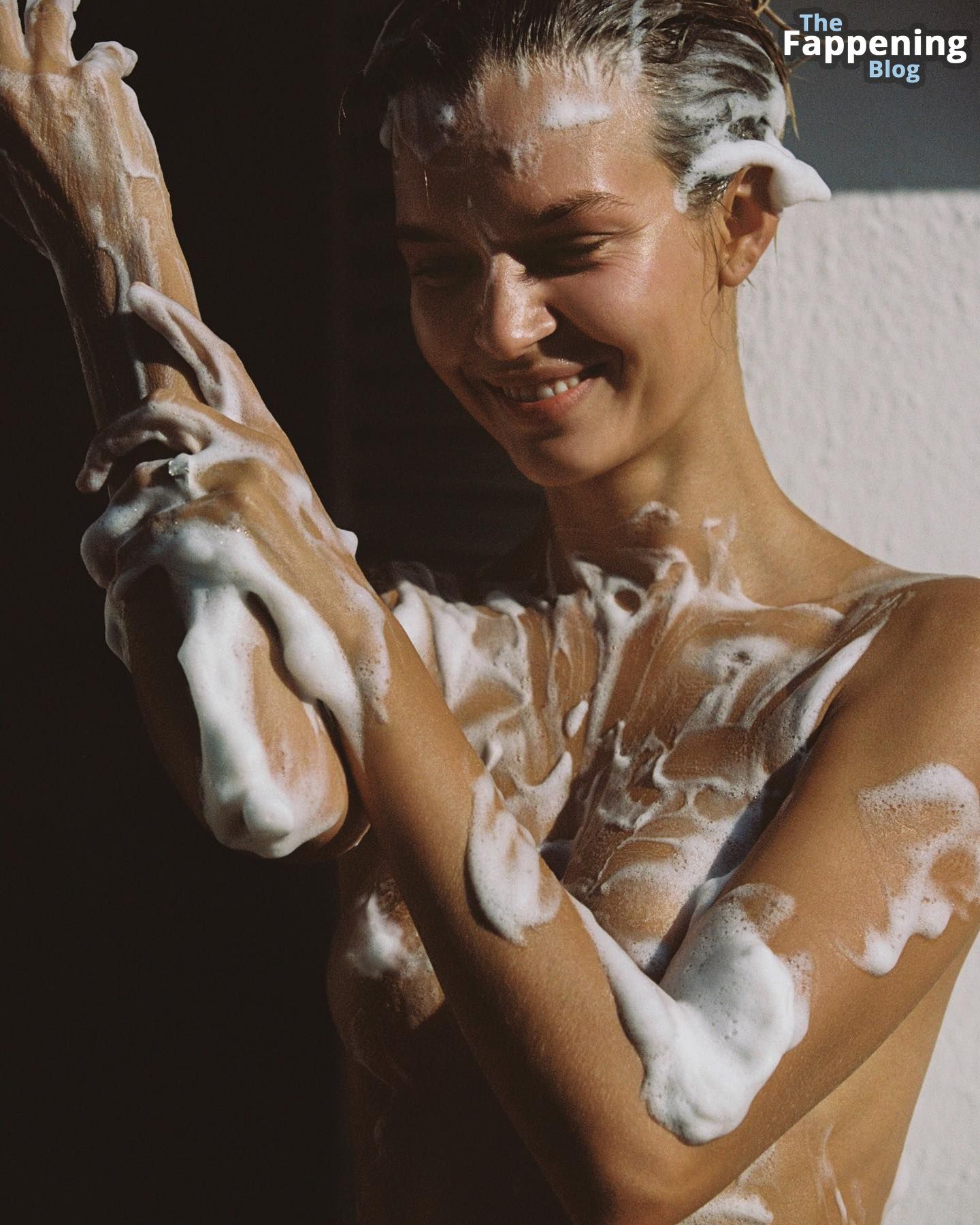 Echa un vistazo a Josephine Skriver, la modelo danesa y “Ángel” de Victoria’s Secret, luciendo un nuevo look para animar a sus fans y seguidores. Esta chica acaba de publicar algunas fotos nuevas que te dejarán sin palabras. Está posando desnuda en la ducha, con solo espuma de jabón cubriendo sus pechos. Estas fotos fueron tomadas por el talentoso fotógrafo Cameron Hammond, ¡y han vuelto locos a los fans!