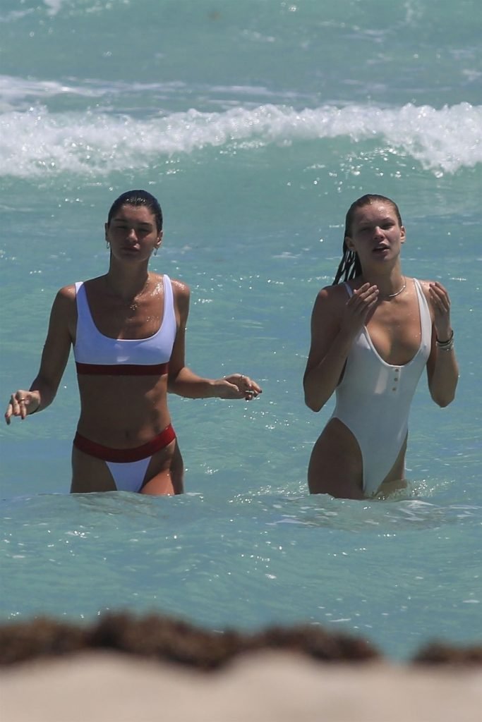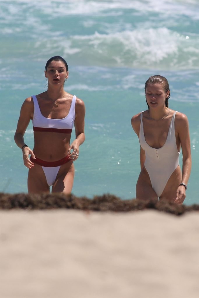 Las jóvenes modelos Josie Canseco y Bella Banos (también conocidas como Baby Bells) disfrutan de un día en la playa juntas en Miami, 28/03/2018. El par mostró sus cuerpos delgados y sexys en bikini mientras jugueteaban en el océano y bromeaban entre ellas.