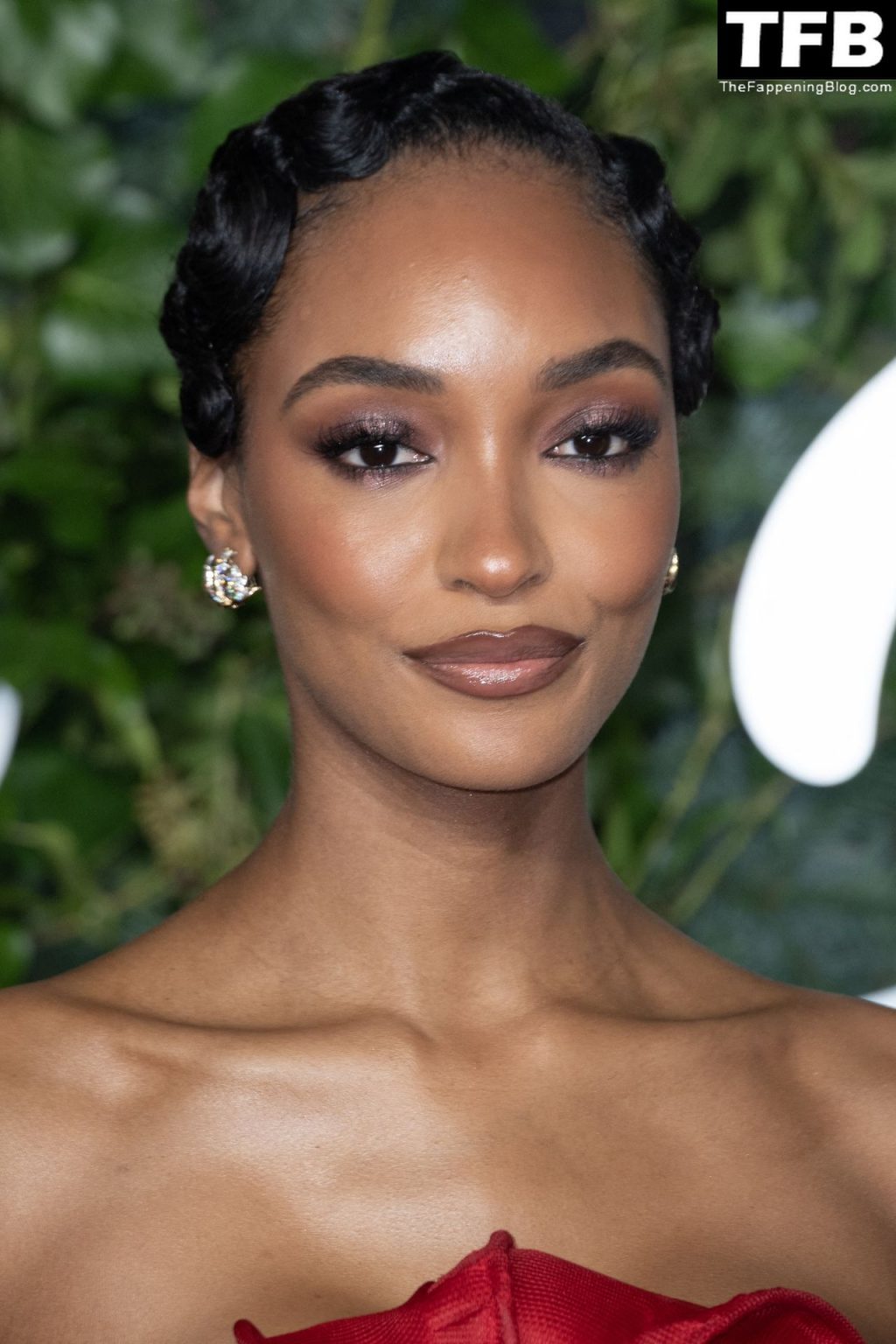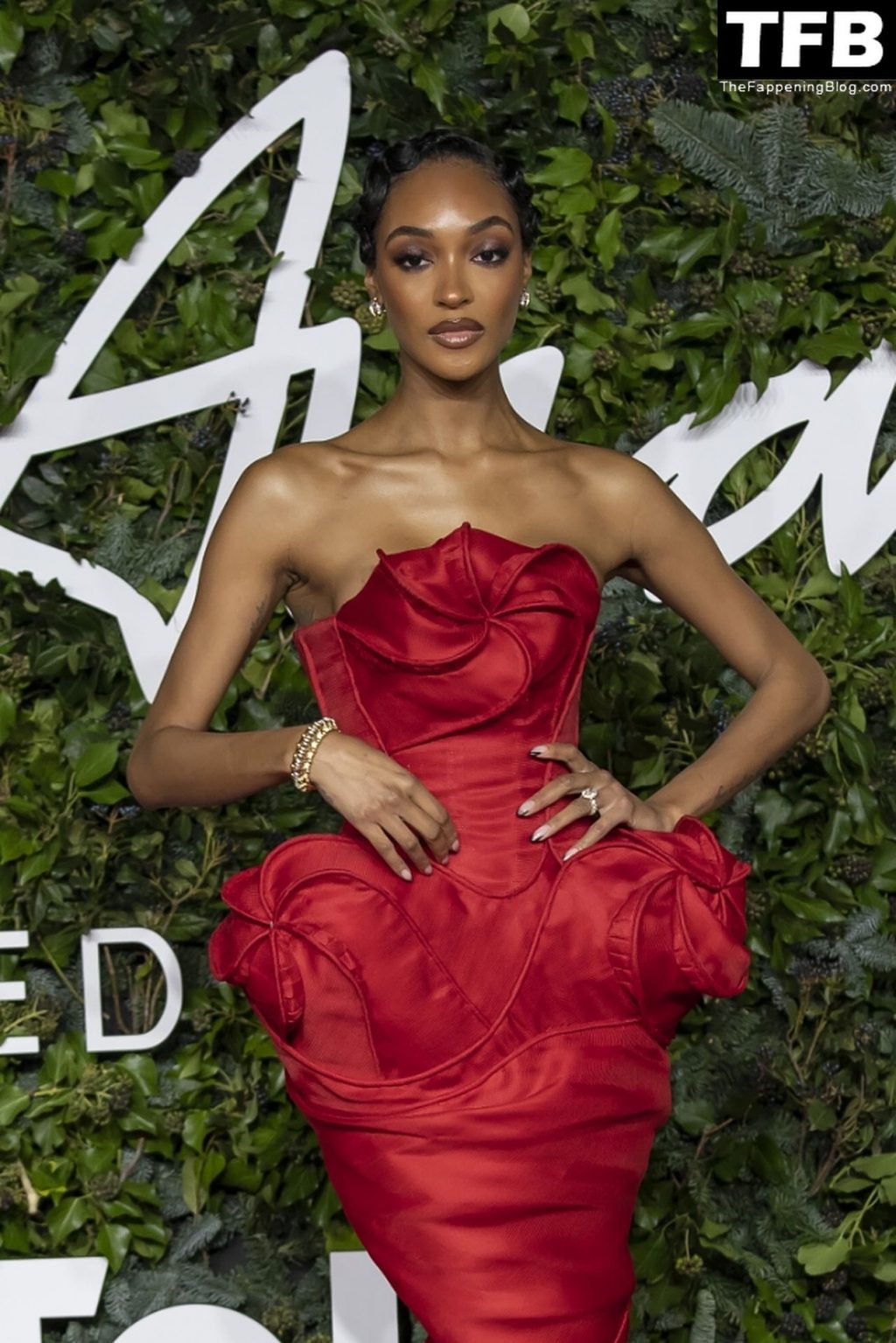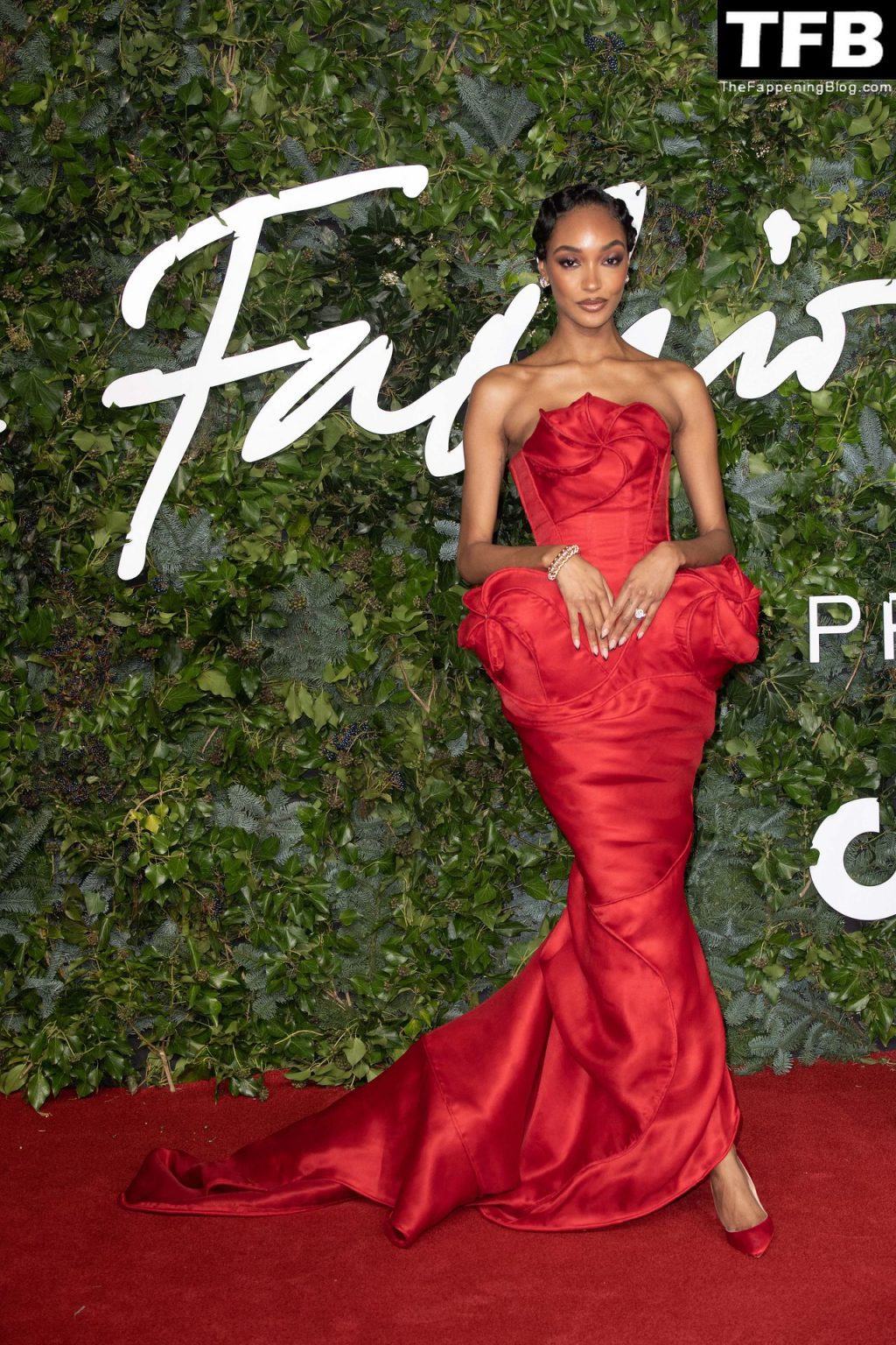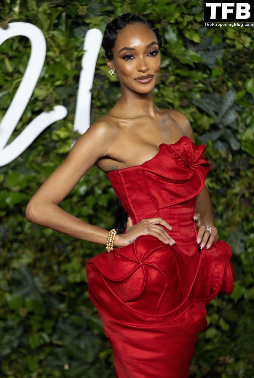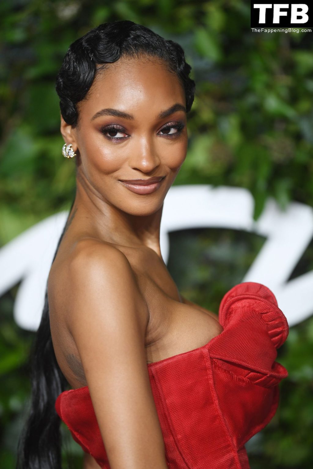 Model Jourdan Dunn muestra sus pechos, vistiendo un vestido rojo mientras asiste a Los Premios de la Moda 2021 en el Royal Albert Hall en Londres, 29/11/2021.