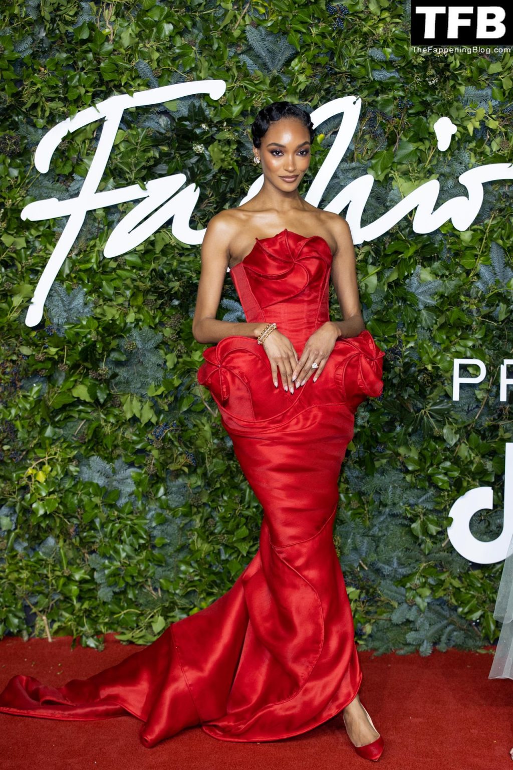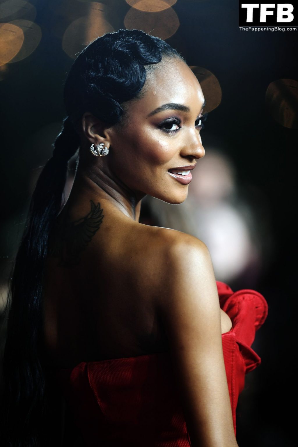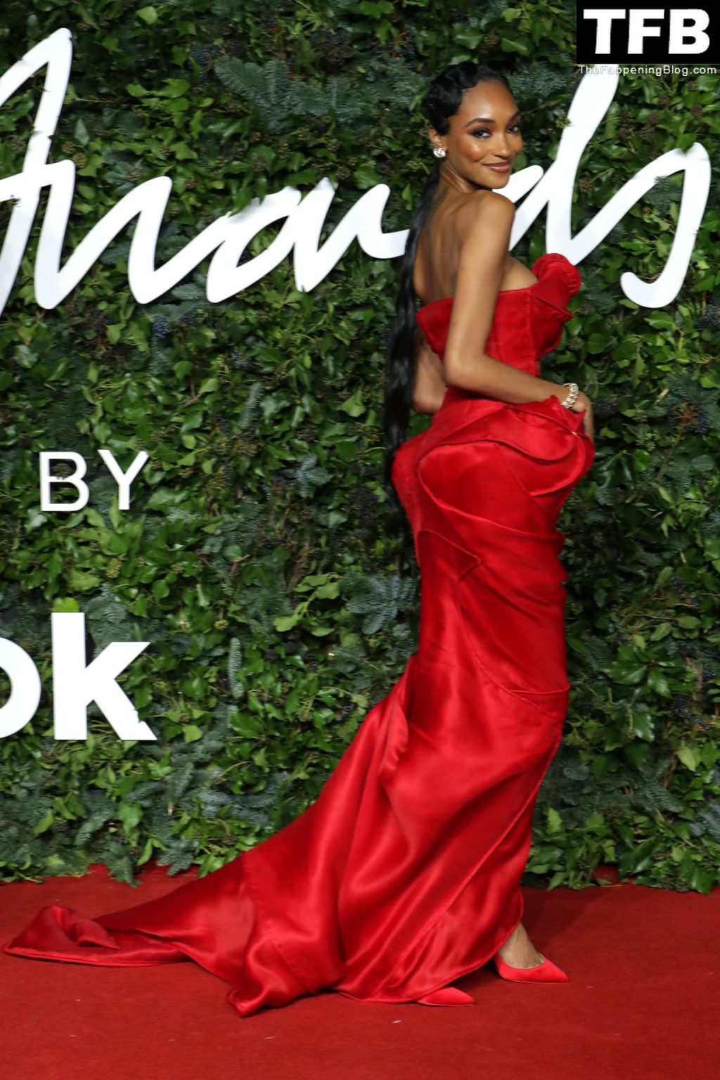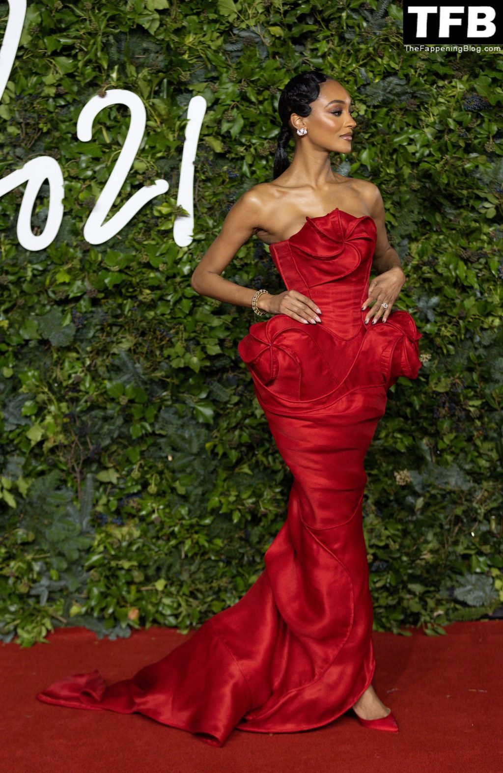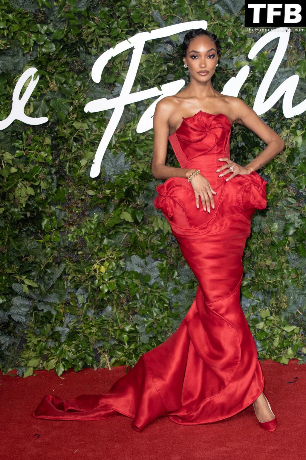 Model Jourdan Dunn muestra sus pechos, vistiendo un vestido rojo mientras asiste a Los Premios de la Moda 2021 en el Royal Albert Hall en Londres, 29/11/2021.
