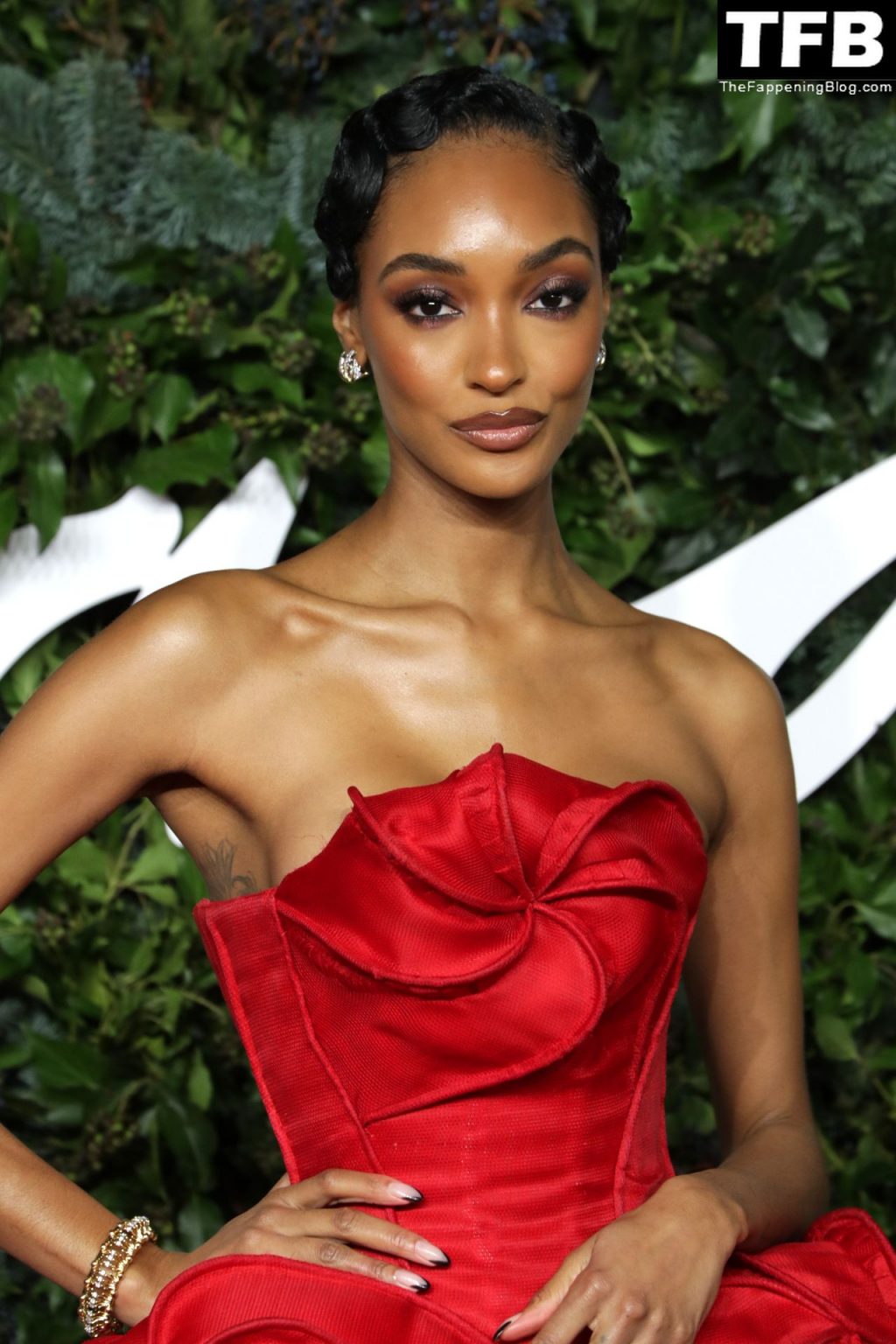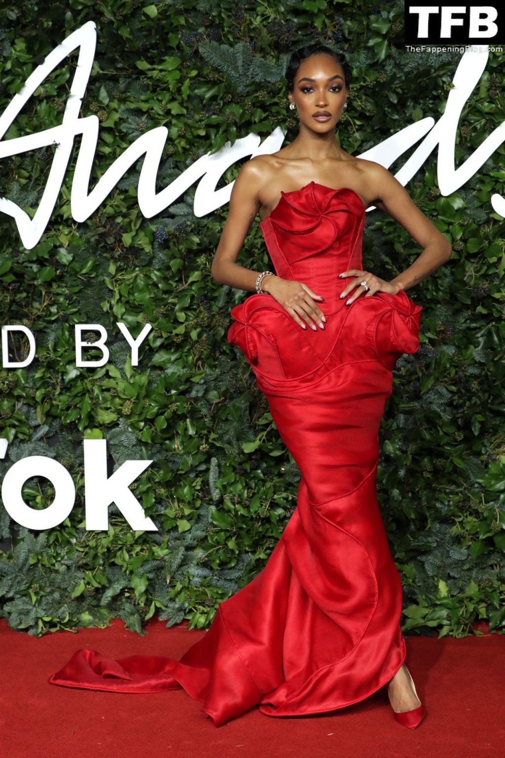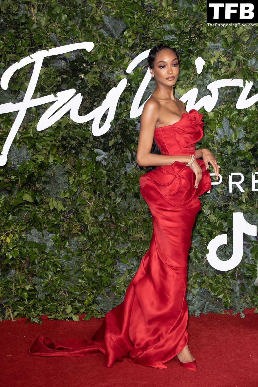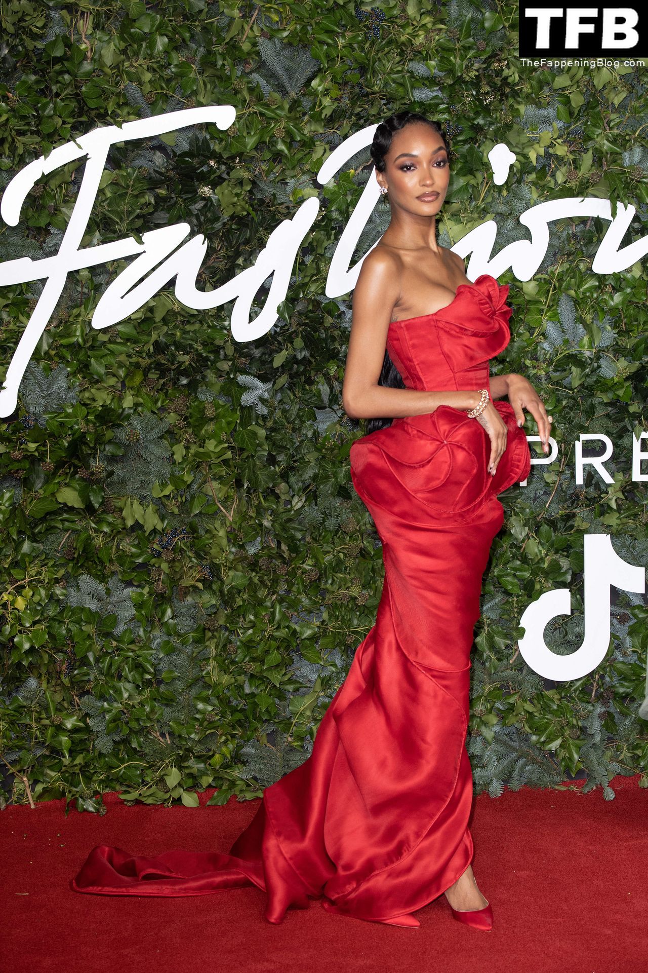 Model Jourdan Dunn muestra sus pechos, vistiendo un vestido rojo mientras asiste a Los Premios de la Moda 2021 en el Royal Albert Hall en Londres, 29/11/2021.