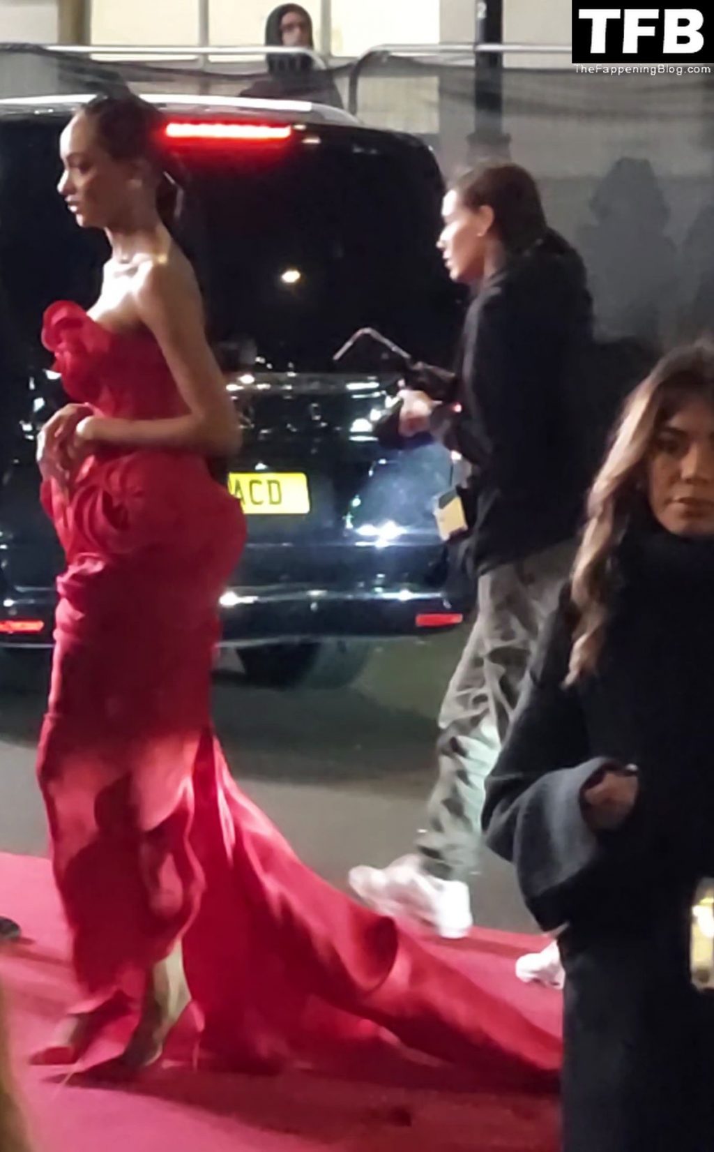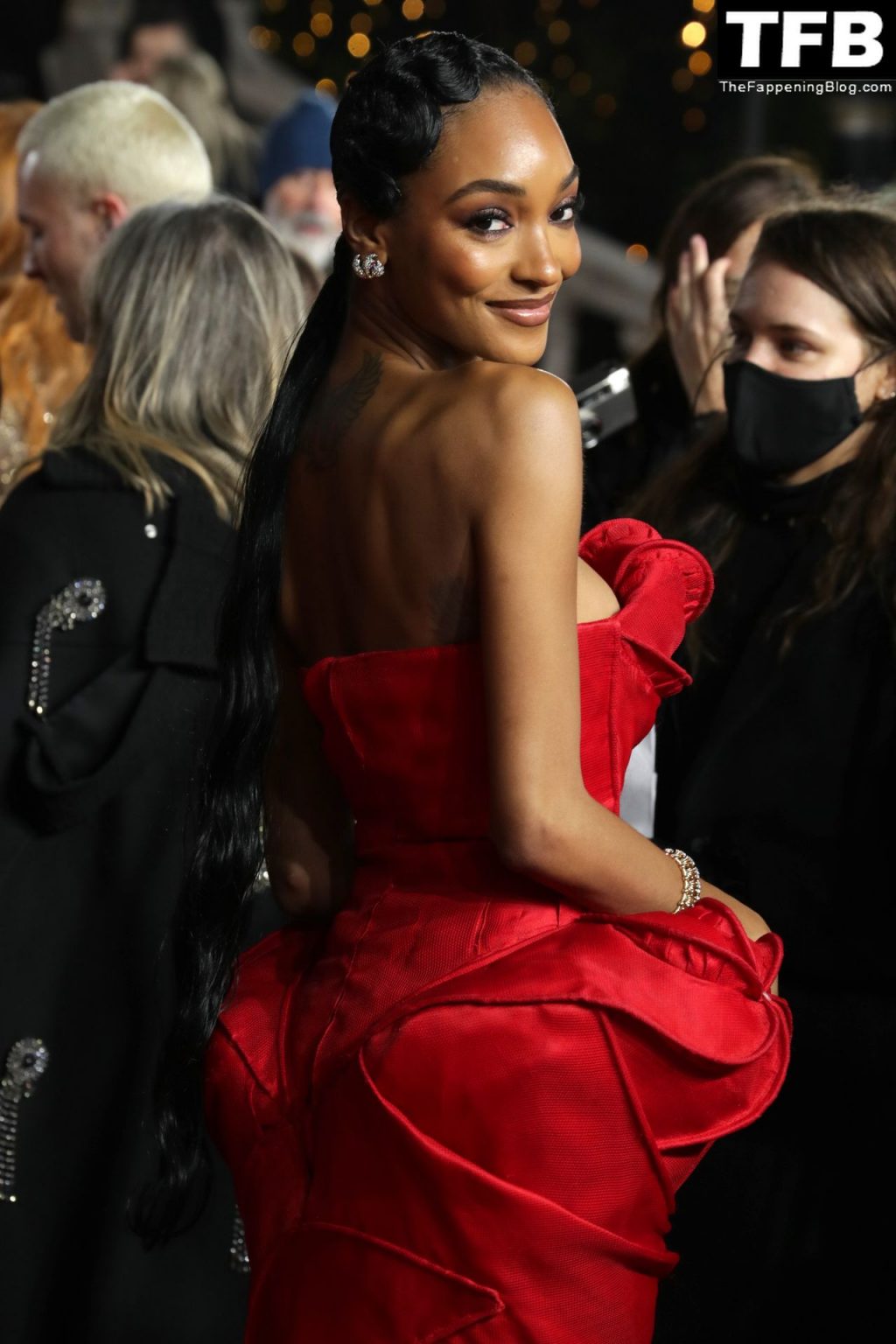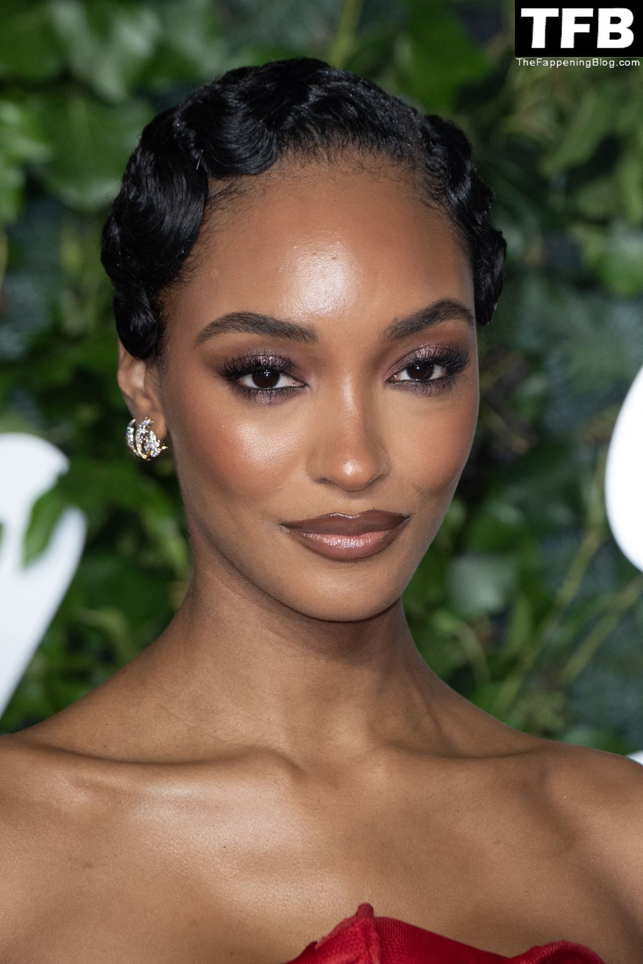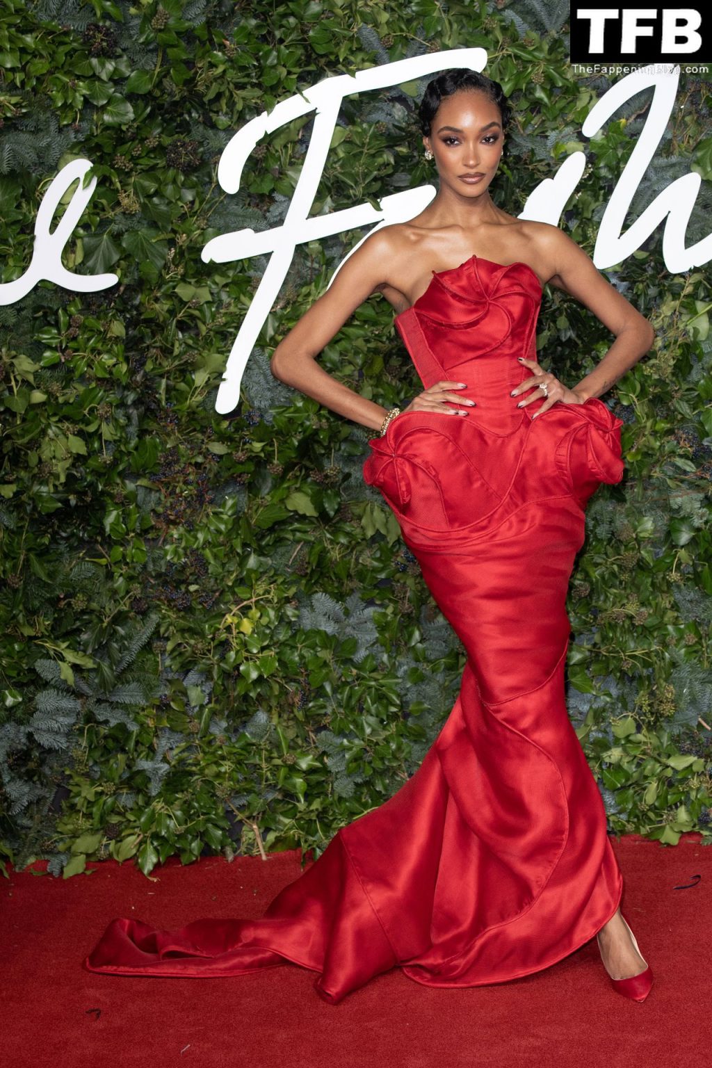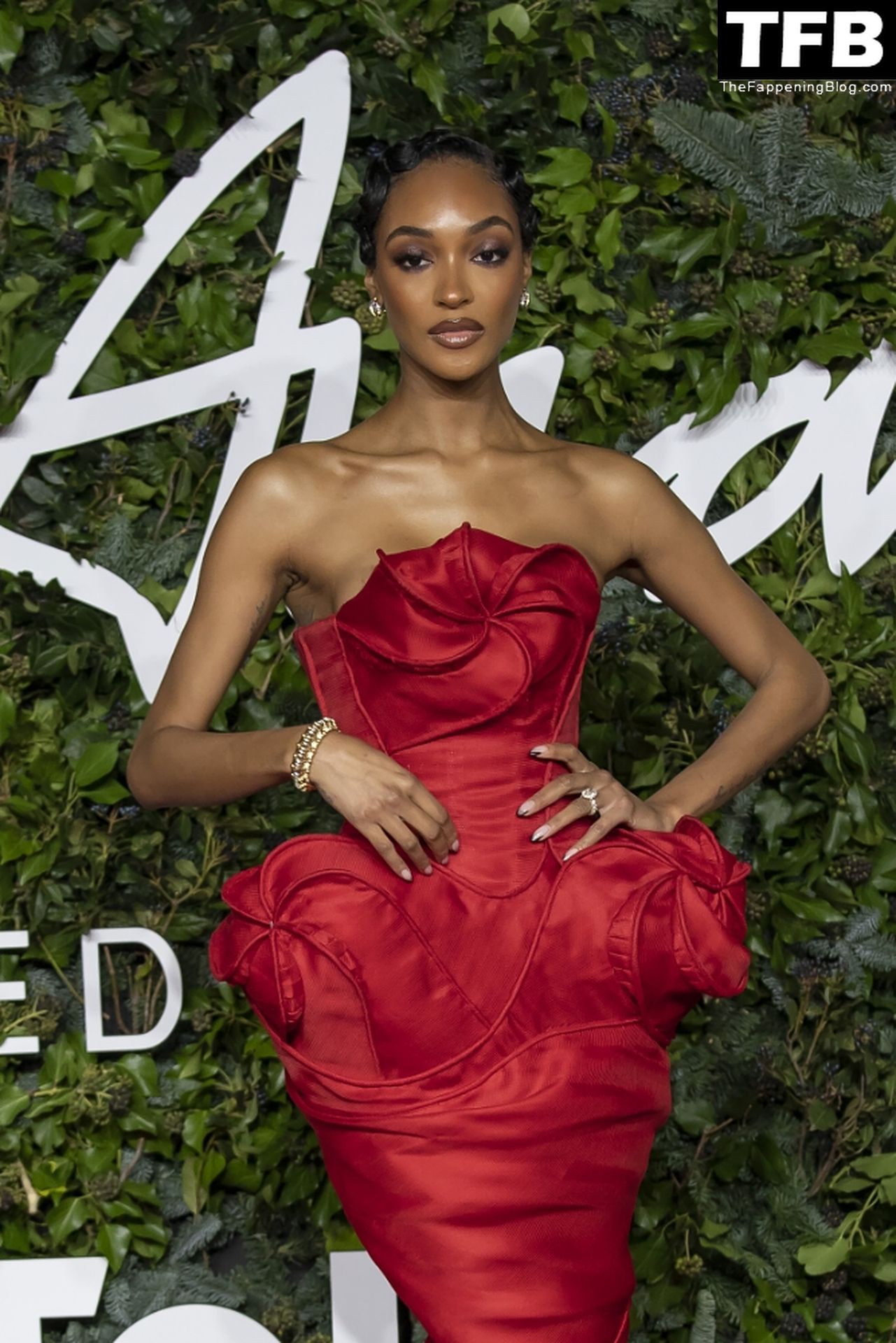Model Jourdan Dunn muestra sus pechos, vistiendo un vestido rojo mientras asiste a Los Premios de la Moda 2021 en el Royal Albert Hall en Londres, 29/11/2021.
