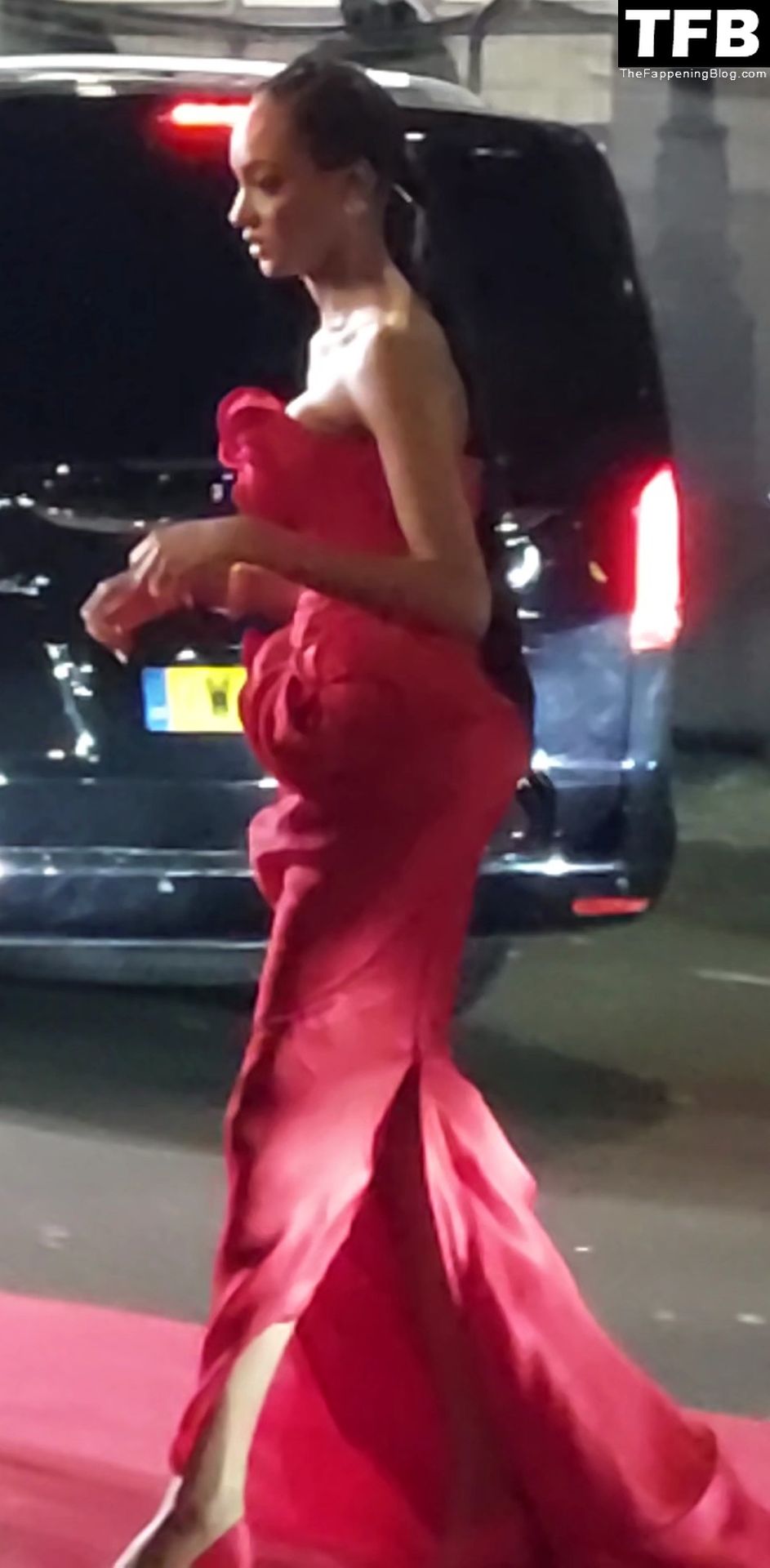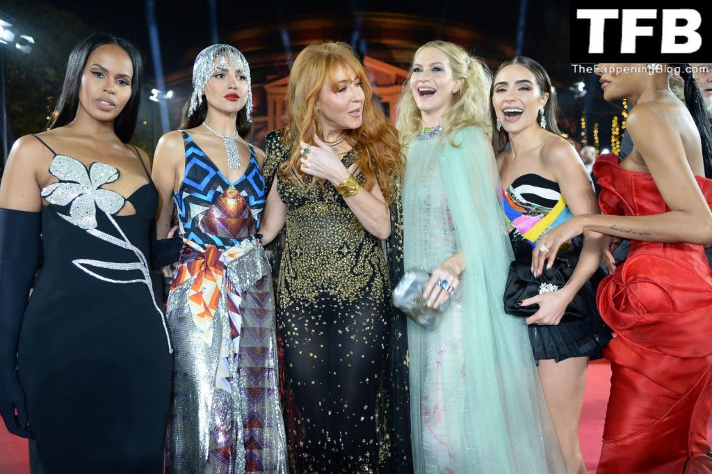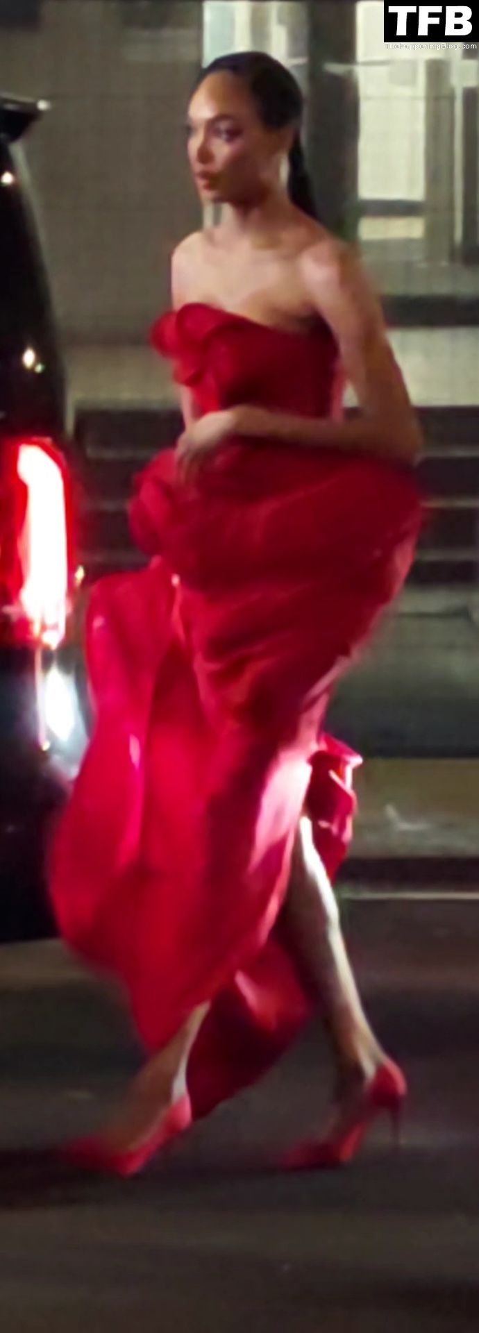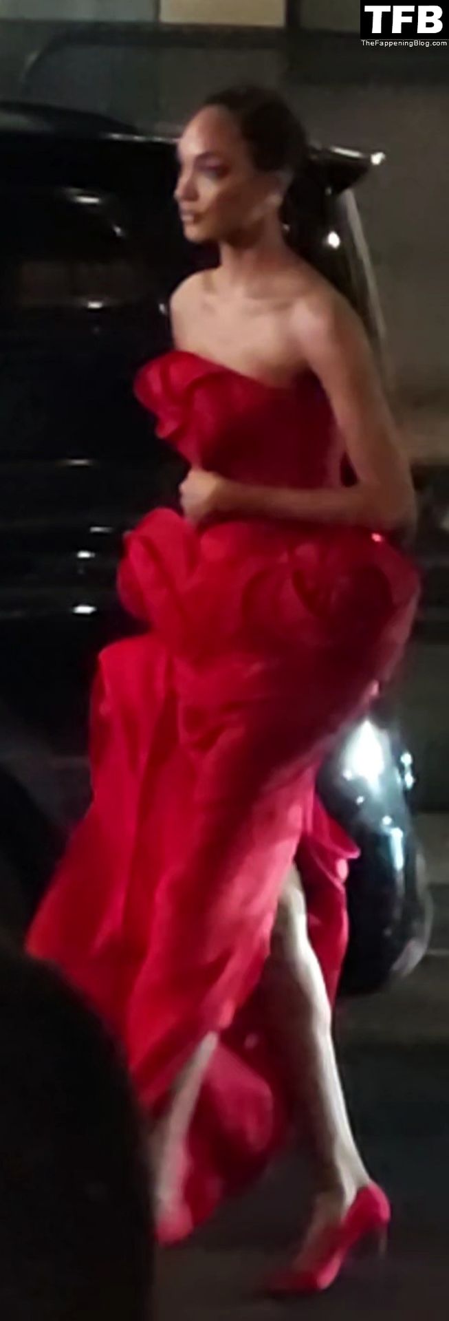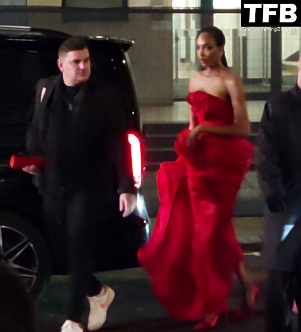 Model Jourdan Dunn muestra sus pechos, vistiendo un vestido rojo mientras asiste a Los Premios de la Moda 2021 en el Royal Albert Hall en Londres, 29/11/2021.