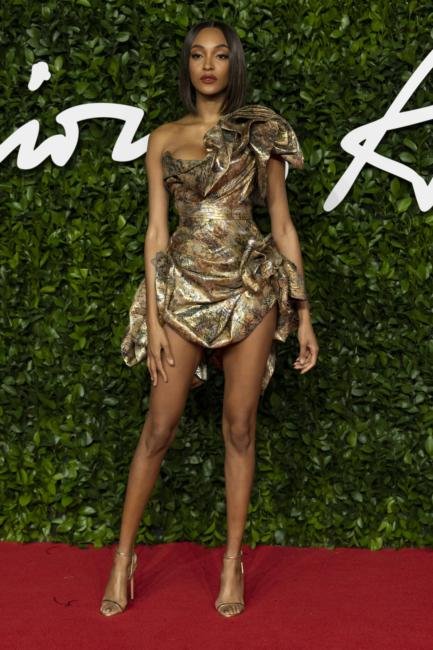 La modelo de piernas largas Jourdan Dunn fue fotografiada en la alfombra roja mientras asistía a los Premios de la Moda en el Royal Albert Hall, Londres, 12/02/2019.