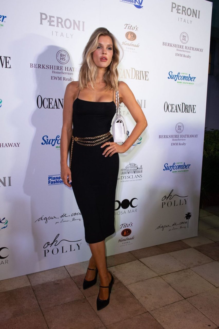 Joy Corrigan se ve en la fiesta anual de lanzamiento de la edición de trajes de baño de la revista Ocean Drive que da inicio a la Miami Swim Week, organizada por la modelo brasileña Isabeli Fontana en el Hotel Kimpton Surfcomber en South Beach, 12/07/2019.