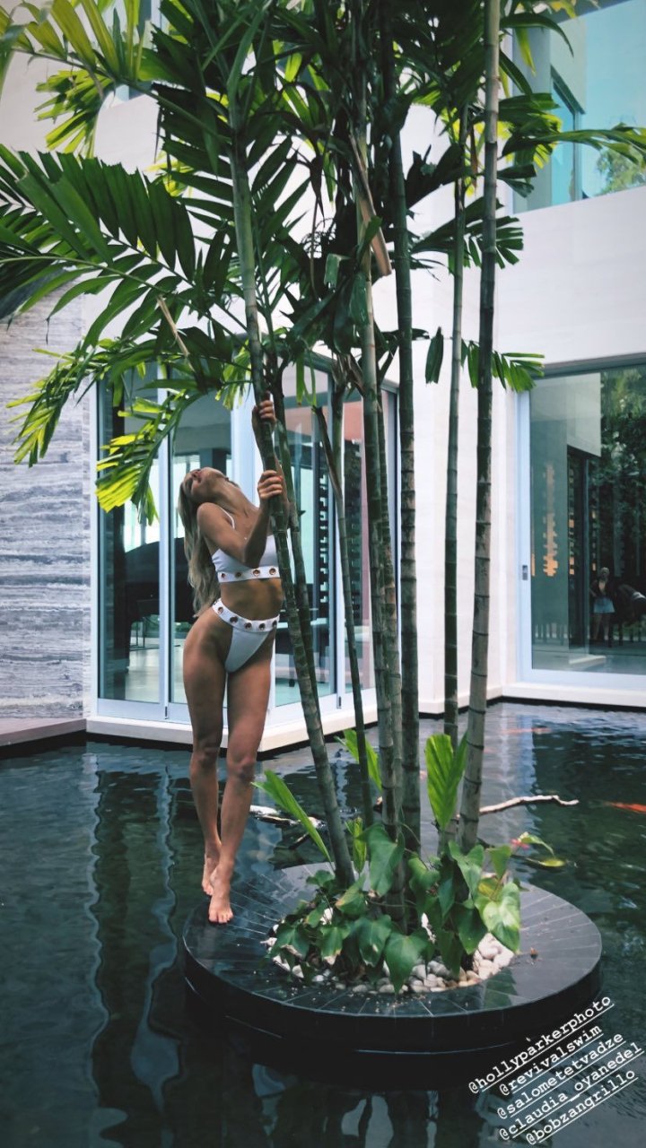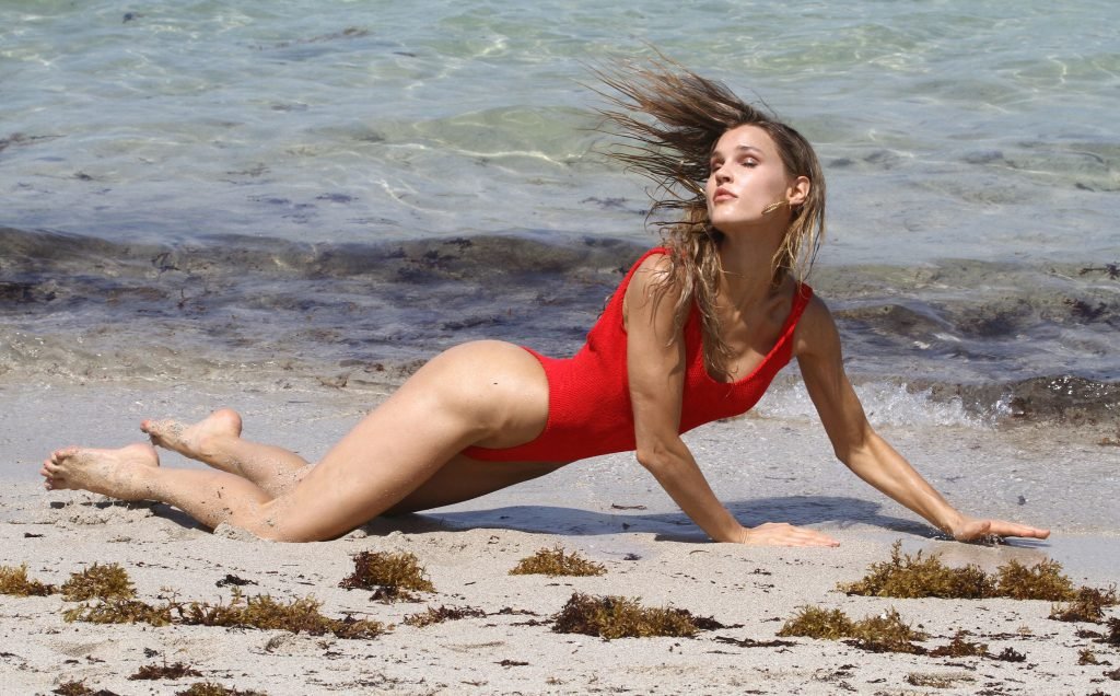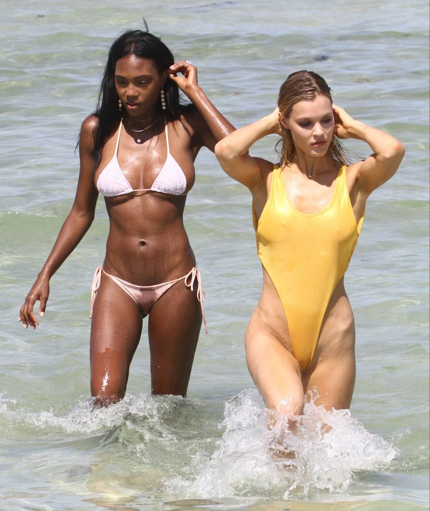 La modelo estadounidense Joy Corrigan es vista durante una sesión de fotos para Revival swimwear en Miami Beach, 13/07/2018. La estrella de Playboy de 23 años participó en una sesión de fotos espontánea y no dudó ante las miradas curiosas.