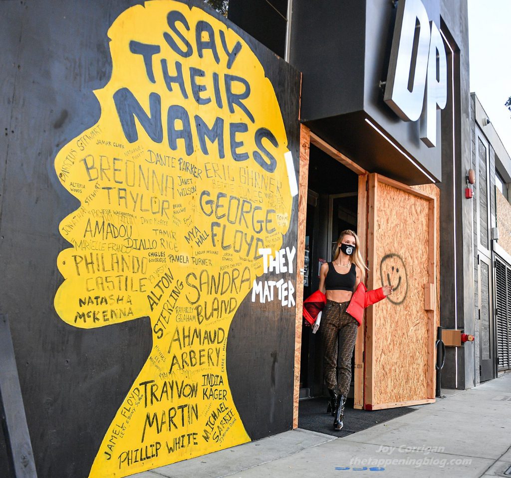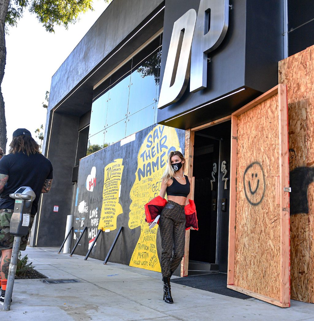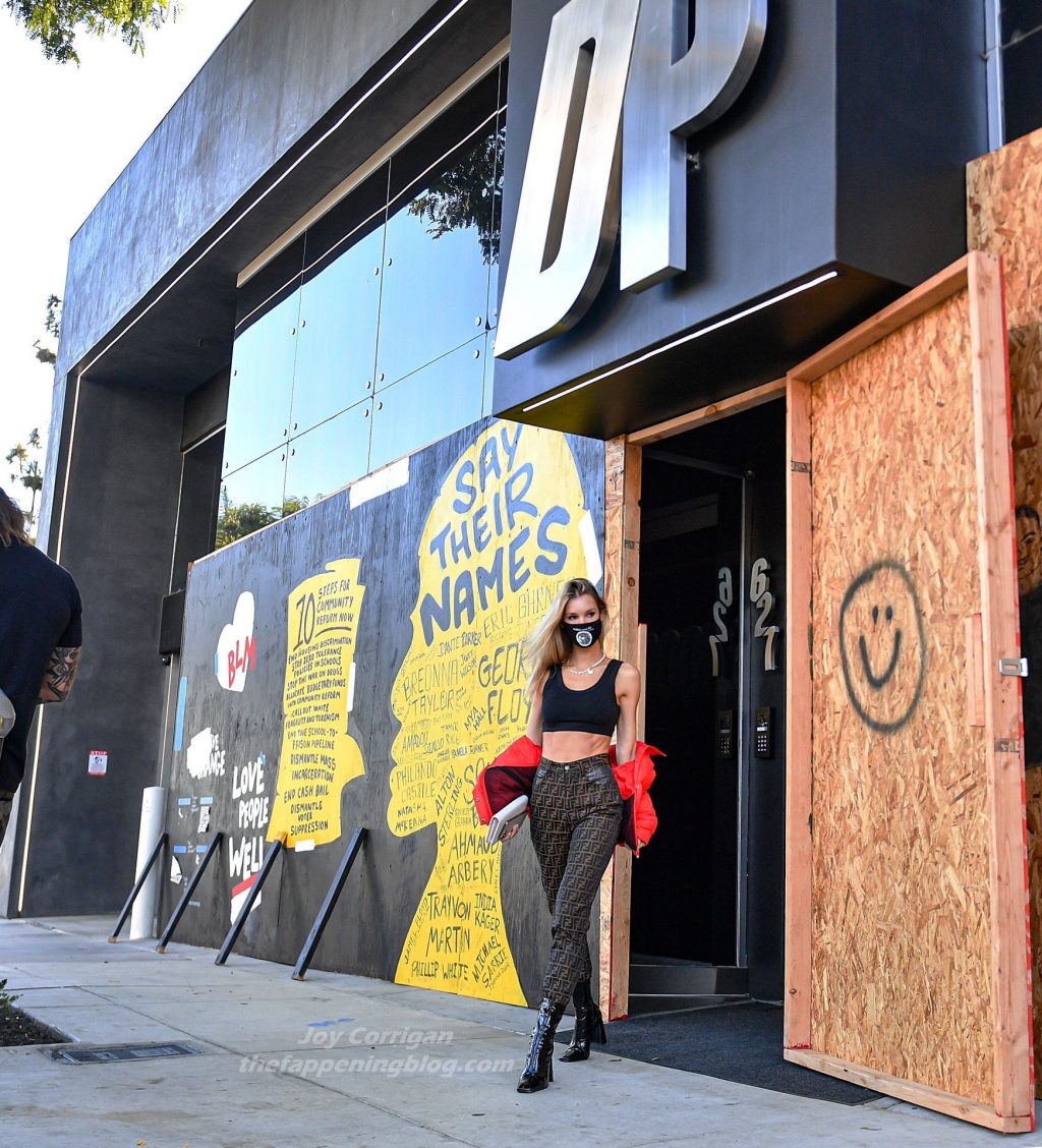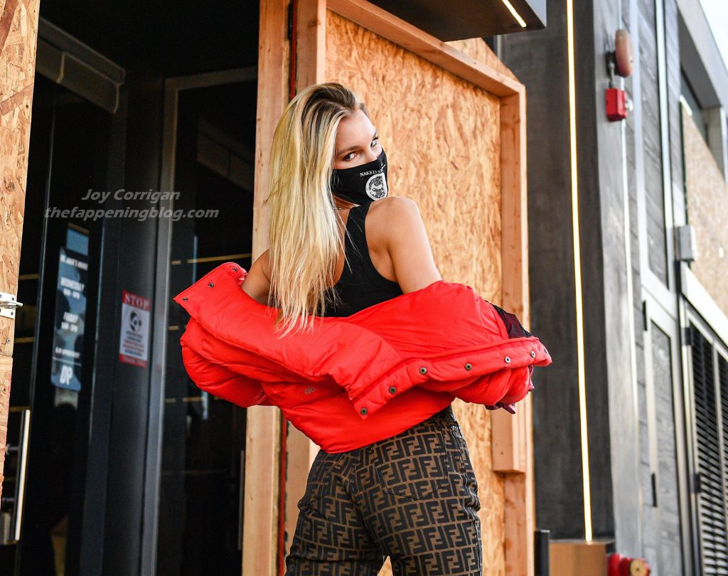 La estrella de The Fappening y modelo Joy Corrigan es vista con estilo mientras sale del DogPound Gym tras un intenso entrenamiento privado en West Hollywood, 18/11/2020.