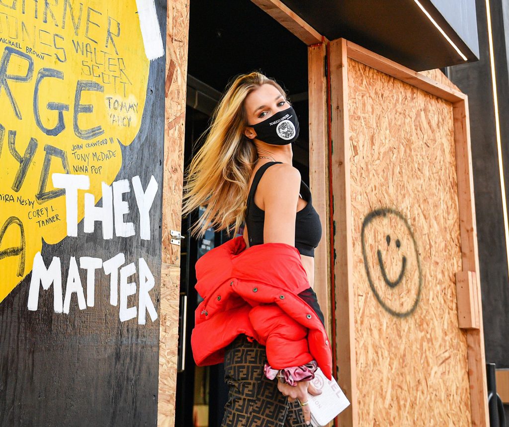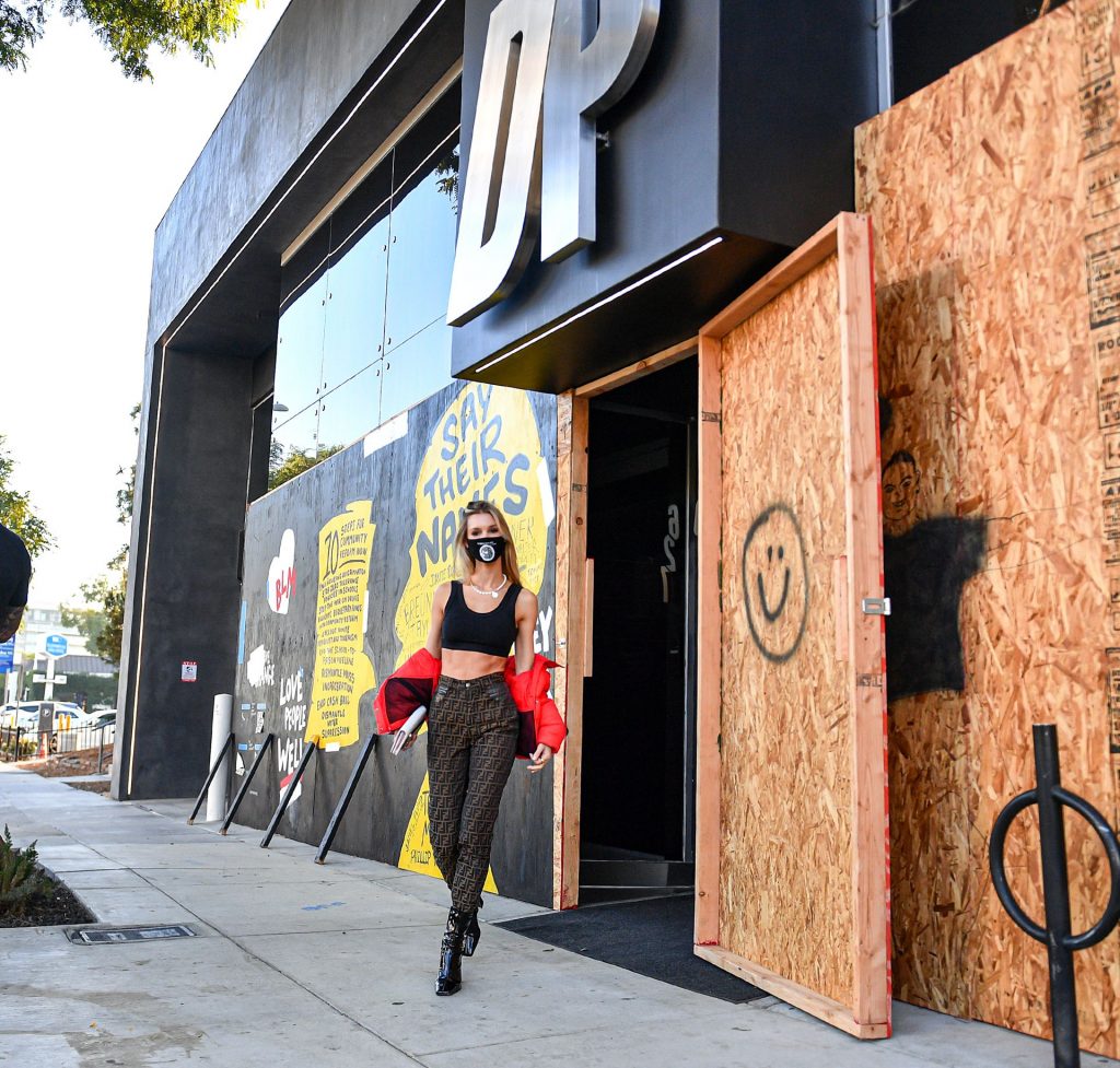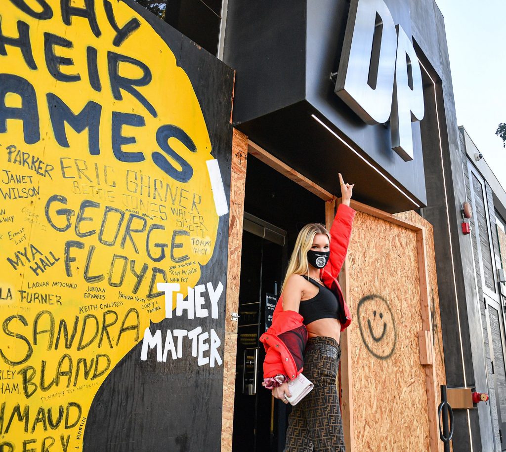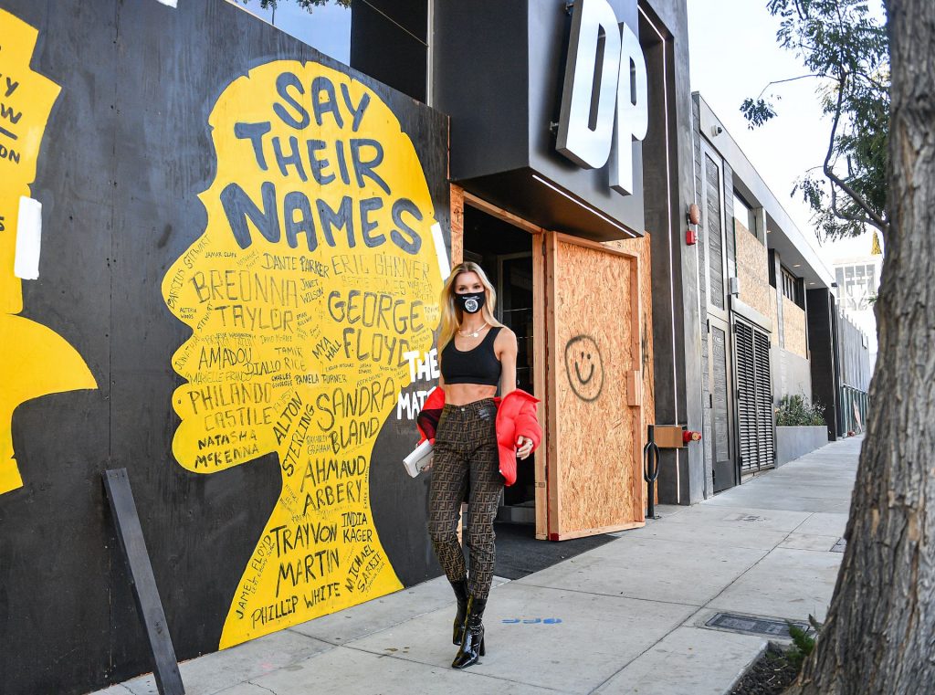 La estrella de The Fappening y modelo Joy Corrigan es vista con estilo mientras sale del DogPound Gym tras un intenso entrenamiento privado en West Hollywood, 18/11/2020.