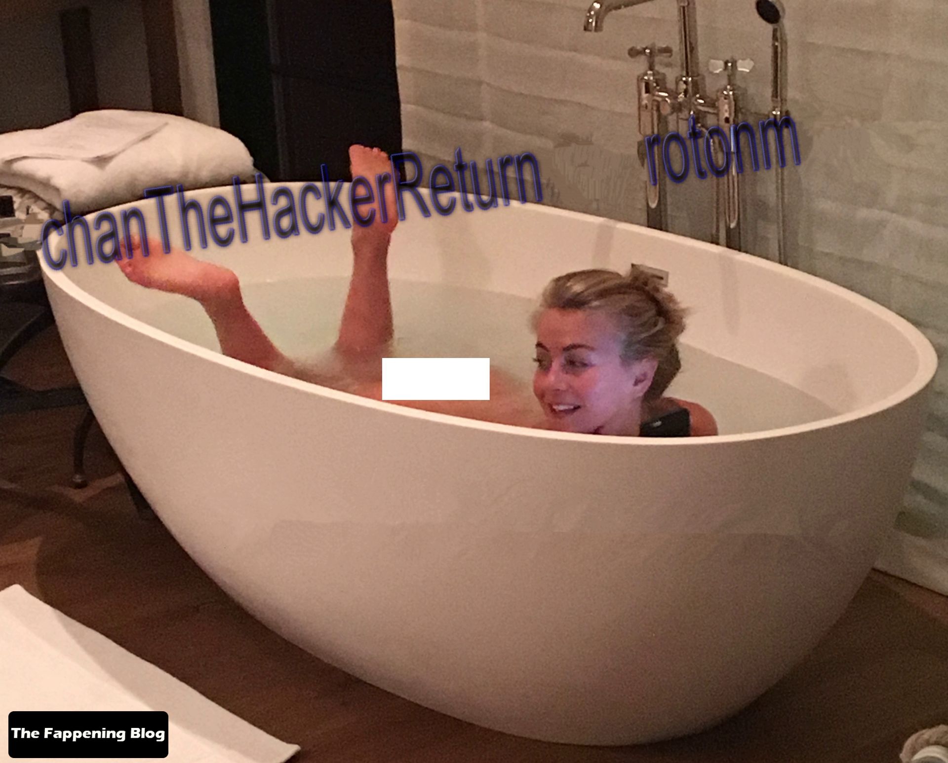 Julianne Hough está en una nueva colección de fotos de vista previa filtradas de The Fappening. La bailarina/actriz se baña y posa desnuda en su cama.