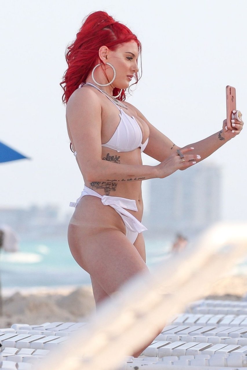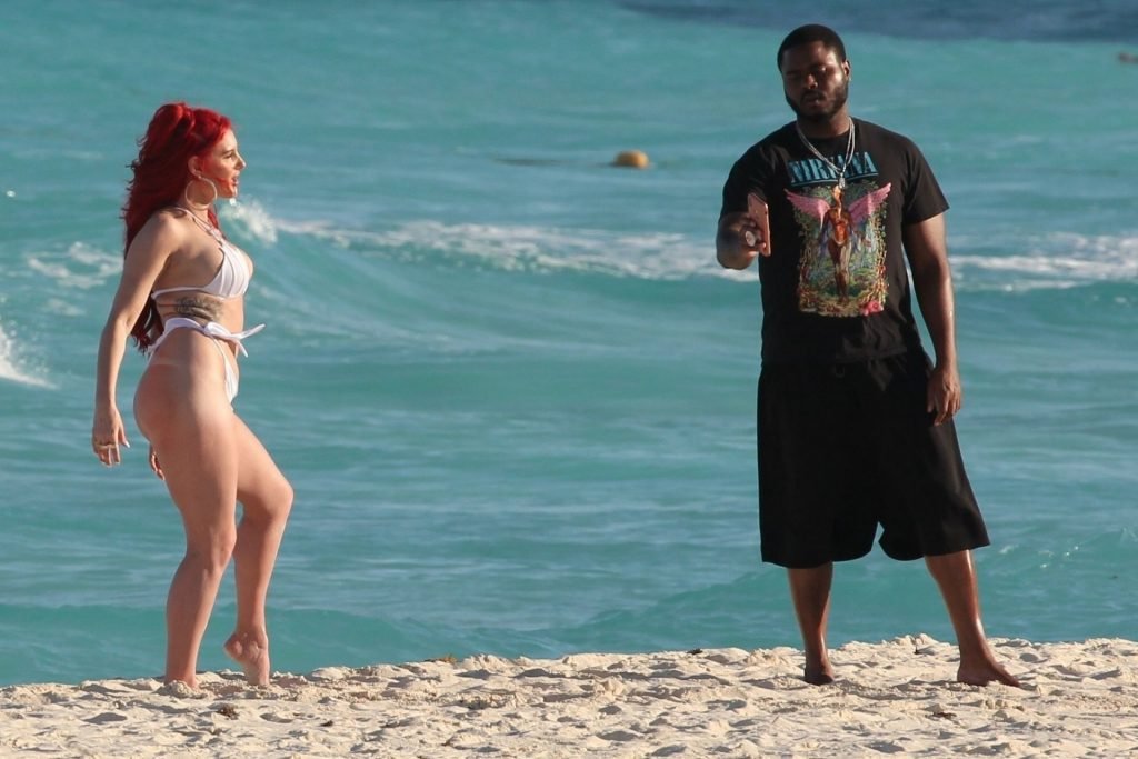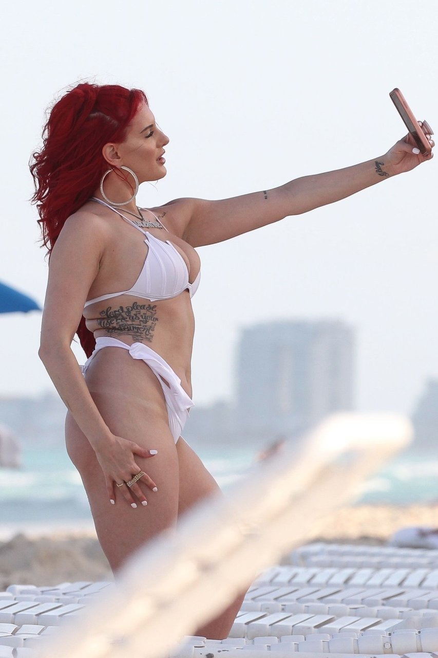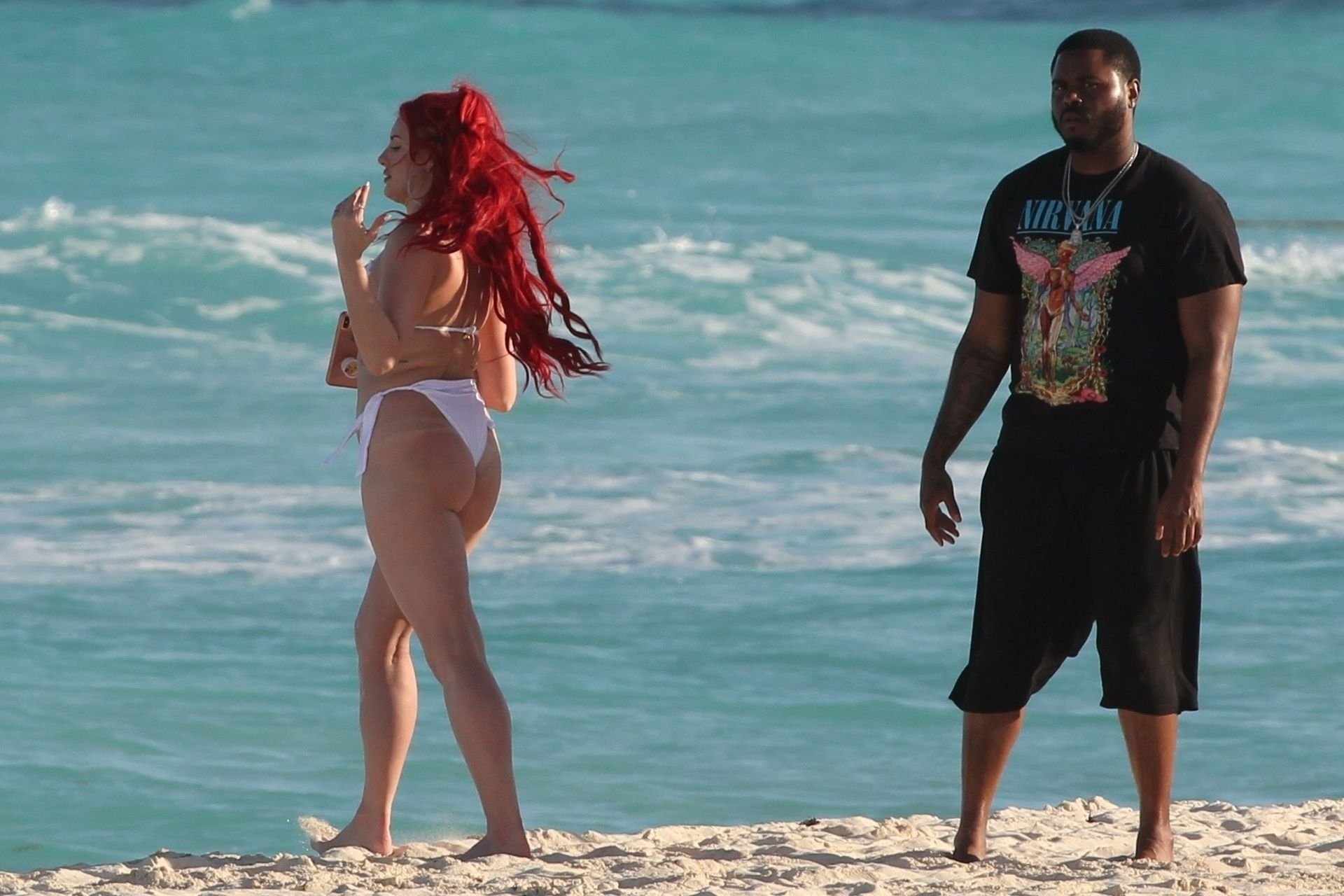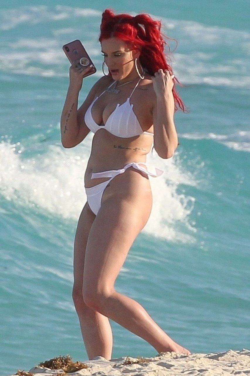 MTV “Wild ‘N Out” estrella, la voluptuosa Justina Valentine está en Cancún disfrutando de MTV Spring Break con un misterioso acompañante, 20/03/2019. La rapera pelirroja comparte algunos momentos íntimos en la playa con su pareja antes de usar su teléfono para grabar sus vacaciones para que sus fans las vean.