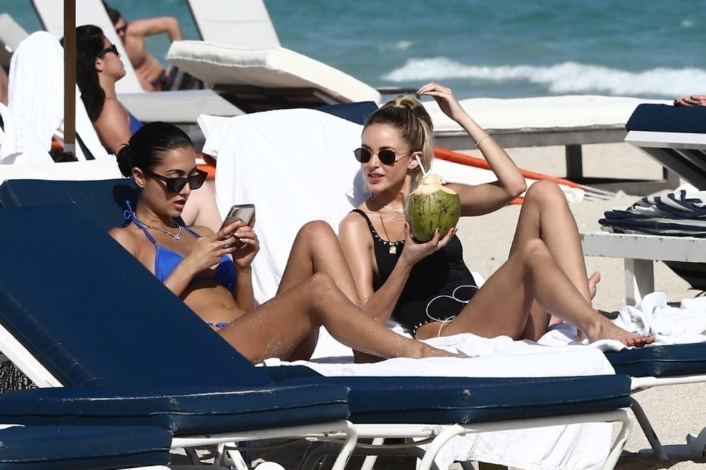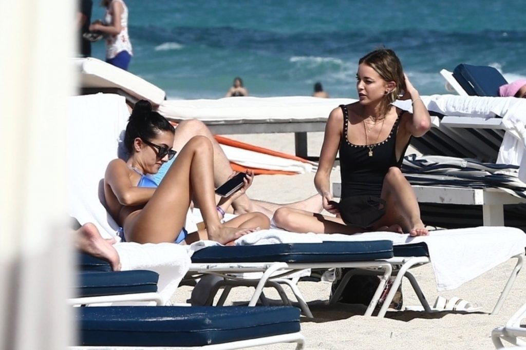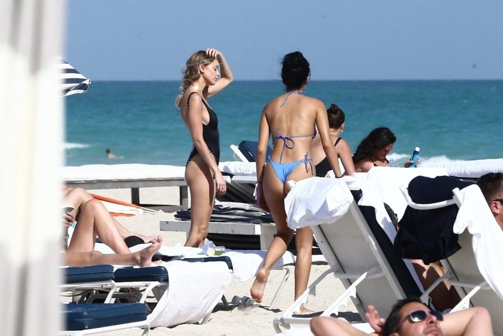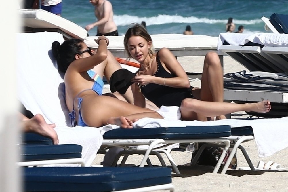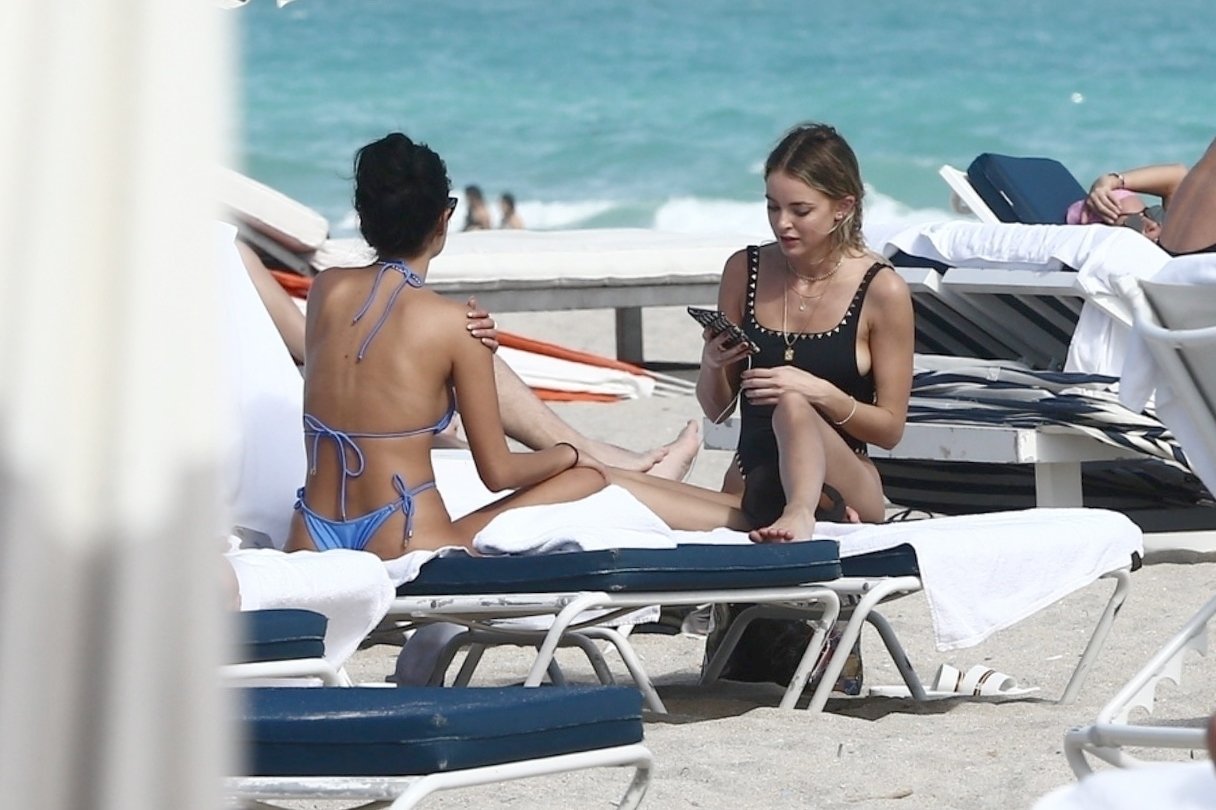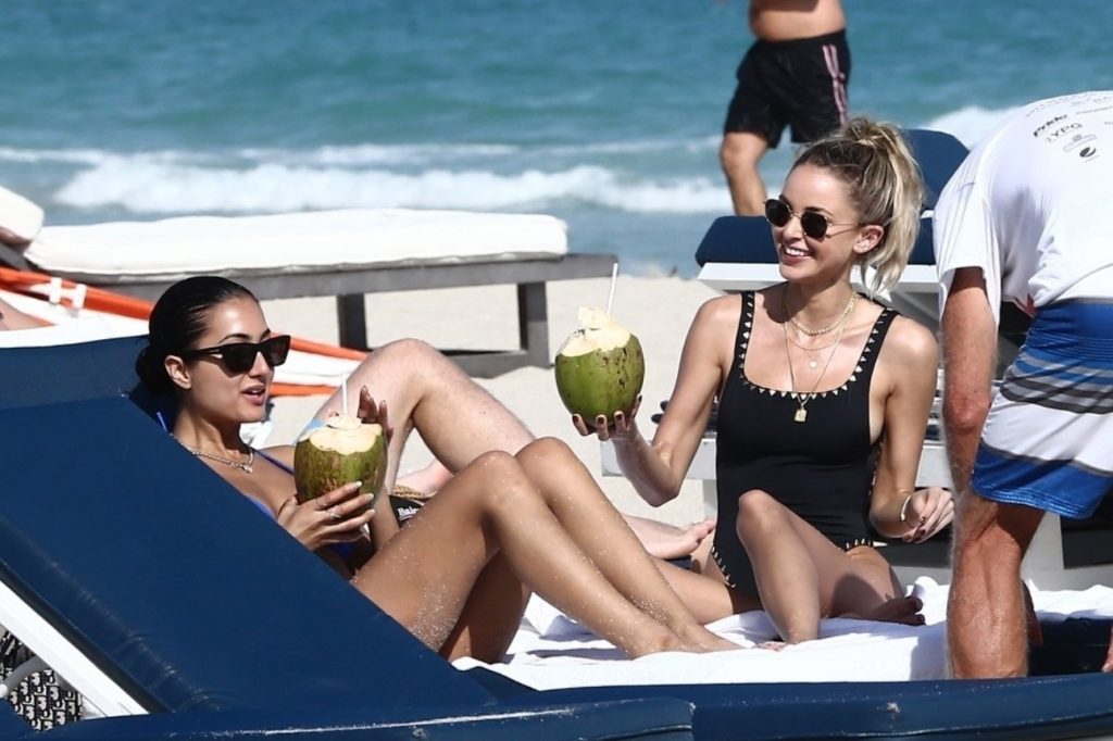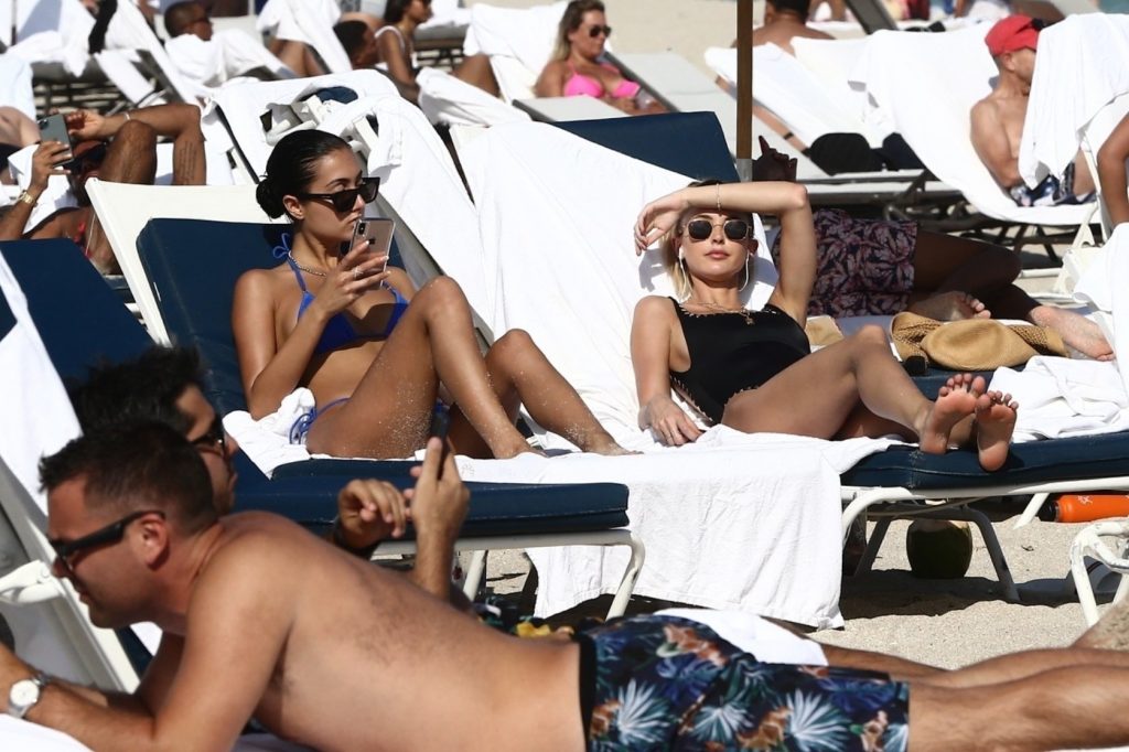 Personalidad de las redes sociales Kaitlynn Carter disfruta de un día en la playa con Racquel Natasha durante Art Basel en Miami, 10/12/2019.