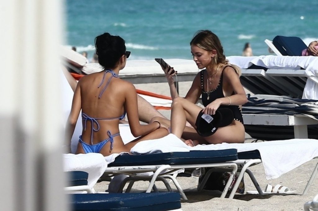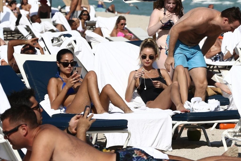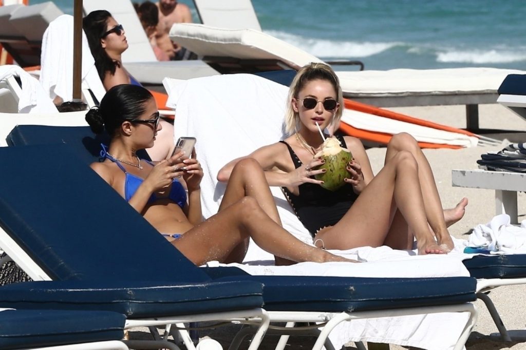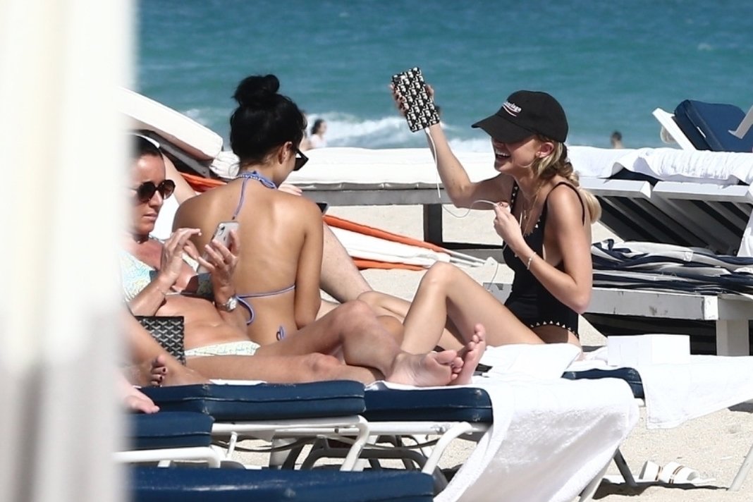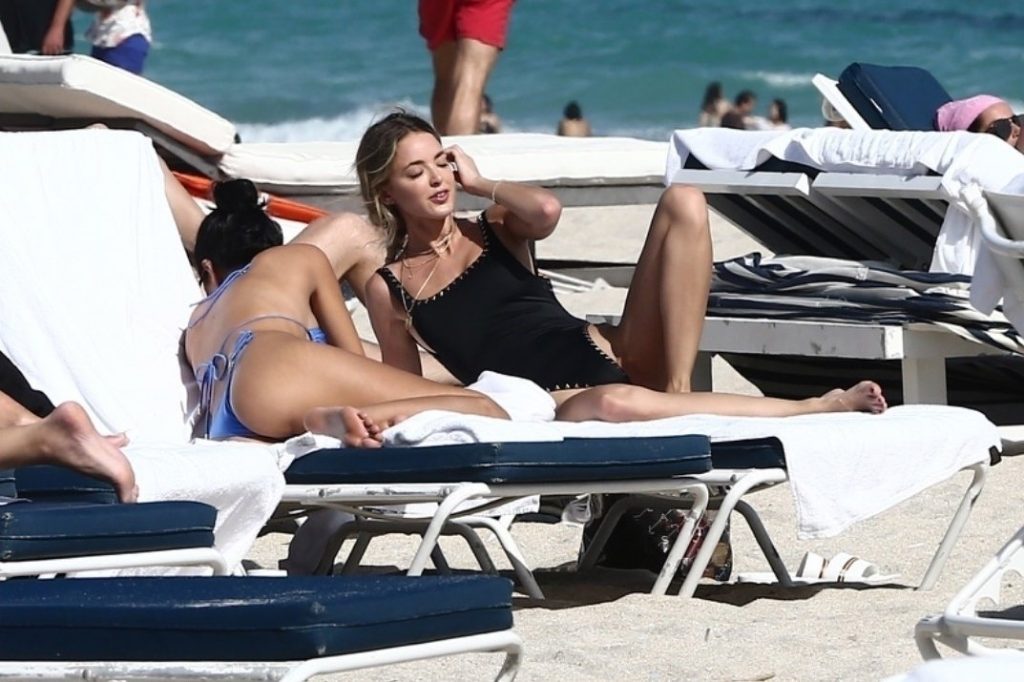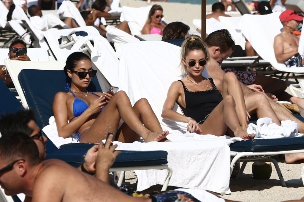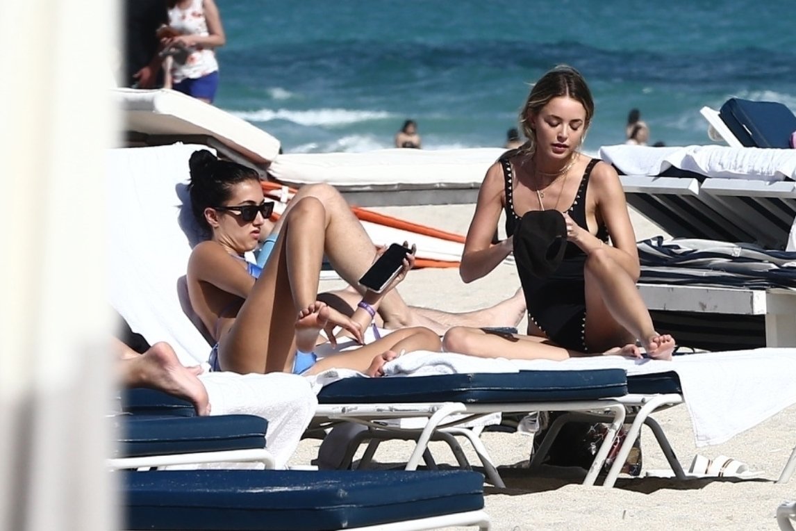 Personalidad de las redes sociales Kaitlynn Carter disfruta de un día en la playa con Racquel Natasha durante Art Basel en Miami, 10/12/2019.