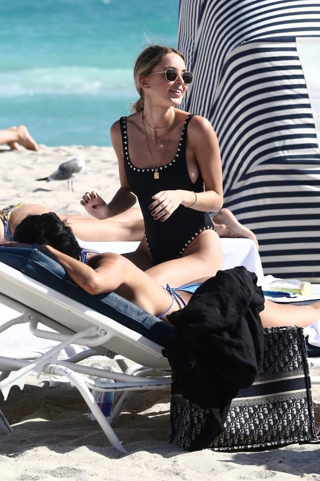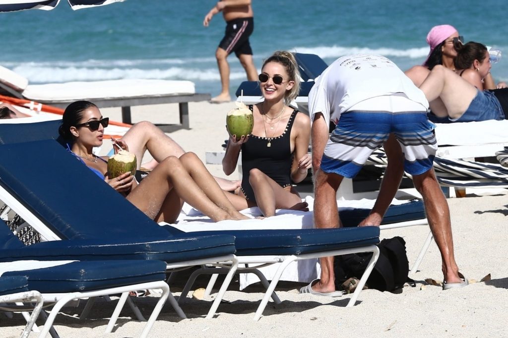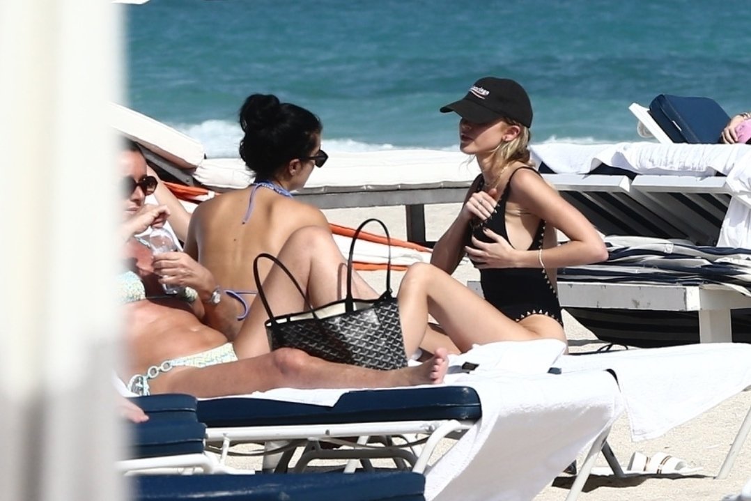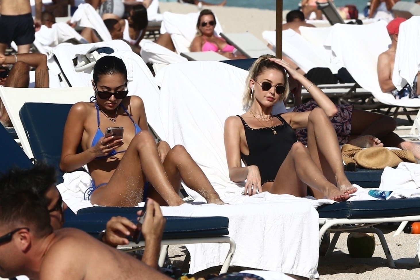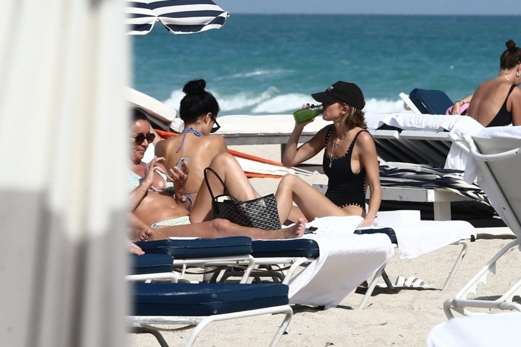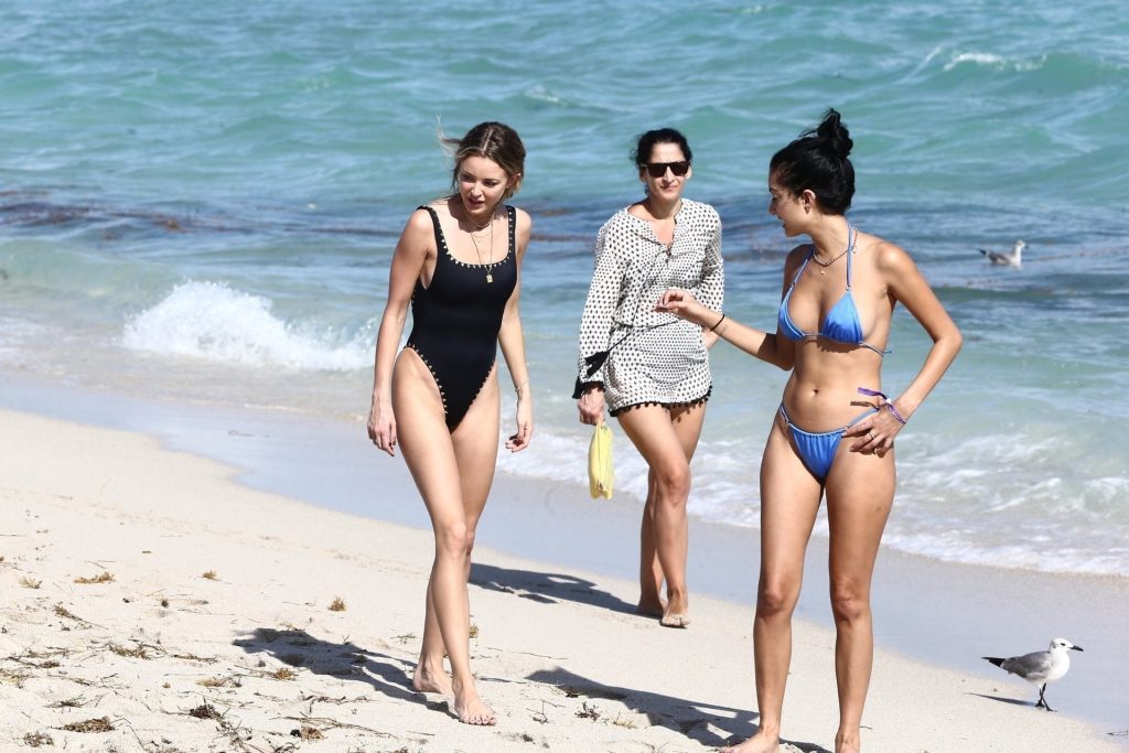 Personalidad de las redes sociales Kaitlynn Carter disfruta de un día en la playa con Racquel Natasha durante Art Basel en Miami, 10/12/2019.