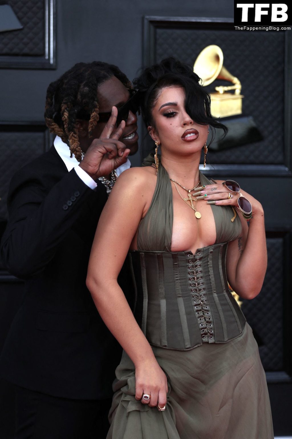 Cantante Kali Uchis posa en la alfombra roja en la 64ª Entrega Anual de los Premios Grammy en el MGM Grand Garden Arena en Las Vegas, 03/04/2022.