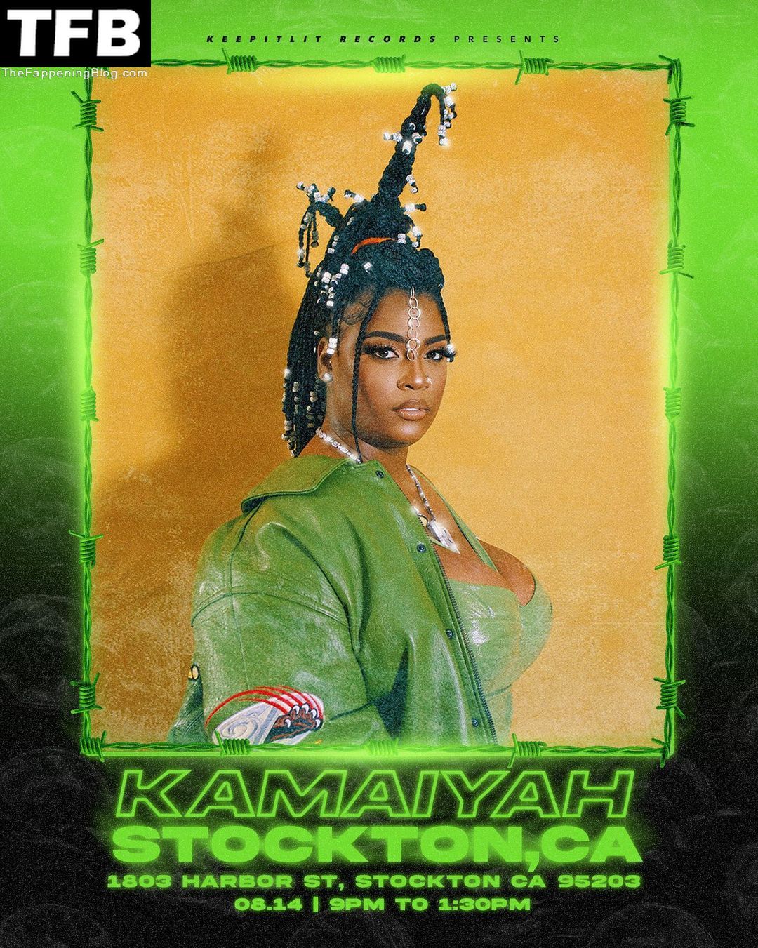Mira las fotos no desnudas de Kamaiyah de varios eventos y redes sociales, mostrando su cuerpo curvilíneo y sus enormes pechos sexys.