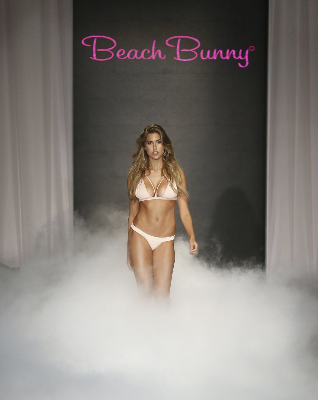 Otra modelo con curvas, Kara Del Toro, muestra la nueva colección Beach Bunny en Miami, 21/07/2017.