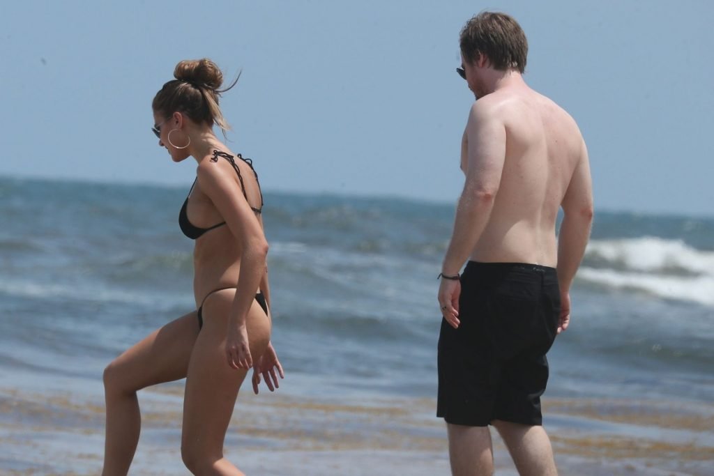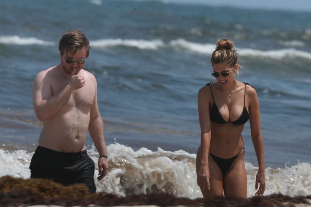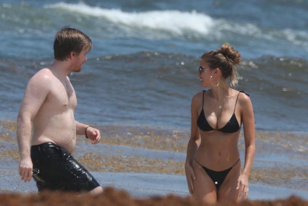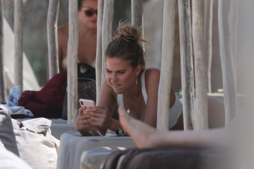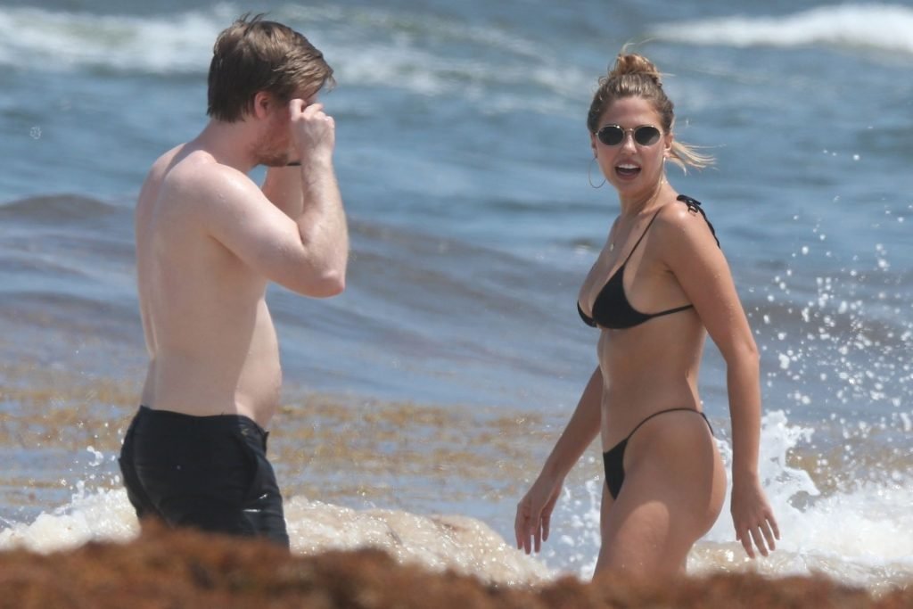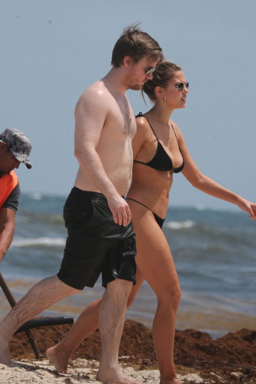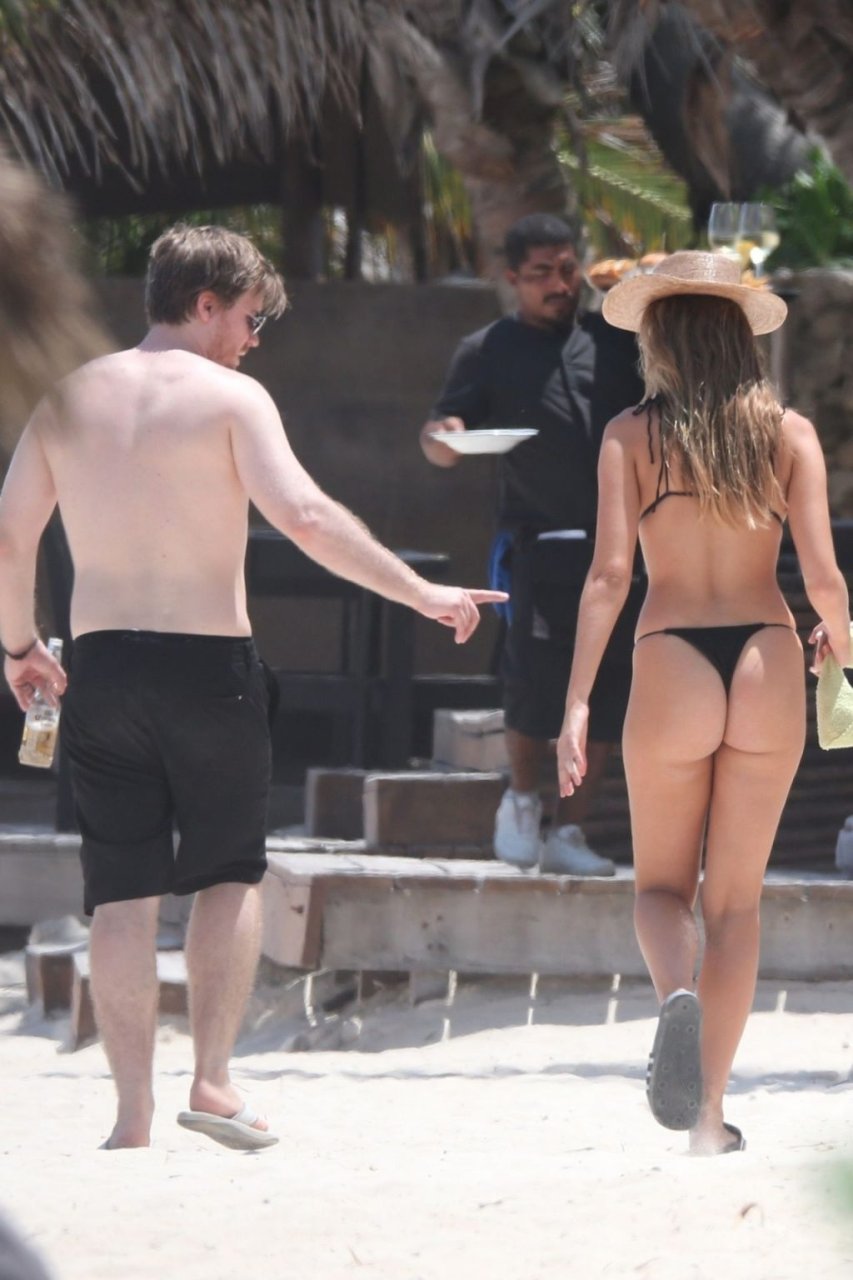 Model Kara Del Toro cambia su bikini a mediodía mientras disfruta de un día soleado en la playa con un acompañante masculino desconocido – Tulum, México, 03/05/2019.