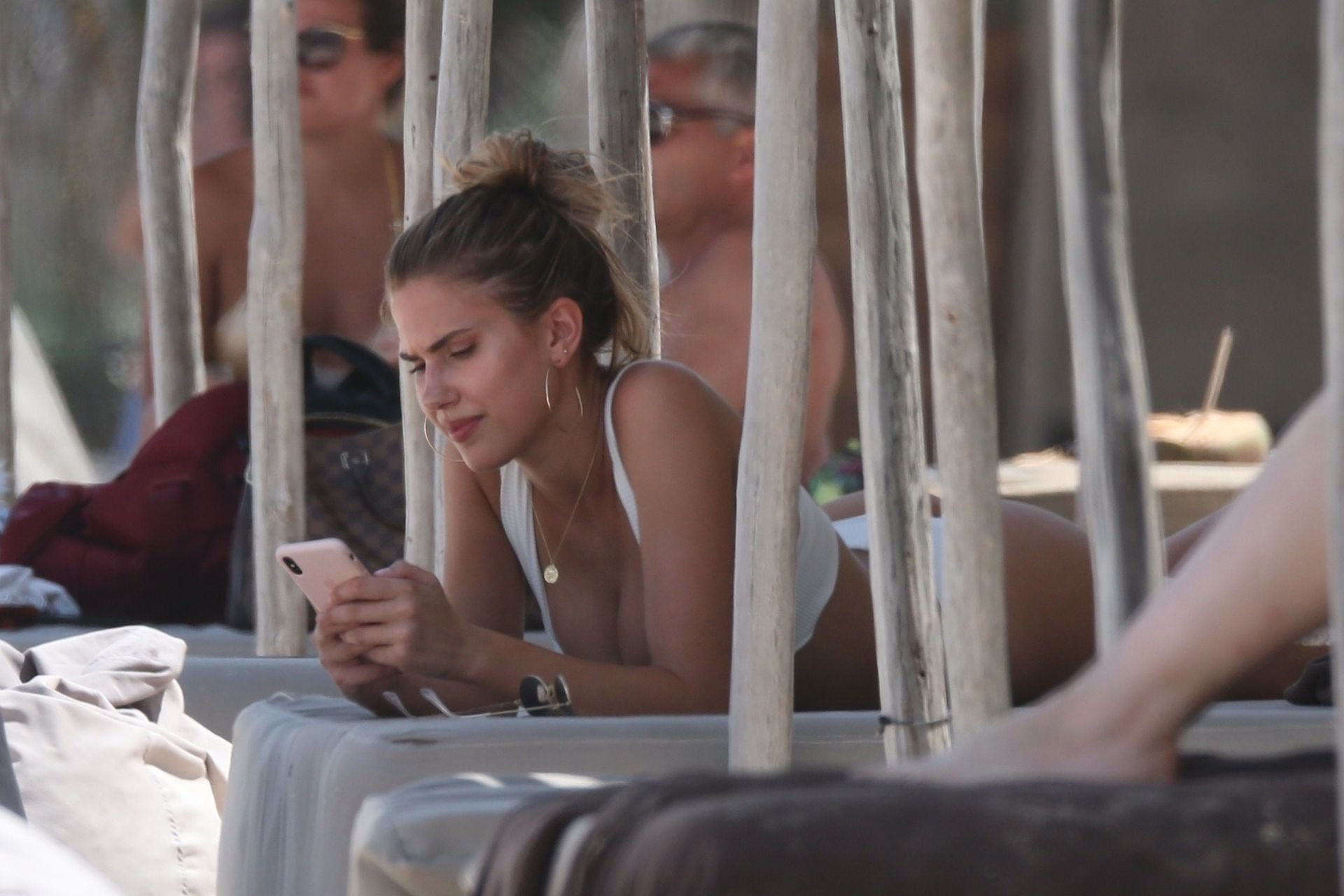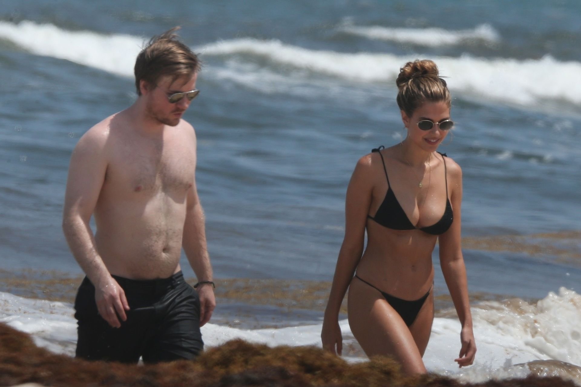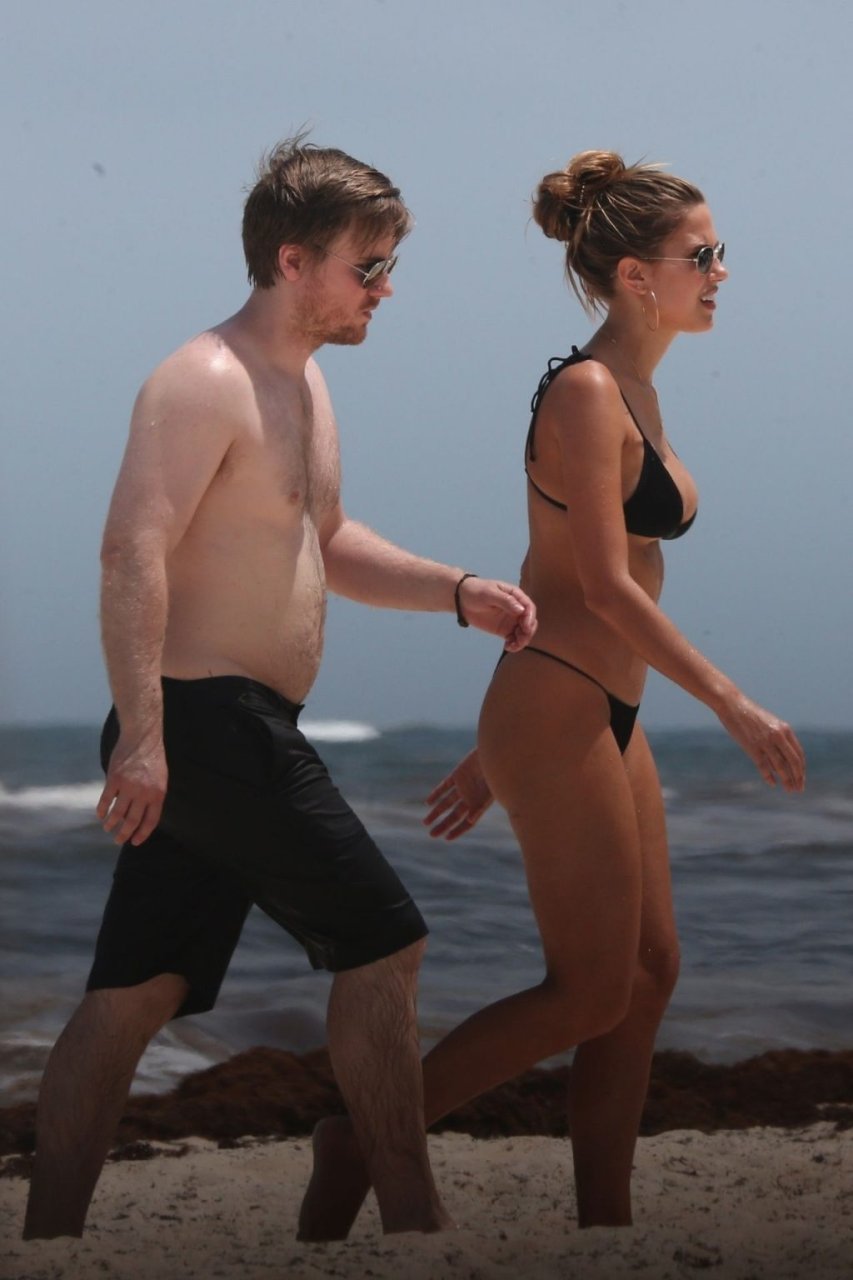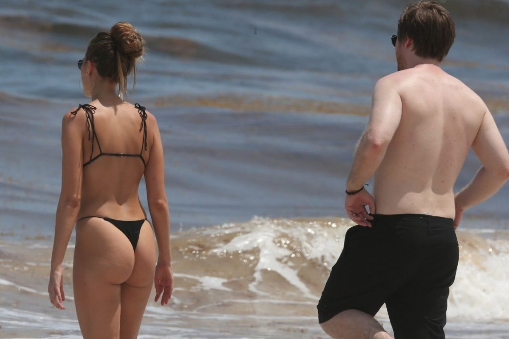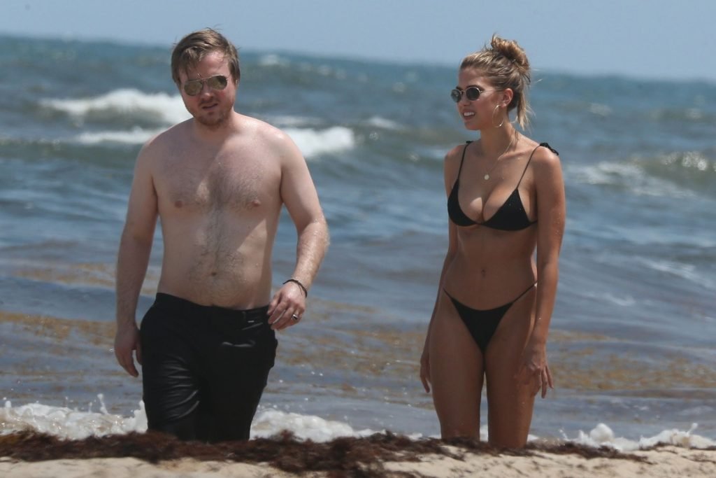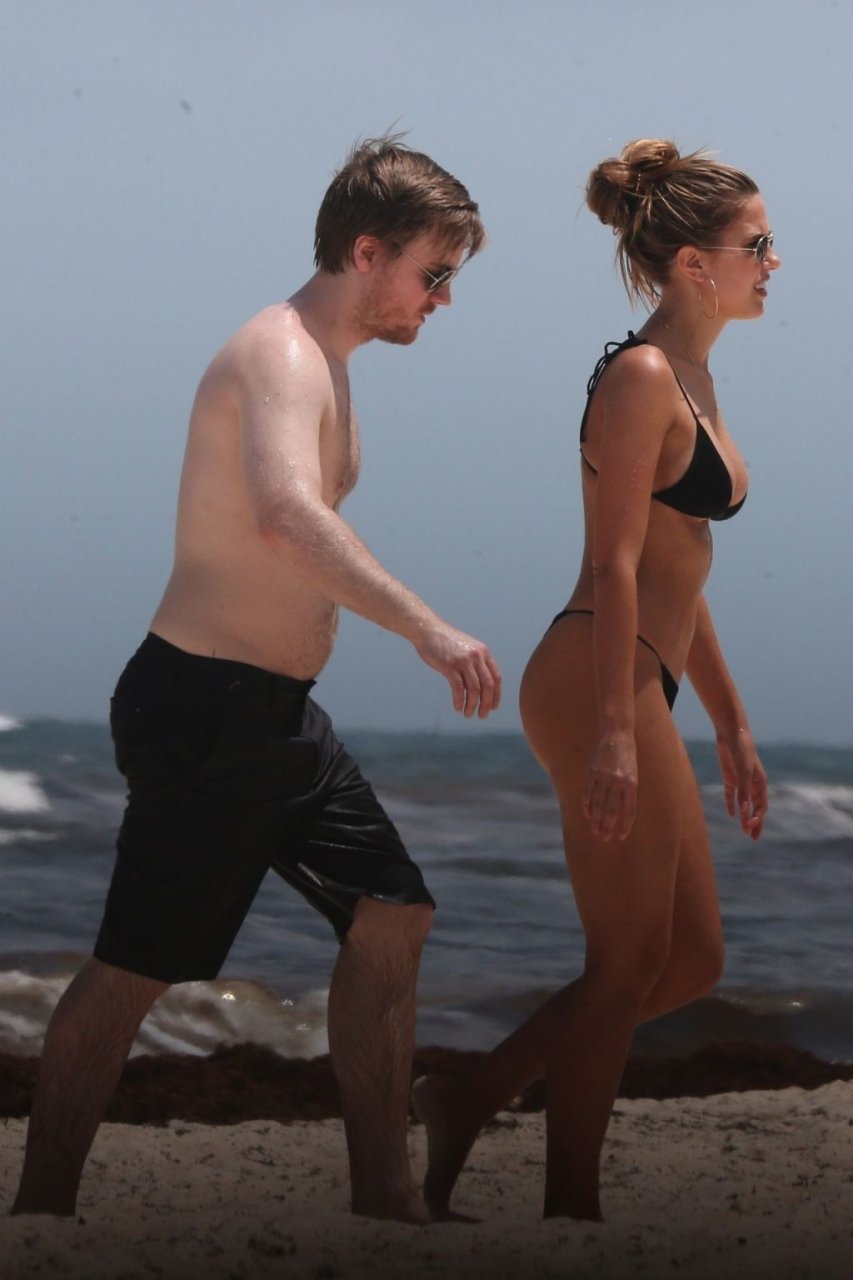 Model Kara Del Toro cambia su bikini a mediodía mientras disfruta de un día soleado en la playa con un acompañante masculino desconocido – Tulum, México, 03/05/2019.