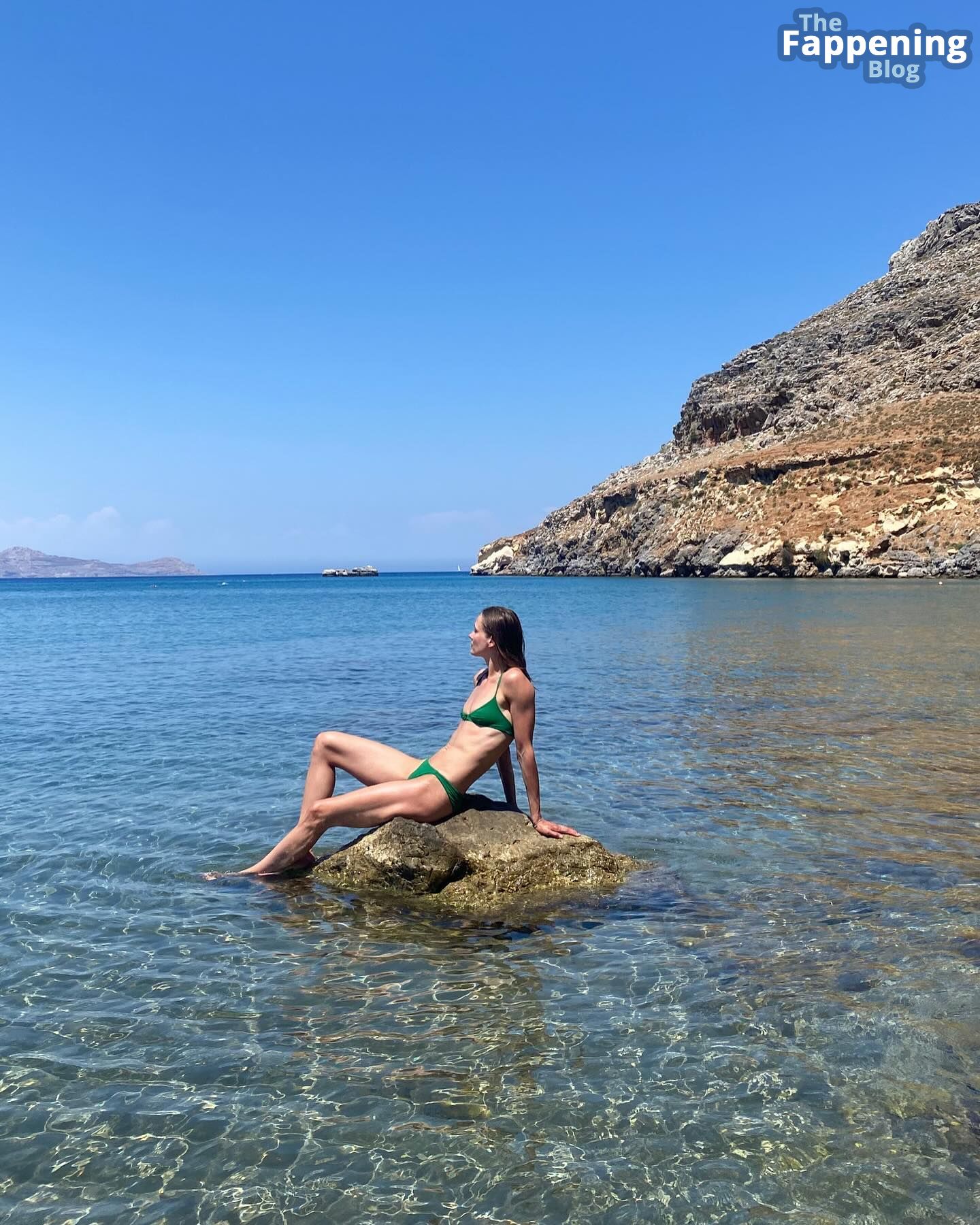 Para darse un chapuzón en el cálido Mediterráneo, Karmen lució un bikini verde revelador que mostró su increíble y delgada figura.