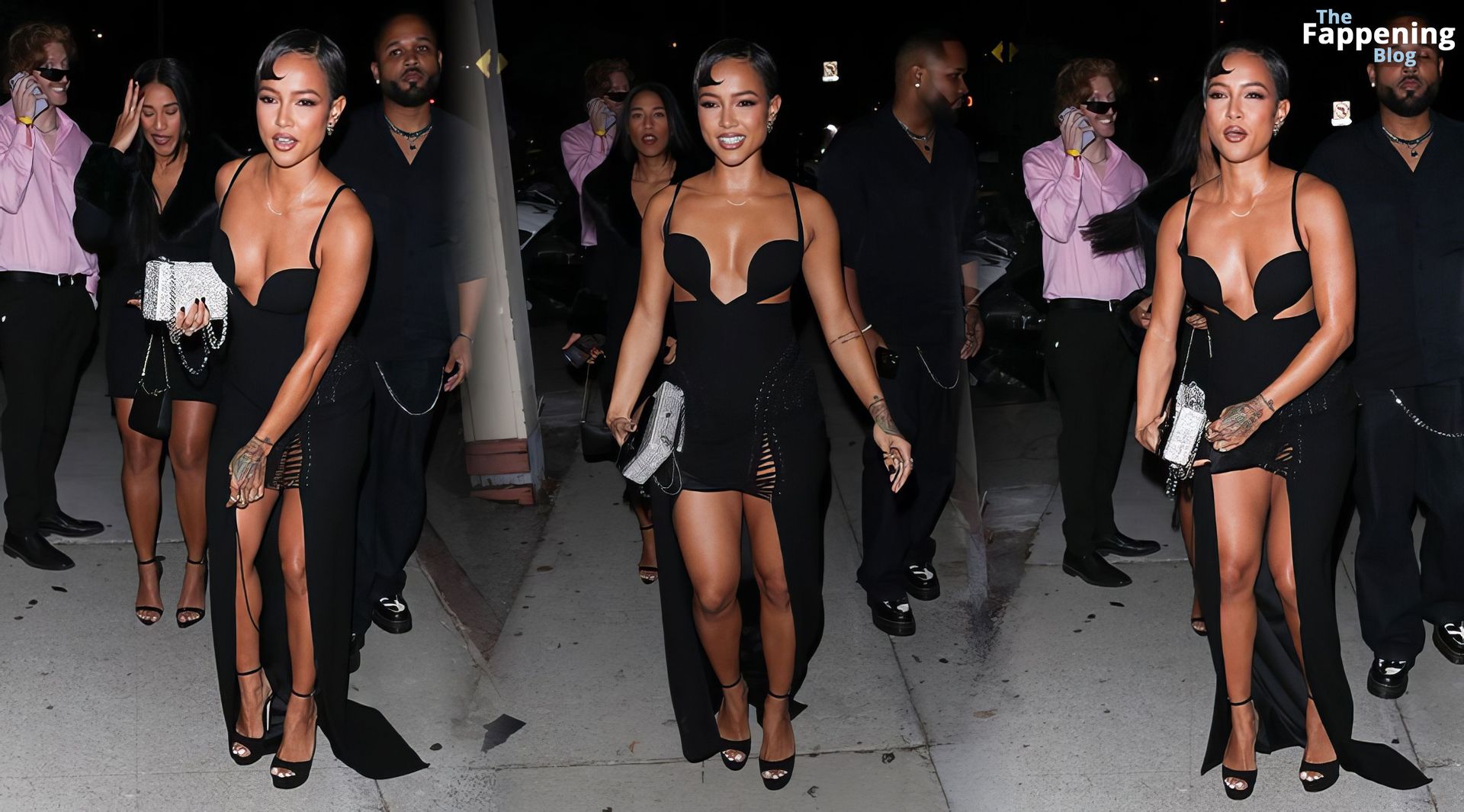 Prepárate para sumergirte en la jugosa escena de Hollywood con Karrueche Tran robando toda la atención, luciendo un vestido que redefine lo que significa ser audazmente elegante y mostrando su escote. ¡Es escandaloso, impresionante y pura magia de Hollywood!