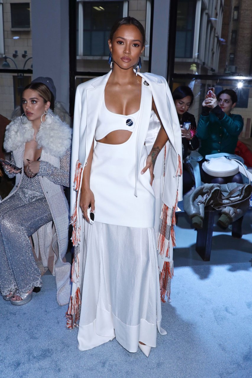Karrueche Tran mostró su escote luciendo un conjunto blanco en el desfile de otoño/invierno 2019 de 3.1 Phillip Lim durante la Semana de la Moda de Nueva York, 11/02/2019.
