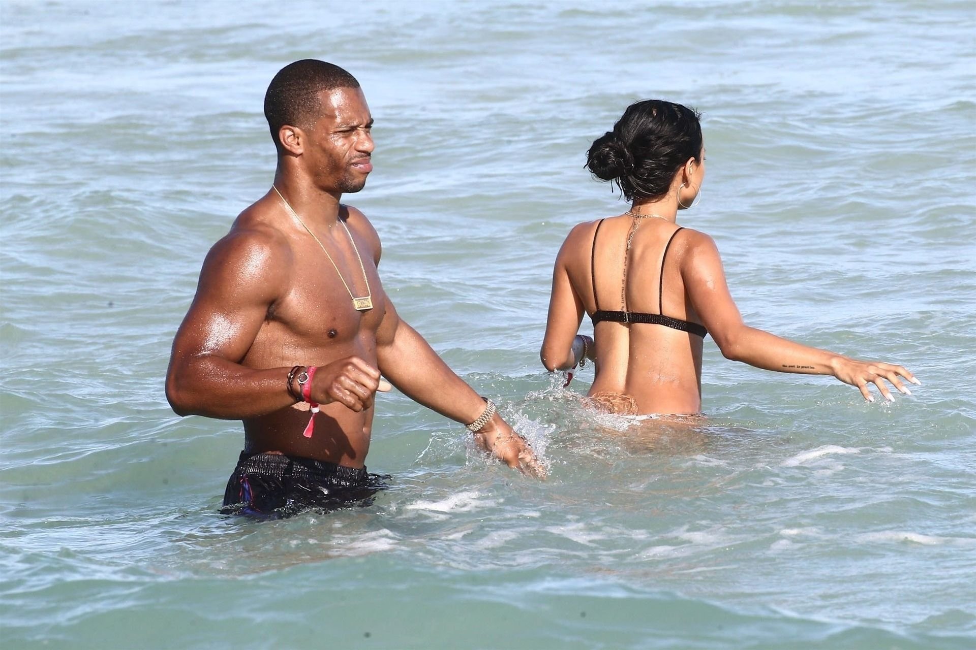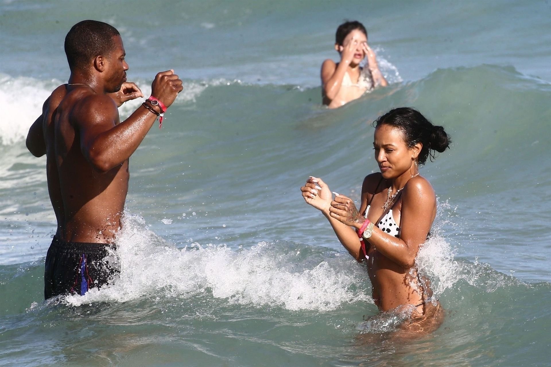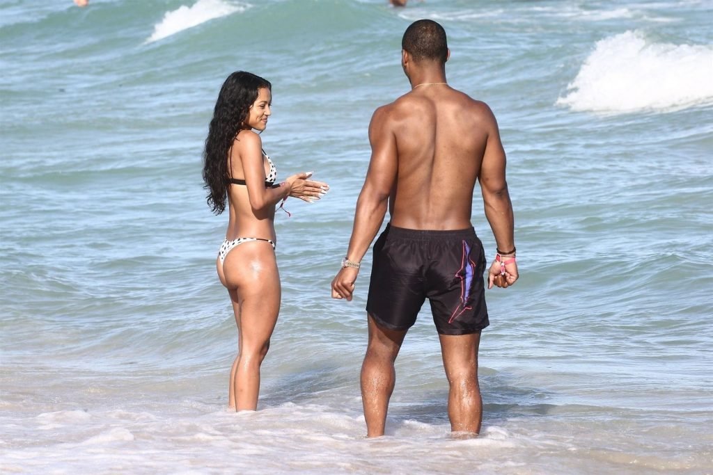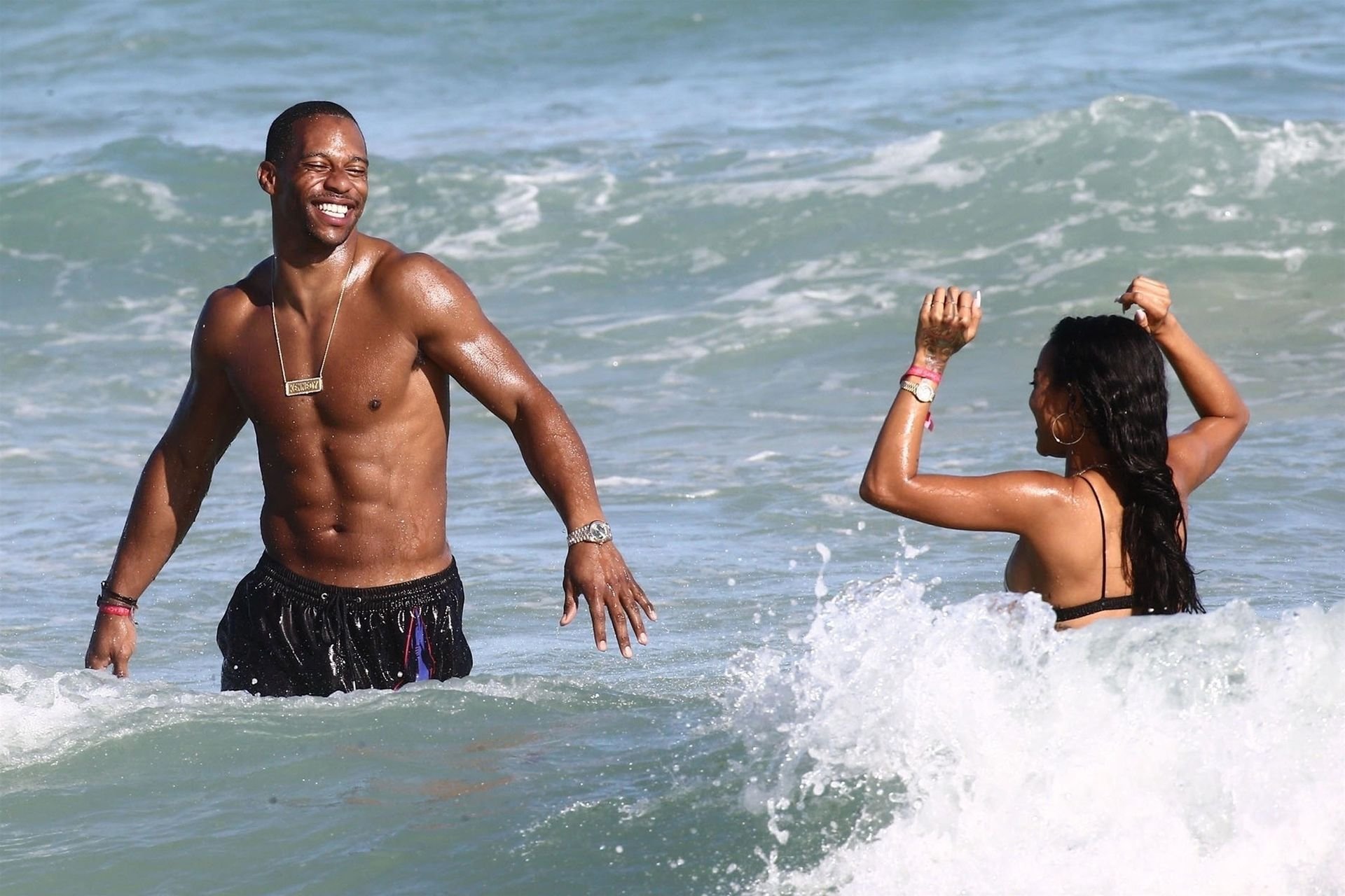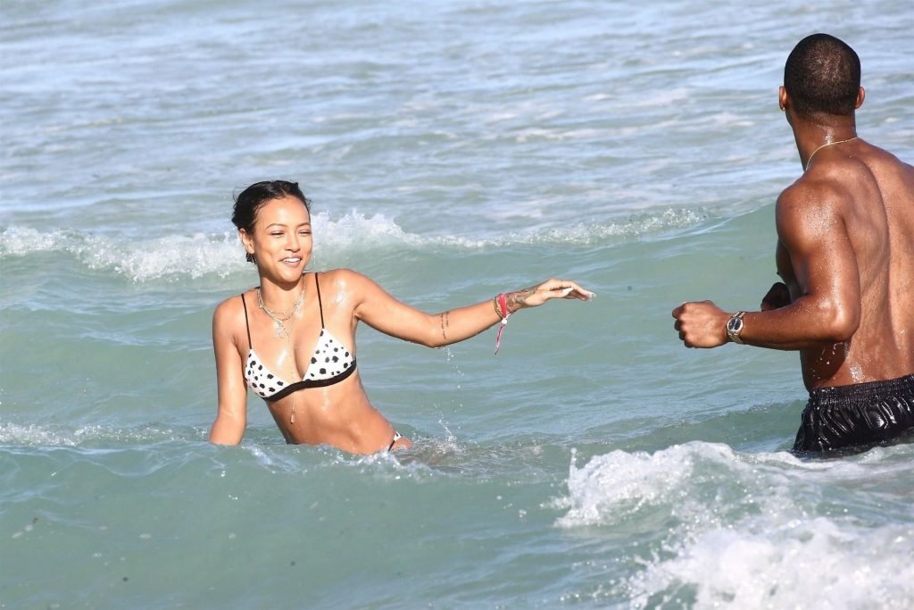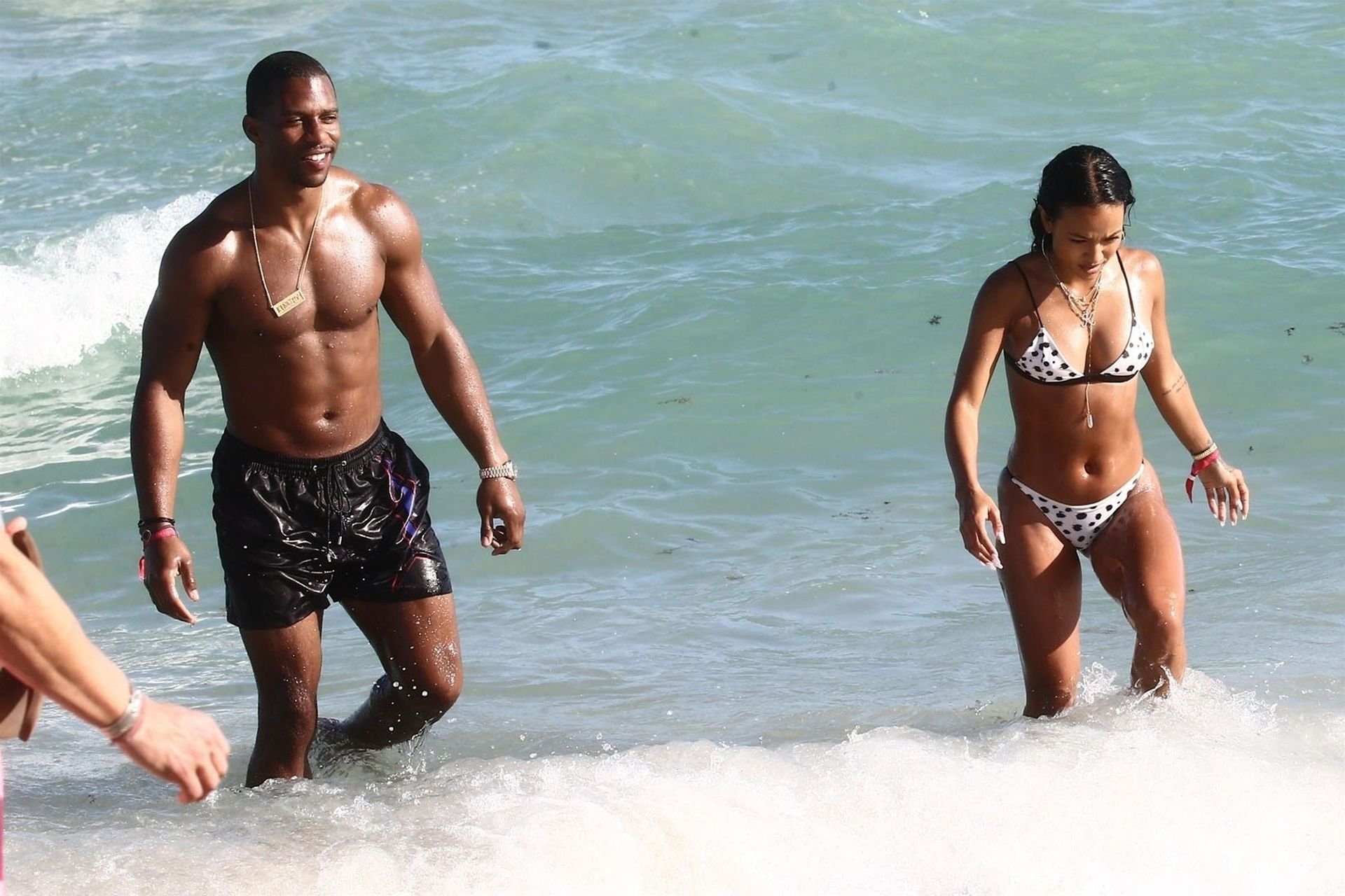 Actriz/modelo Karrueche Tran (30) y Victor Cruz disfrutan de un baño en las cálidas aguas de Miami, 01/02/2019.