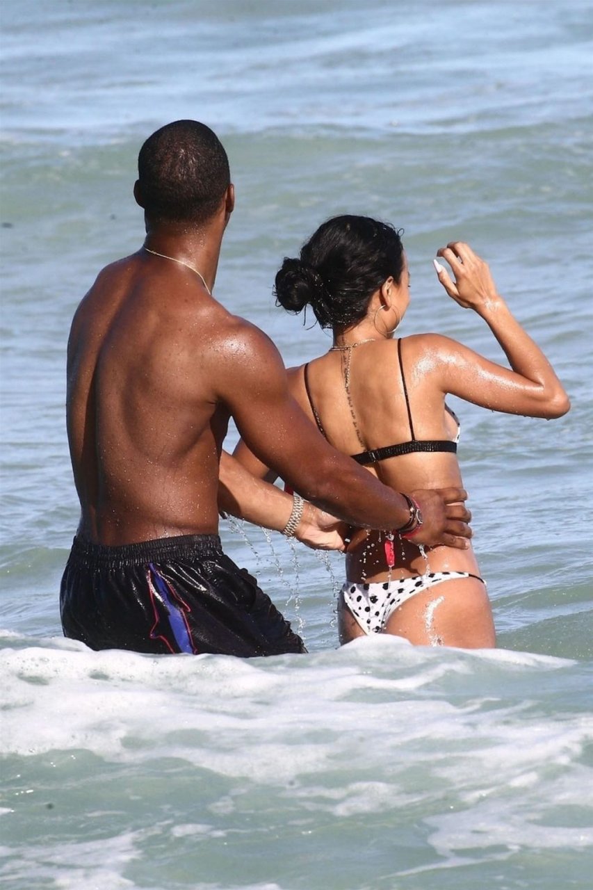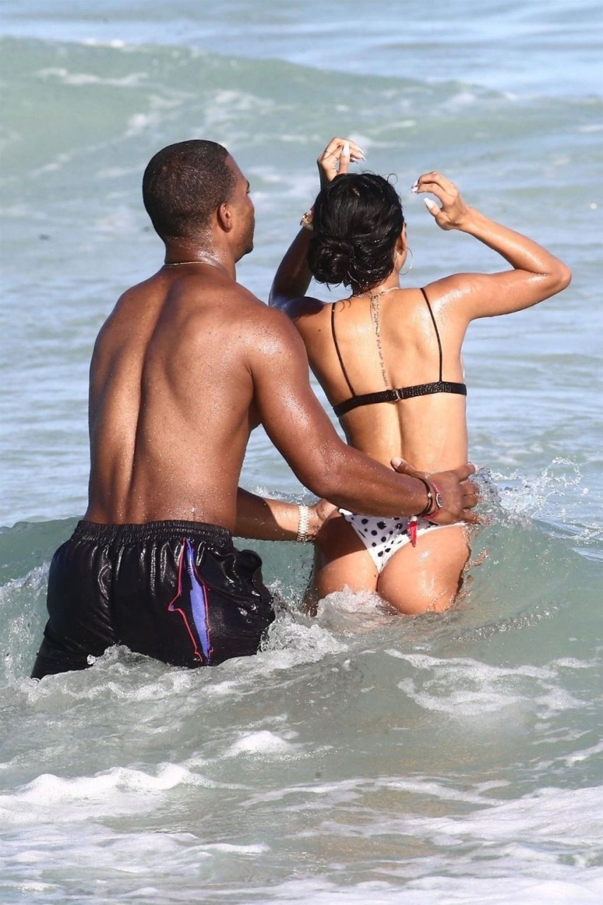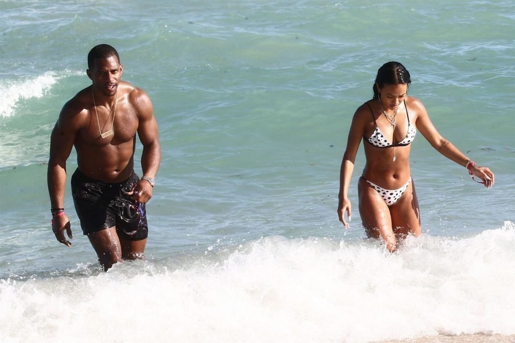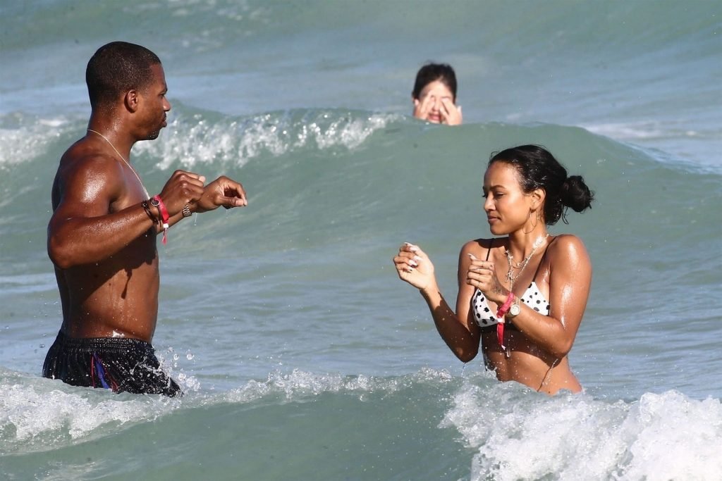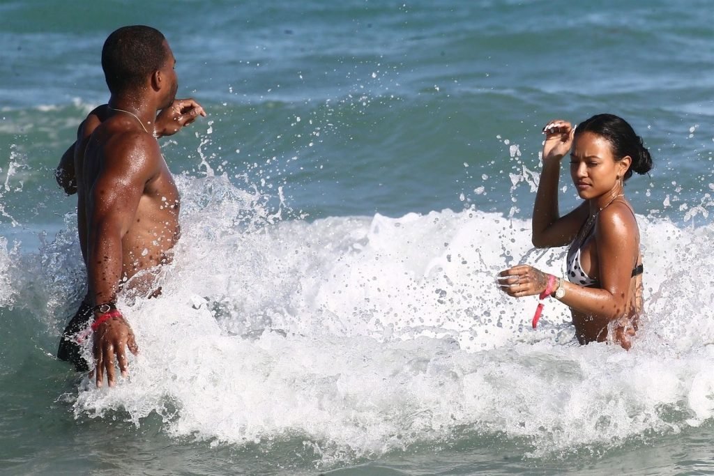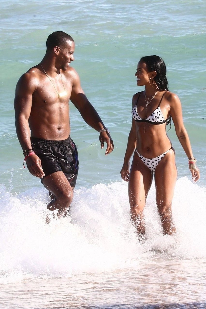 Actriz/modelo Karrueche Tran (30) y Victor Cruz disfrutan de un baño en las cálidas aguas de Miami, 01/02/2019.