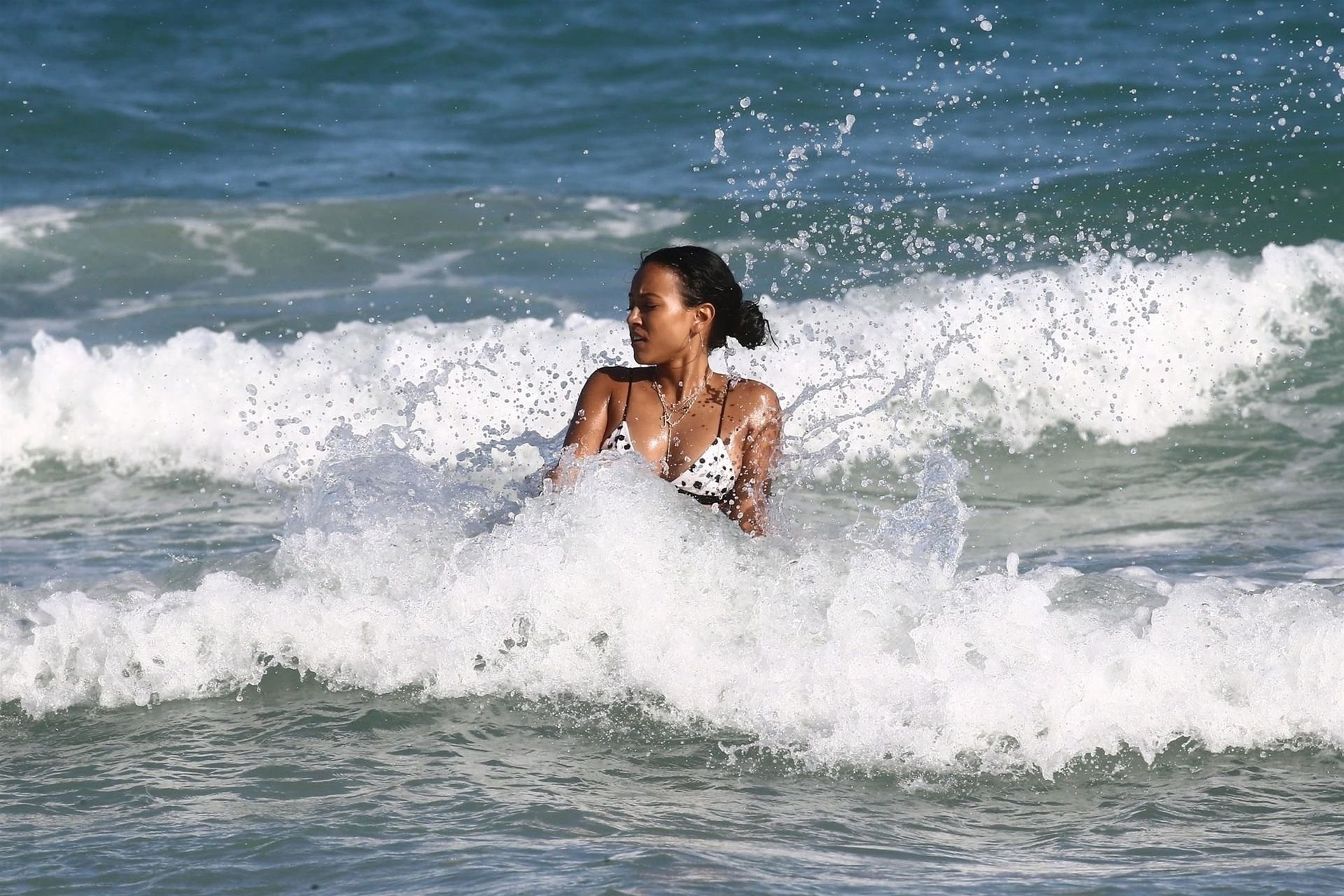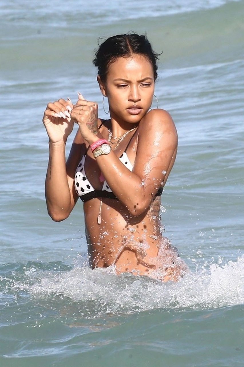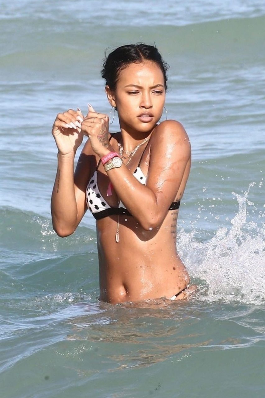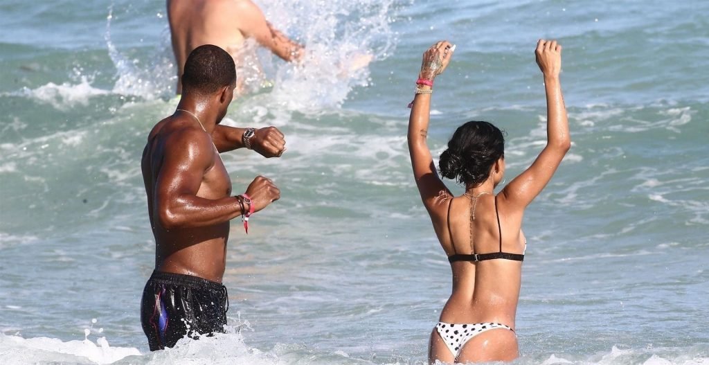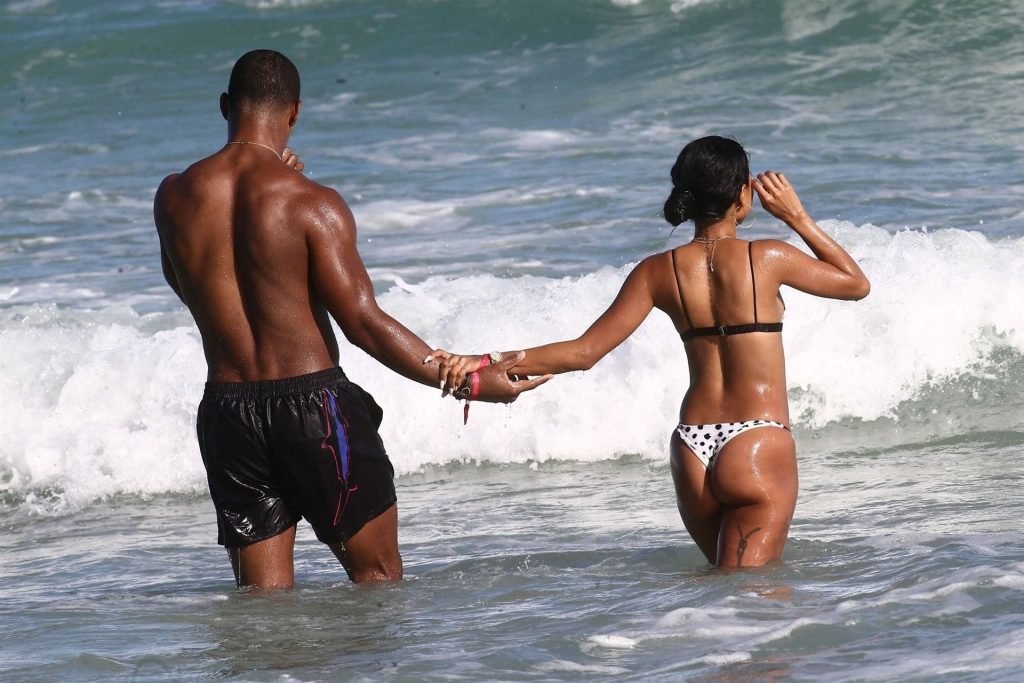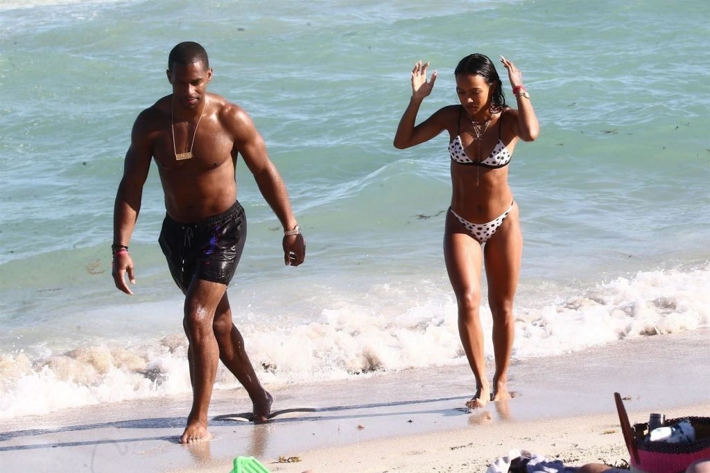 Actriz/modelo Karrueche Tran (30) y Victor Cruz disfrutan de un baño en las cálidas aguas de Miami, 01/02/2019.