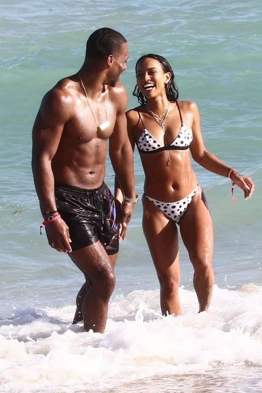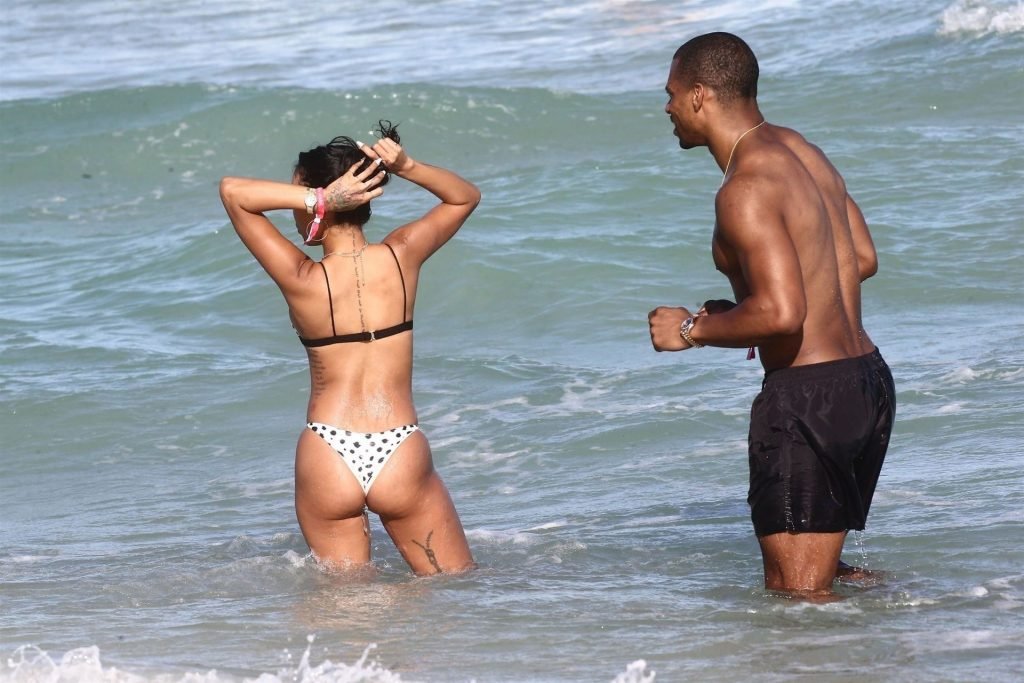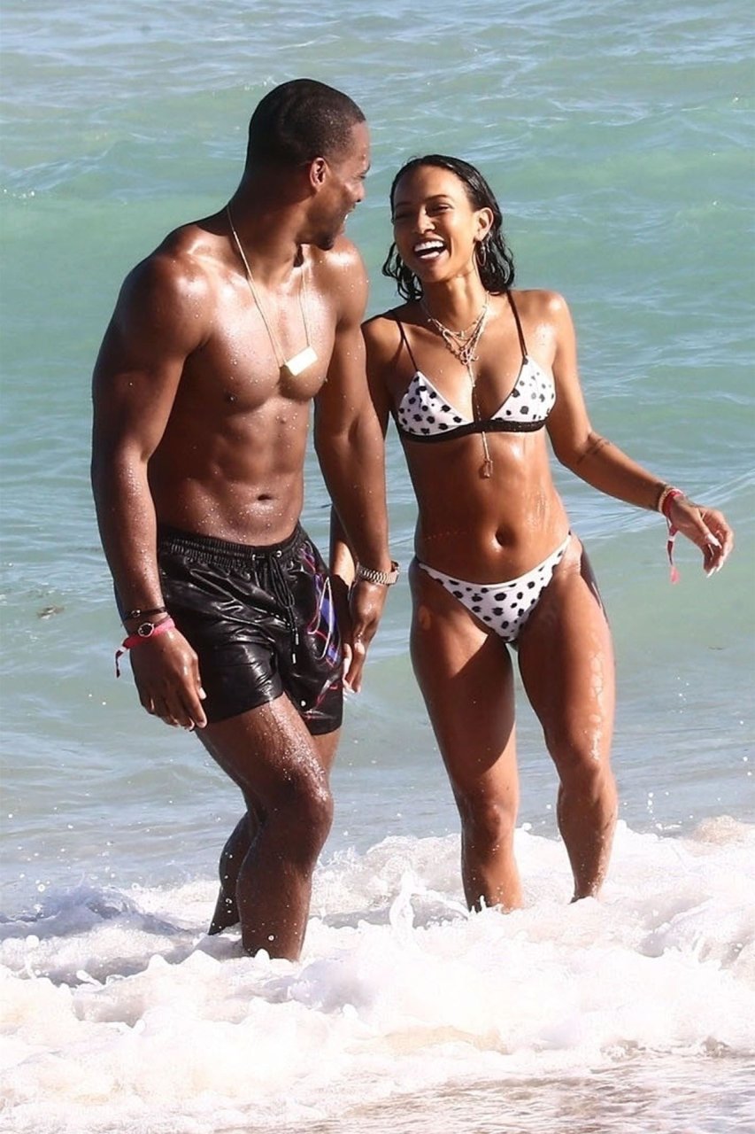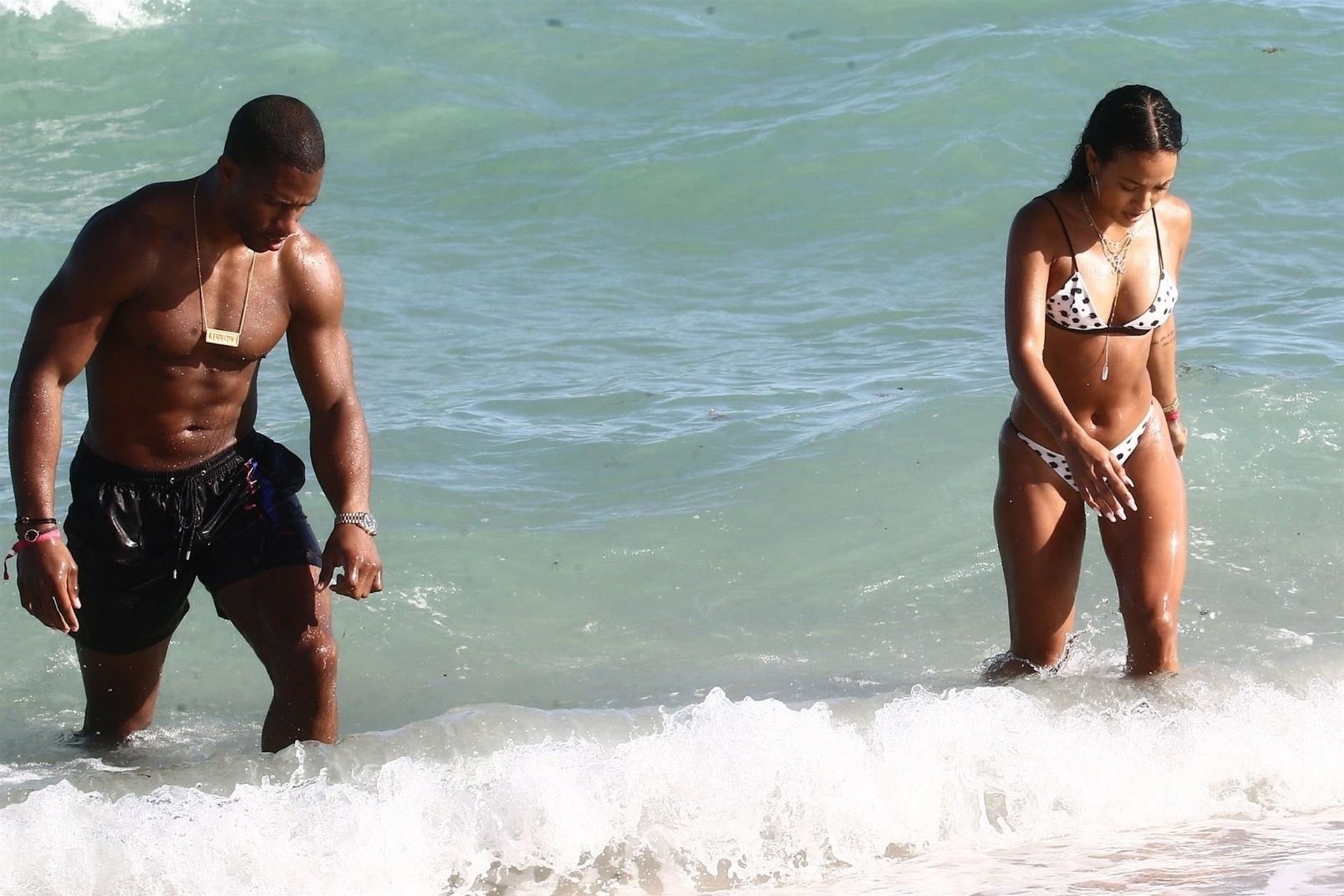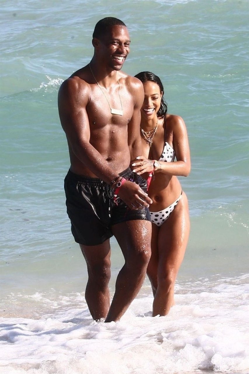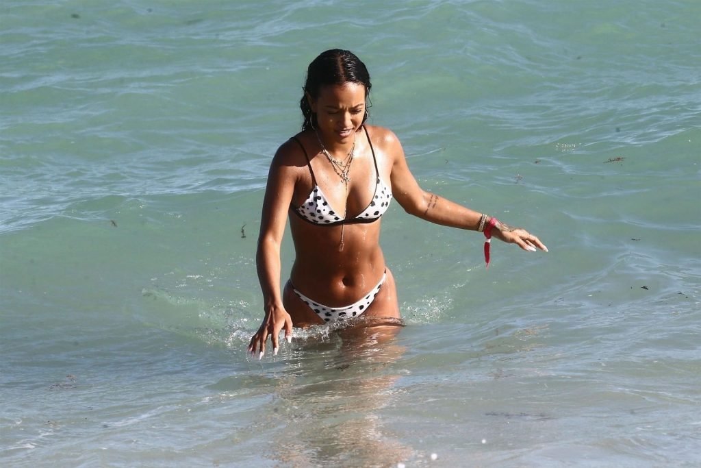 Actriz/modelo Karrueche Tran (30) y Victor Cruz disfrutan de un baño en las cálidas aguas de Miami, 01/02/2019.