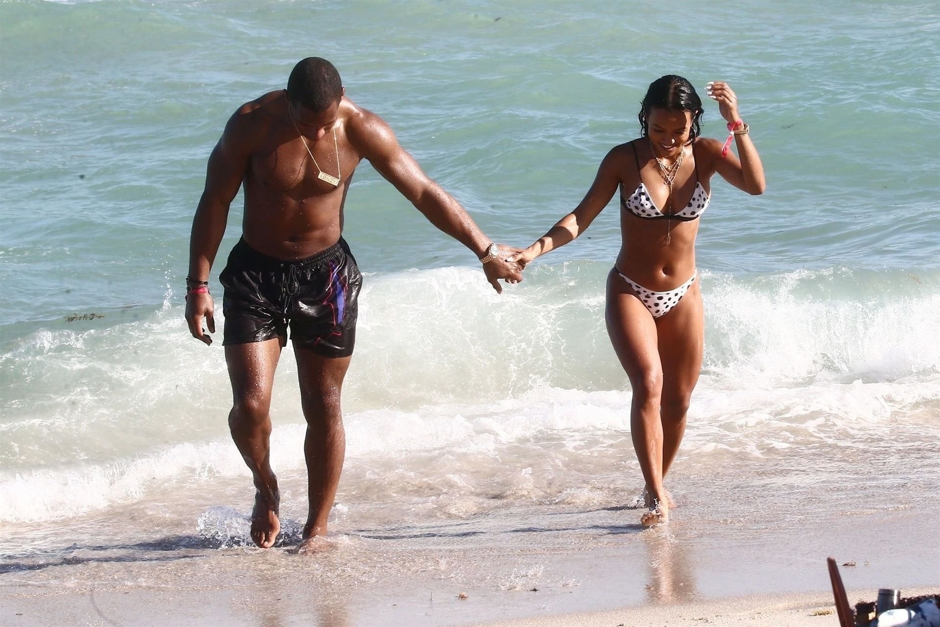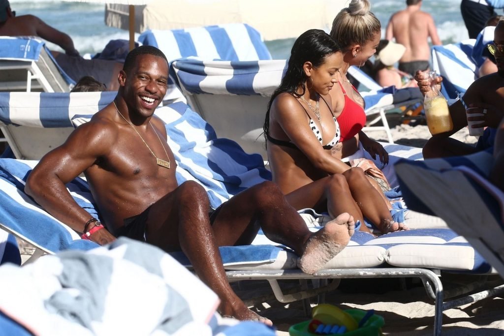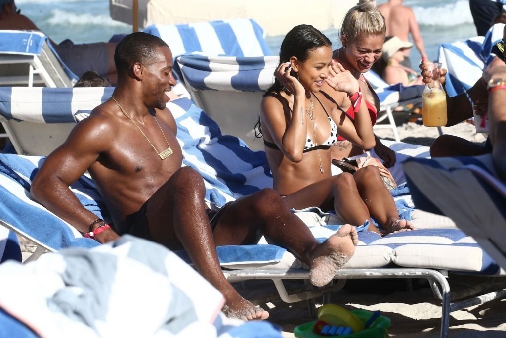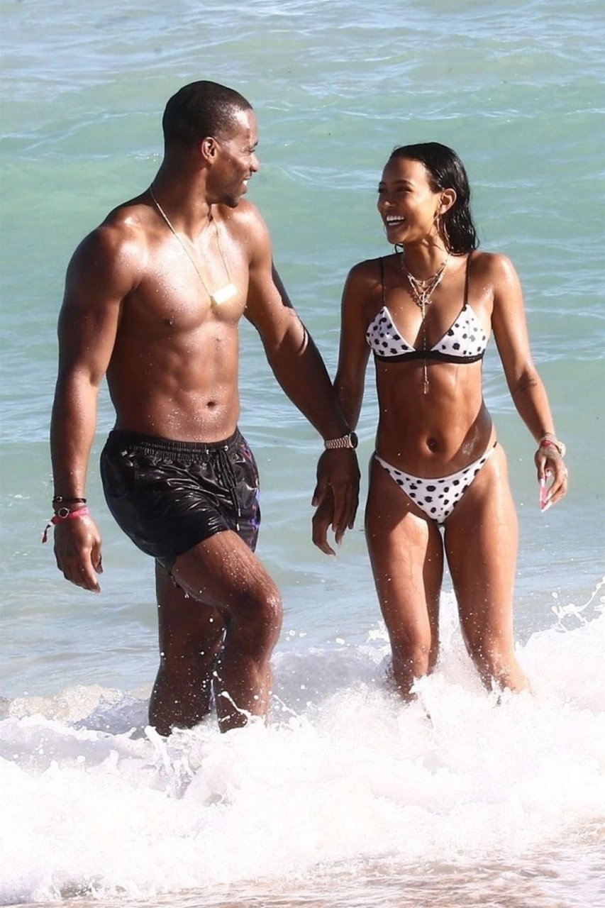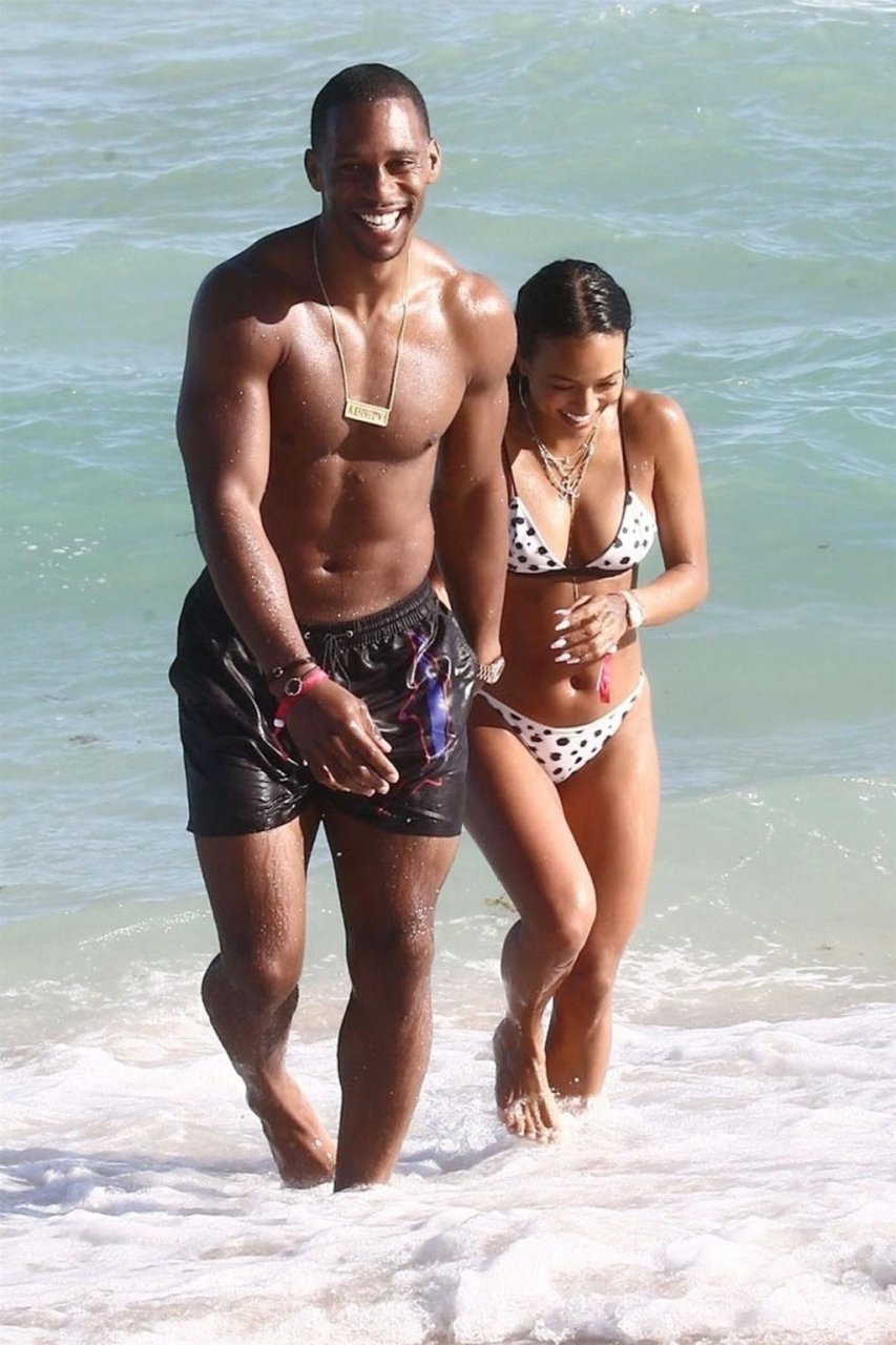 Actriz/modelo Karrueche Tran (30) y Victor Cruz disfrutan de un baño en las cálidas aguas de Miami, 01/02/2019.
