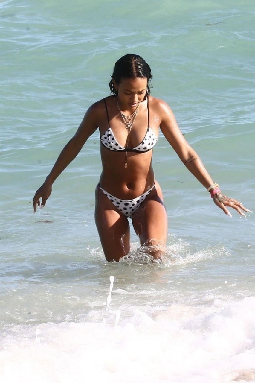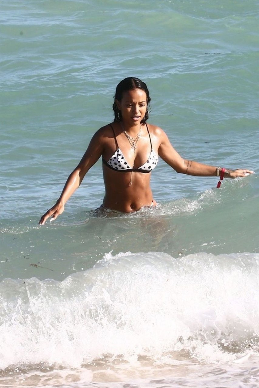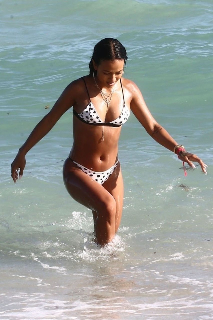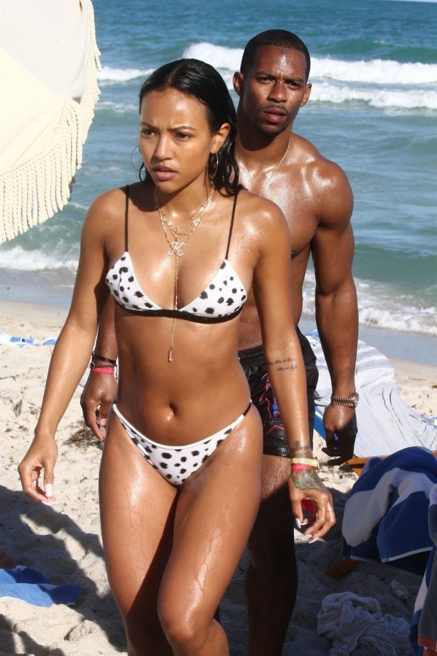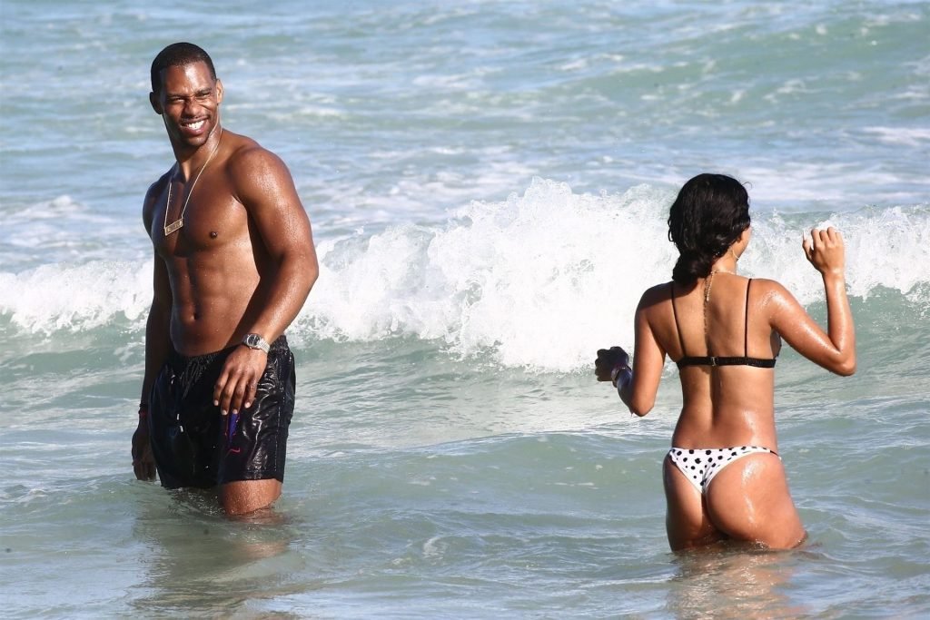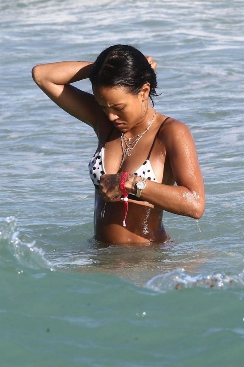 Actriz/modelo Karrueche Tran (30) y Victor Cruz disfrutan de un baño en las cálidas aguas de Miami, 01/02/2019.