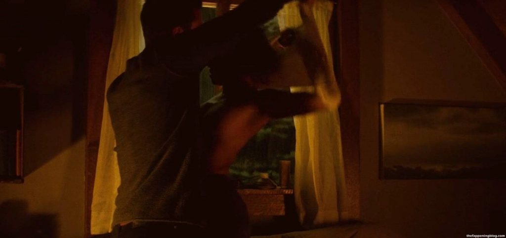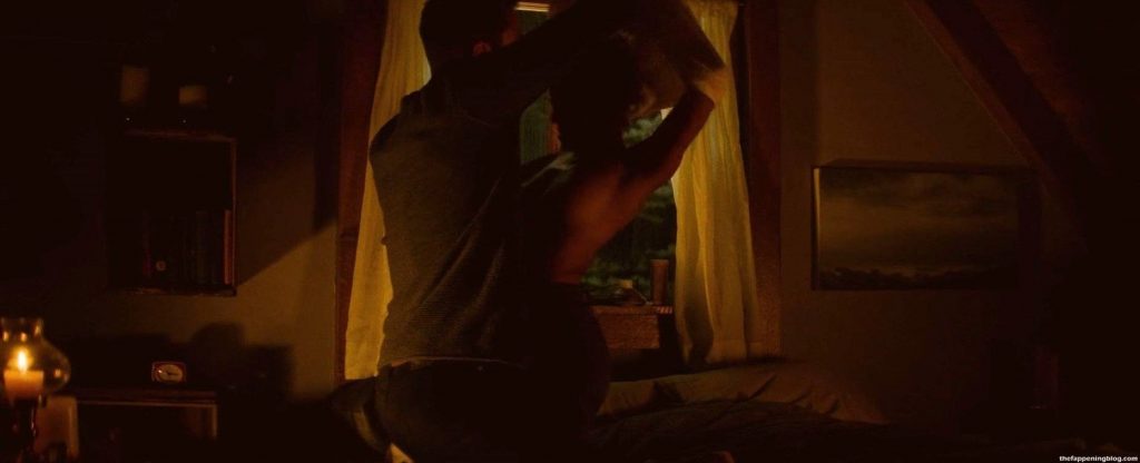 La actriz muestra algo de piel mientras posa sin camiseta, luciendo escotes y trasero.
