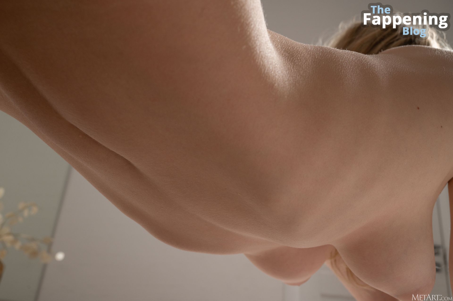 Consulta las fotos eróticas de la sexy rubia Katarina Meis completamente desnuda, donde esta modelo joven adulta posa en la cama.