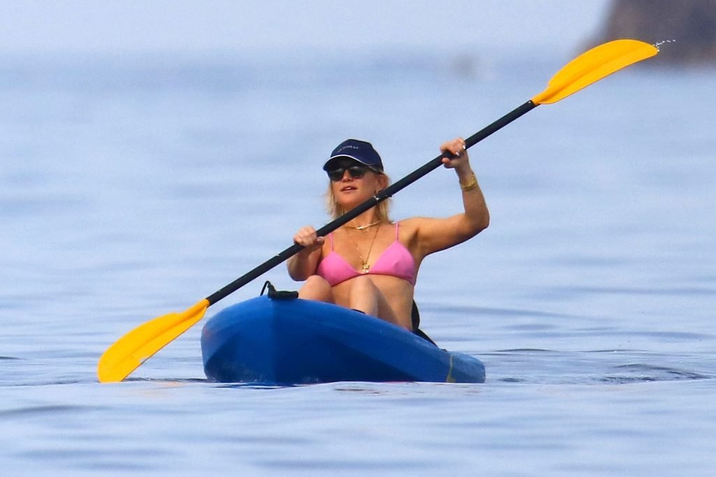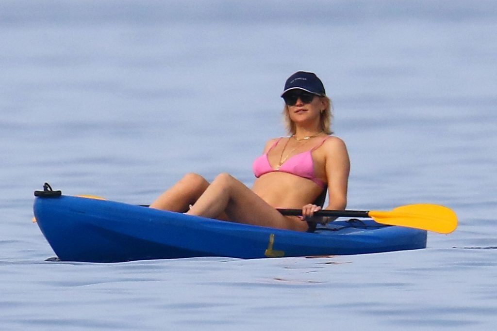 Kate Hudson y su novio Danny Fujikawa disfrutan de sus vacaciones de verano a bordo de un mega yate en Italia con Goldie Hawn, Kurt Russel y algunos amigos, 11/06/2019. Kate muestra un impresionante cuerpo post embarazo con un sexy bikini rosa.