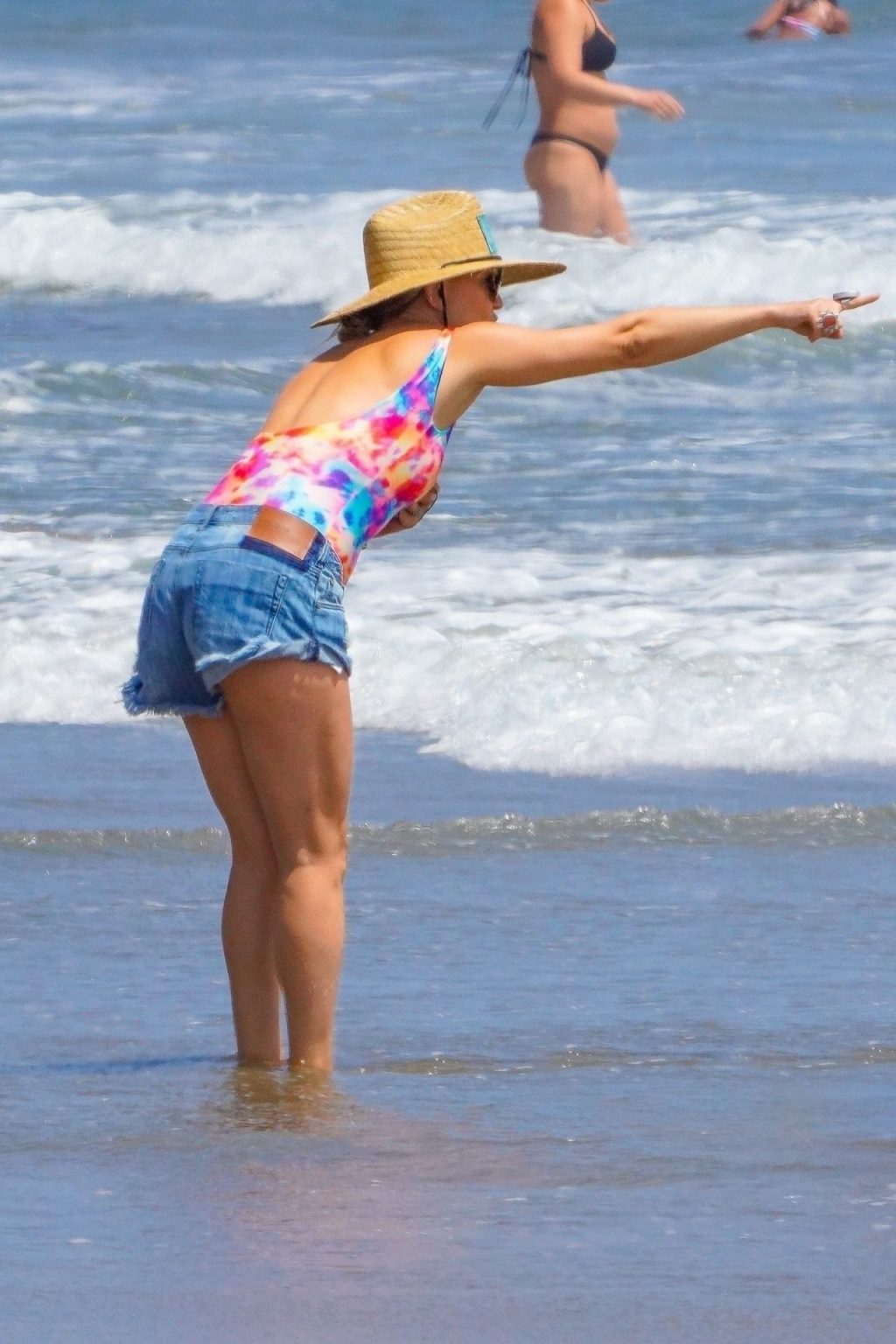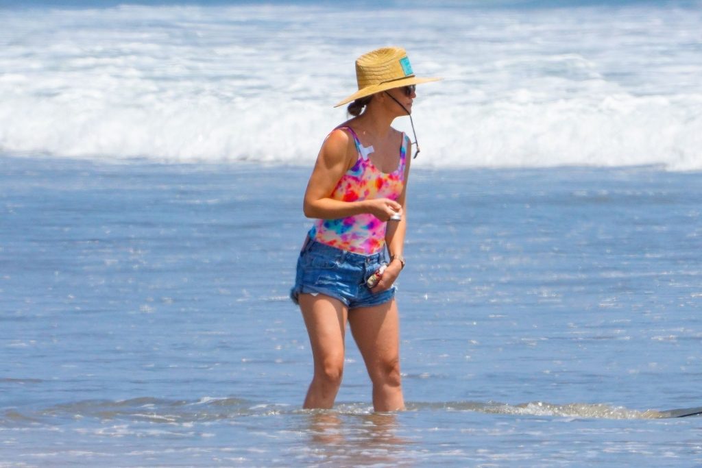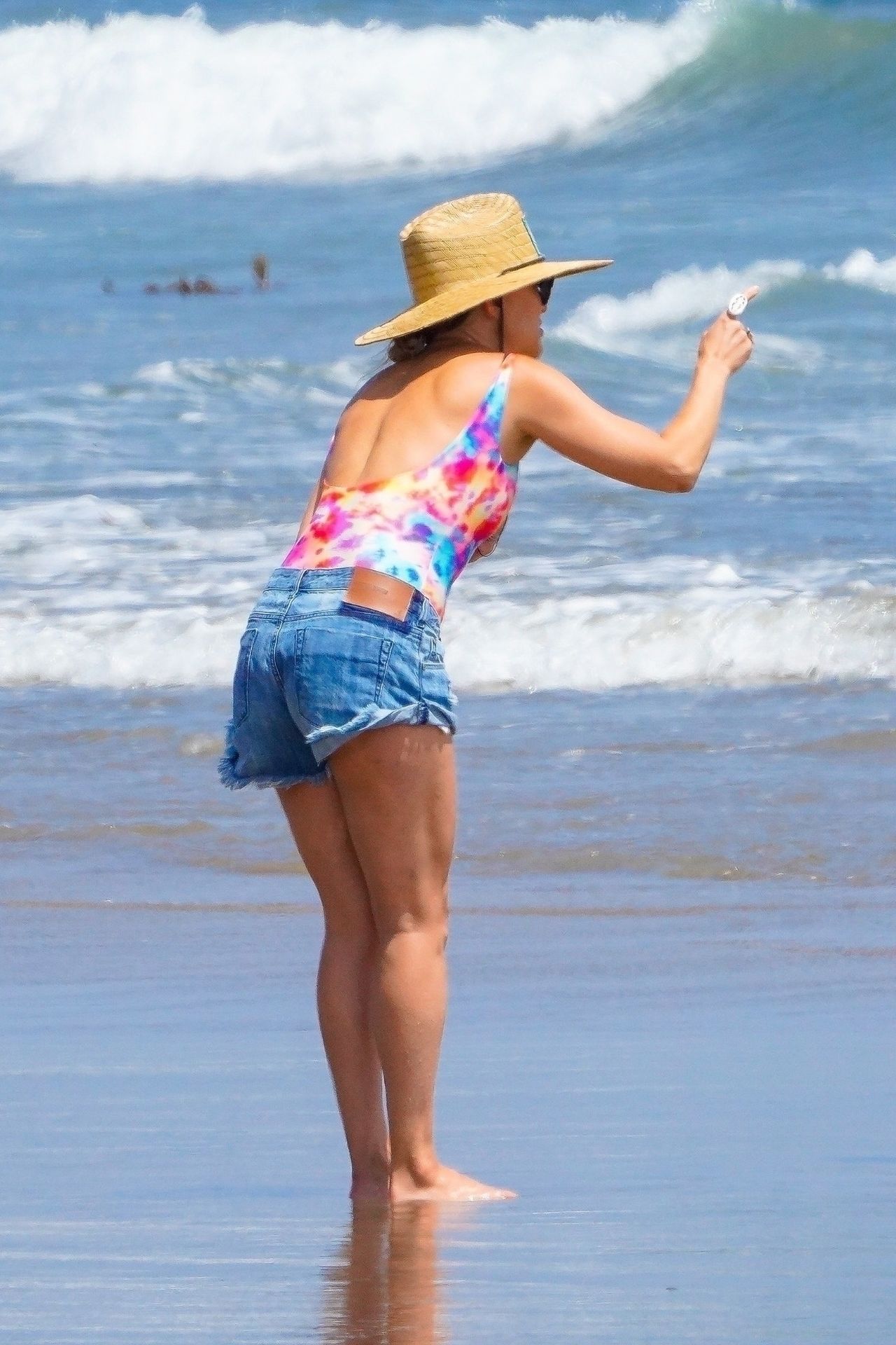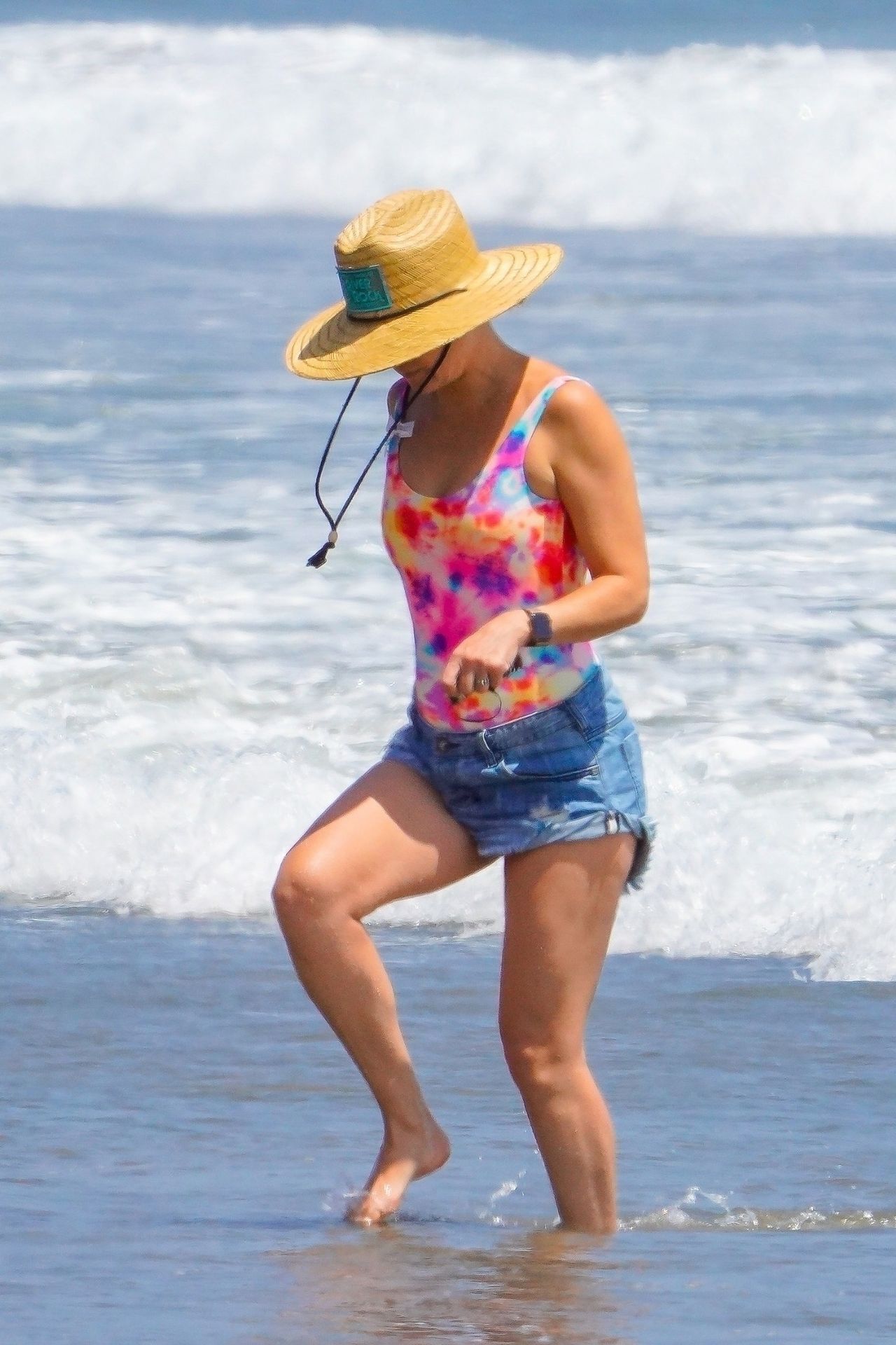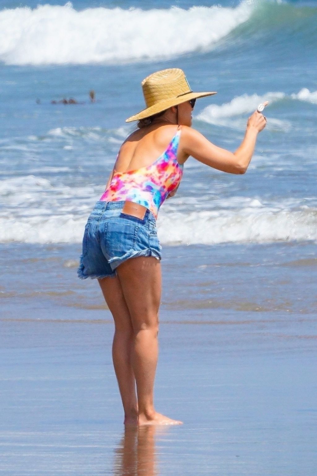 La fundadora de Fabletics y madre de tres mostró su figura delgada mientras disfrutaba de un día divertido en la playa en Malibu, 22/06/2019.